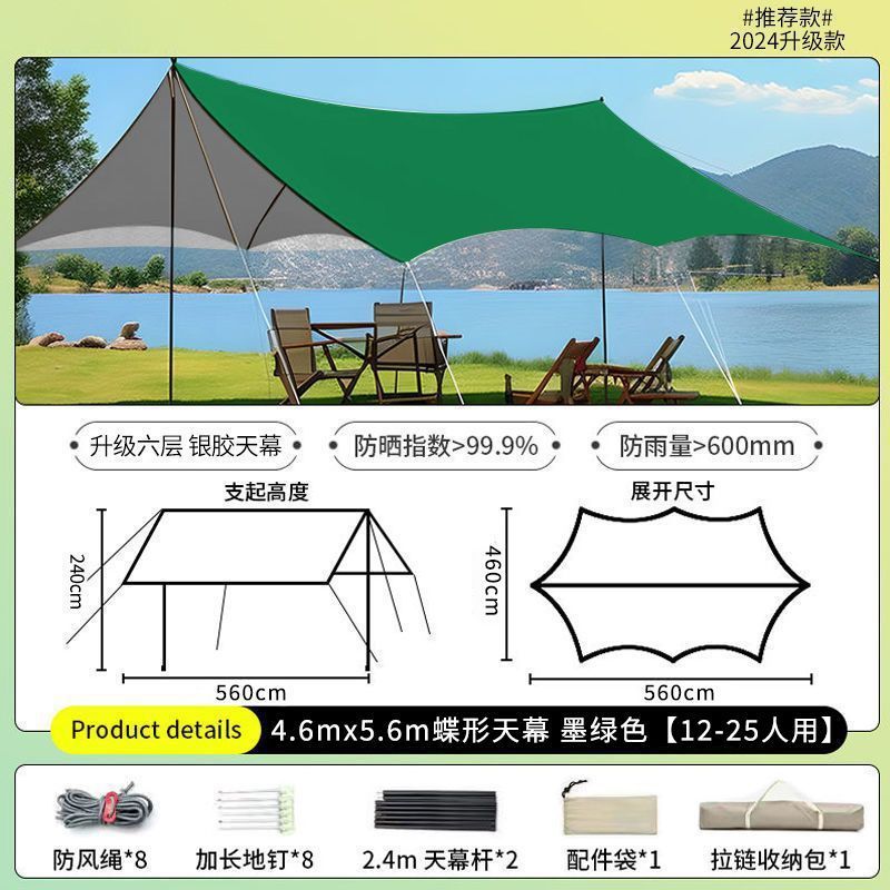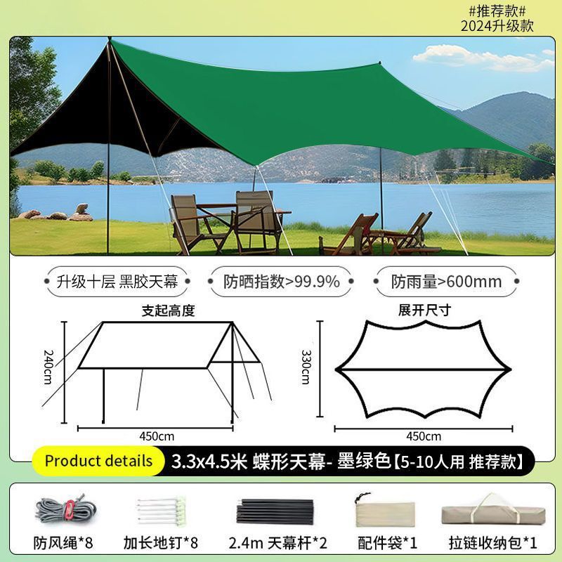 • [업그레이드된 7층 은접착제] 자외선 차단 및 방수 티 그린 - 3x4.5 핫셀링 나비 모양 5~11명이 사용 가능