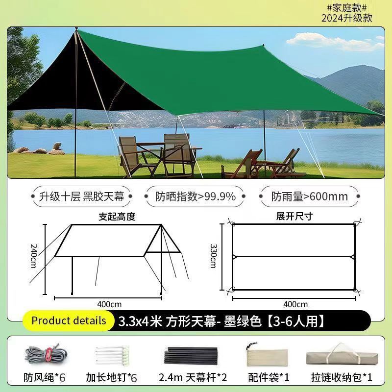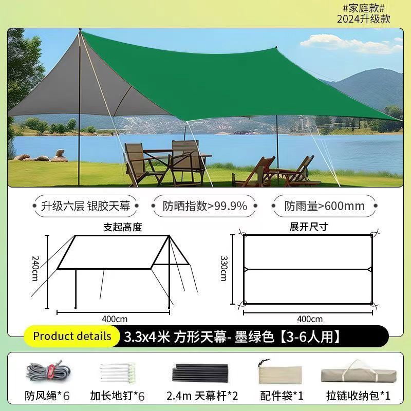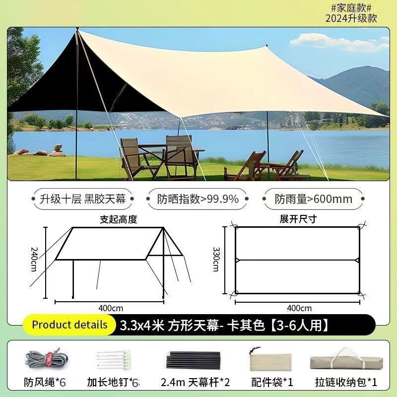 • [업그레이드된 7겹 실버글루] 자외선 차단 및 방수 카키 컬러 - 3x4 정사각형 3~8명이 사용 가능