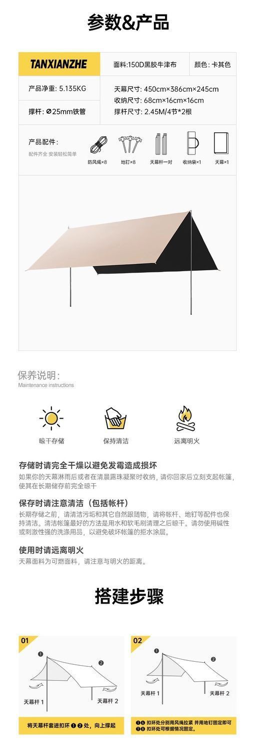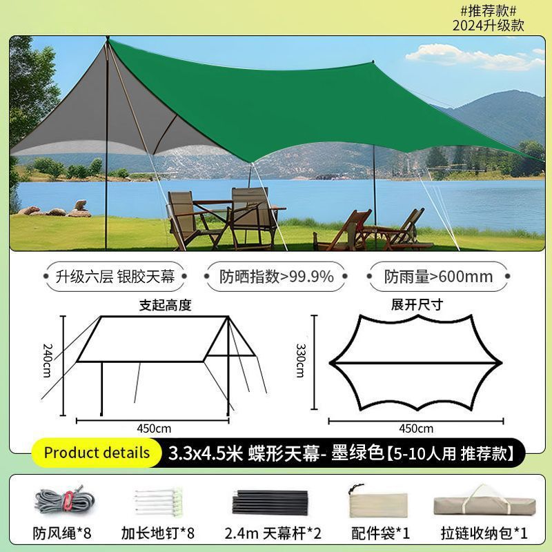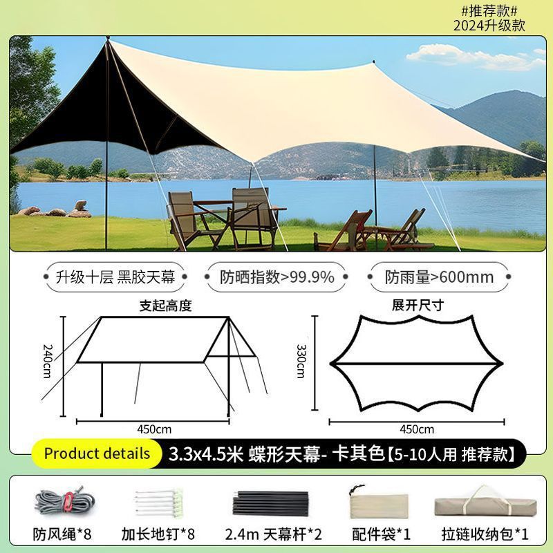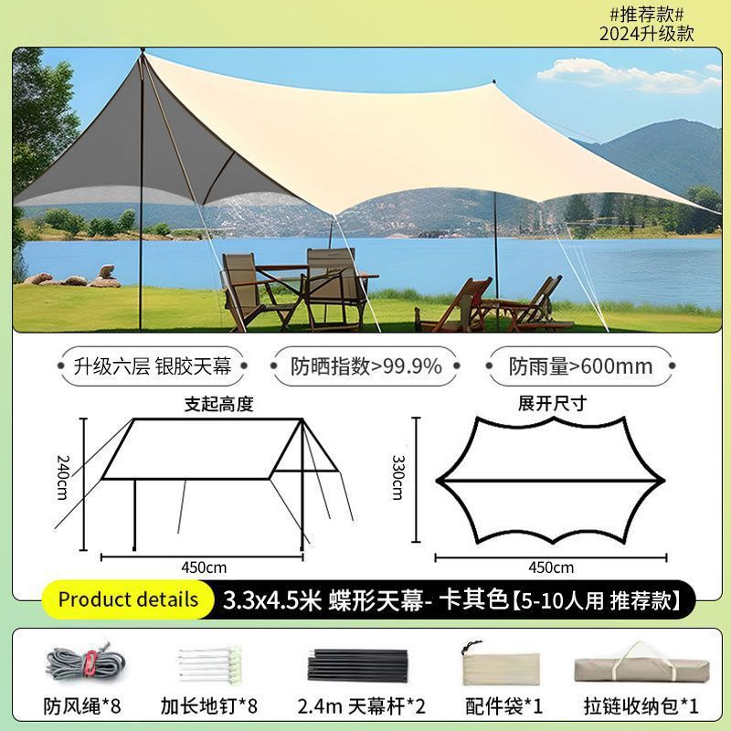 • [업그레이드된 7층 실버 글루] 자외선 차단 및 방수 카키 컬러 - 3x4.5 핫셀링 나비 모양 5~11명 사용 가능