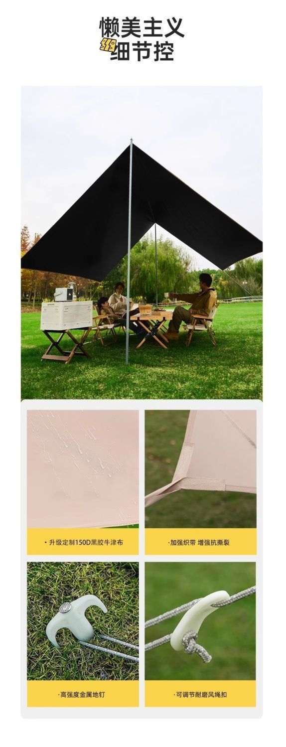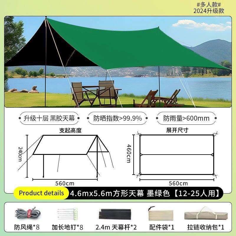 검은 고무 캐노피 텐트 야외 방수 자외선 차단제 캠핑 캠핑 팔각형 나비 차양스토어 가기