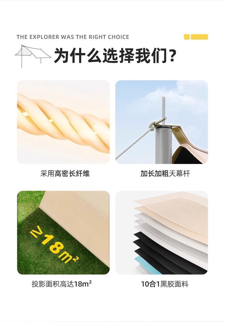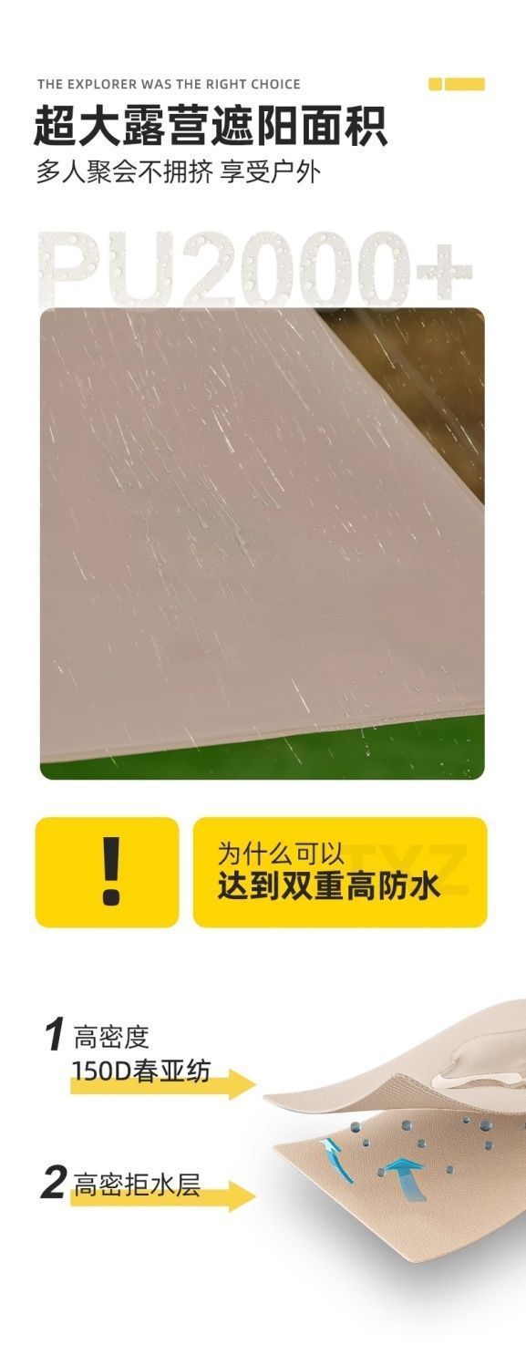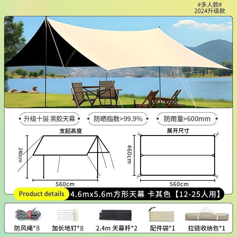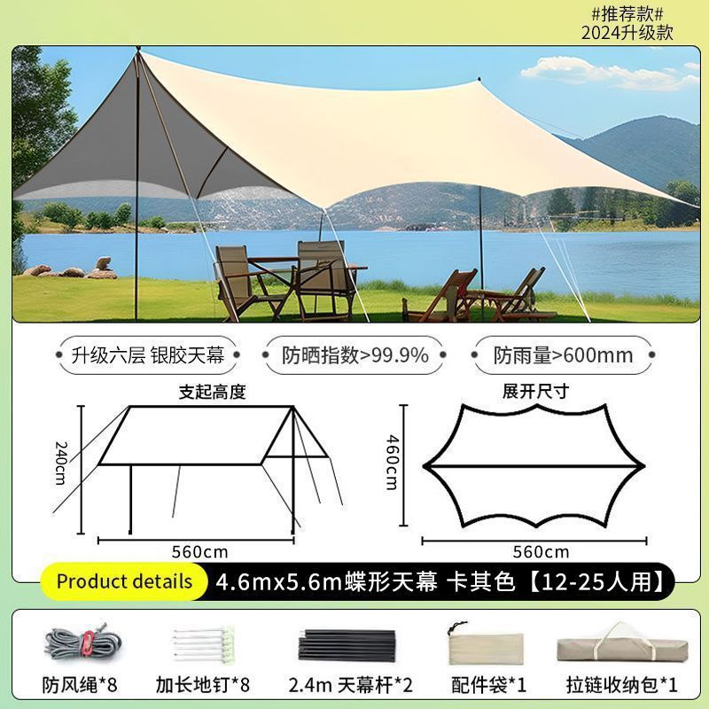 • [업그레이드된 7층 실버글루] 자외선 차단 및 방수 카키 컬러 - 10~20인용 4.3*5 팔각형 나비 모양