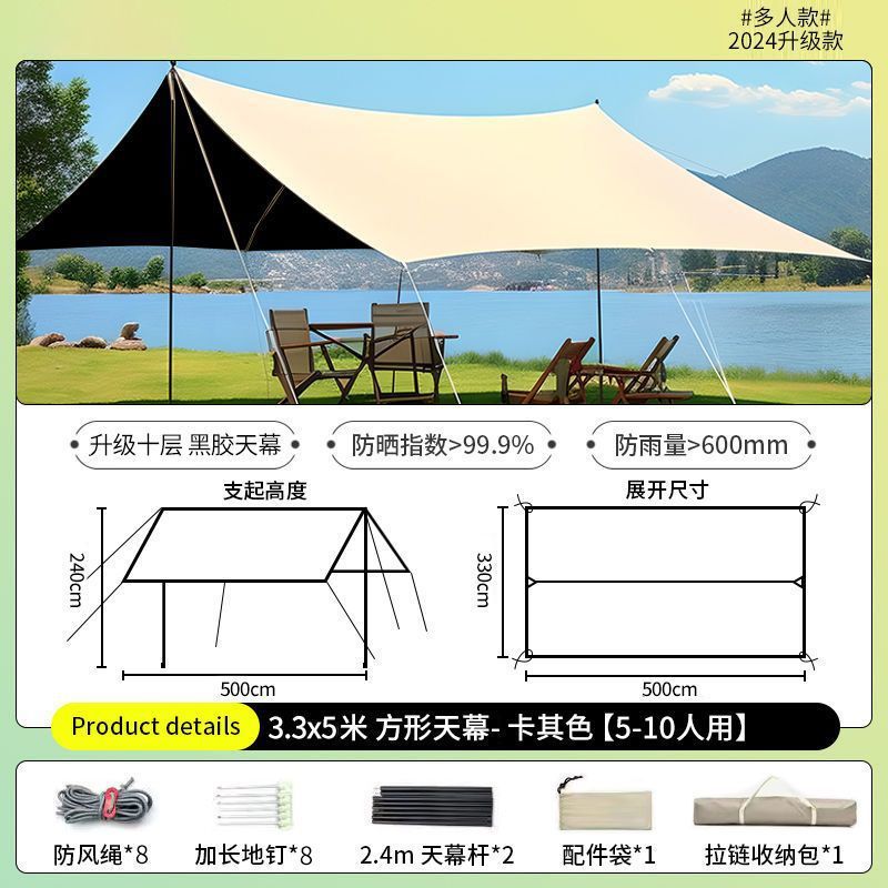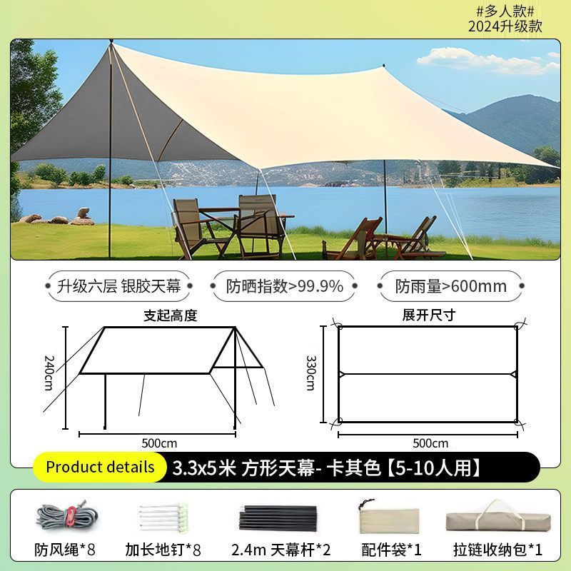 • [업그레이드된 7겹 실버글루] 자외선 차단 및 방수 카키 컬러 - 3x5 정사각형 6~12명 사용 가능