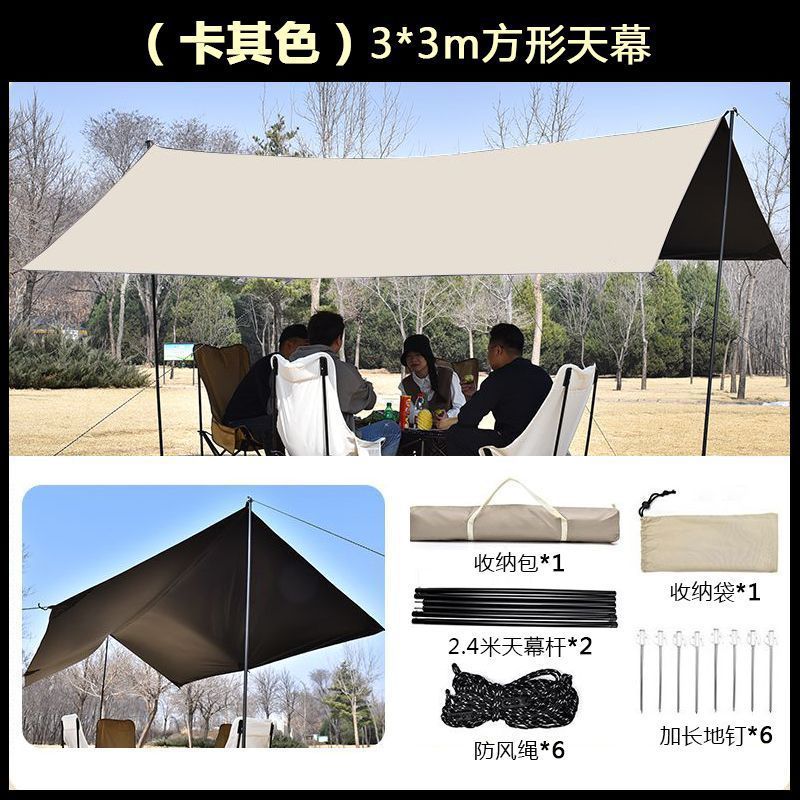 • [업그레이드된 7겹 실버글루] 자외선 차단 및 방수 카키 컬러 - 3x3 정사각형 2~5인이 사용 가능