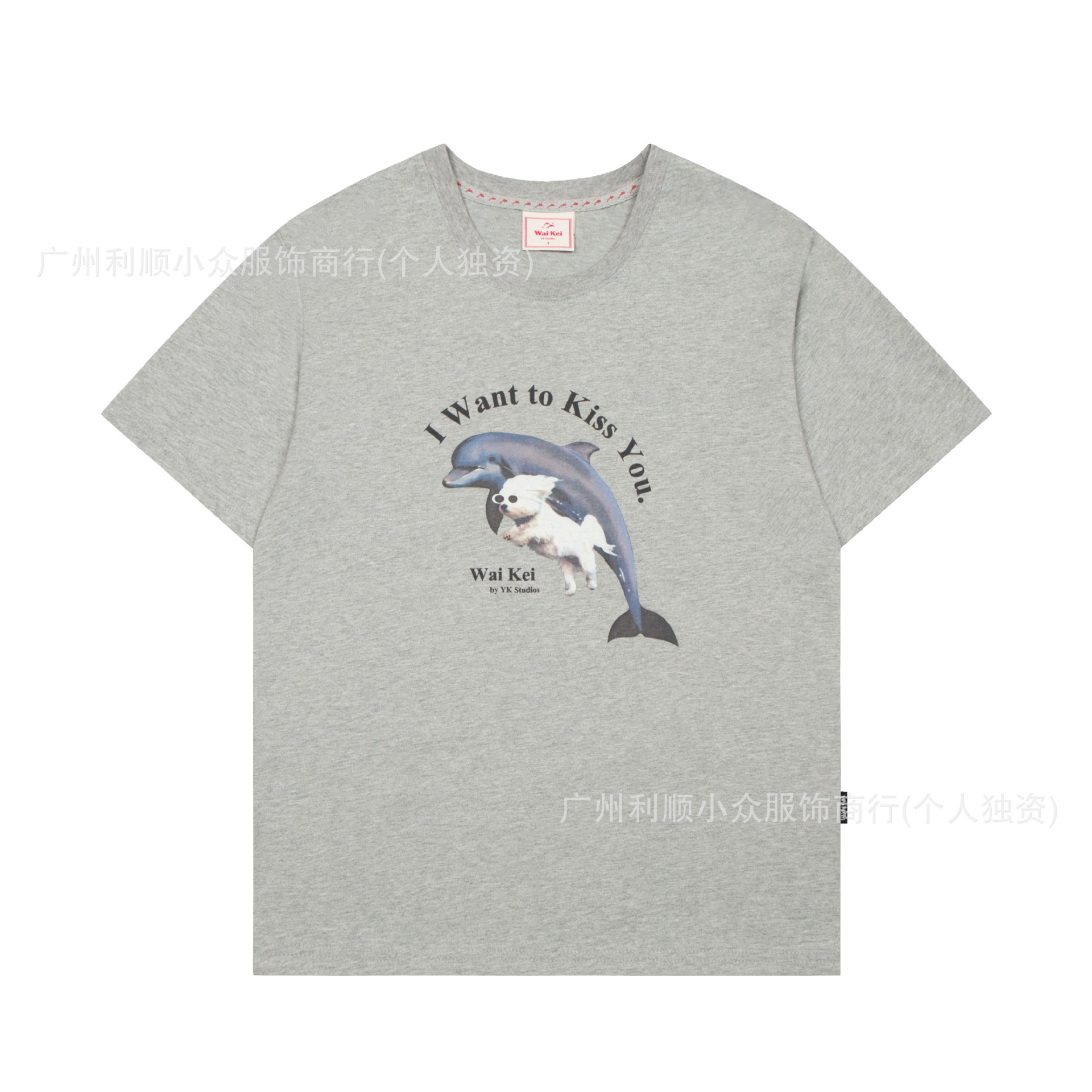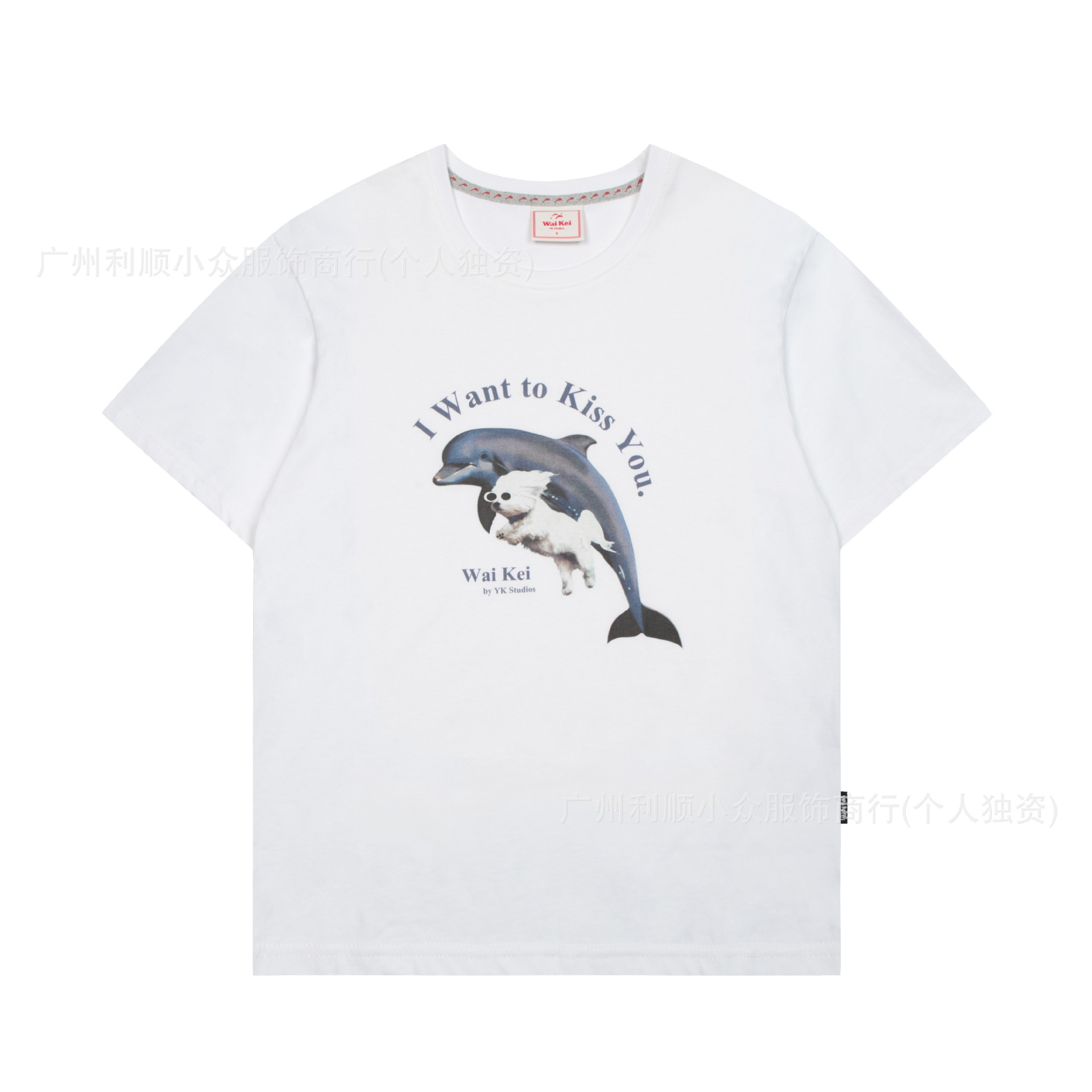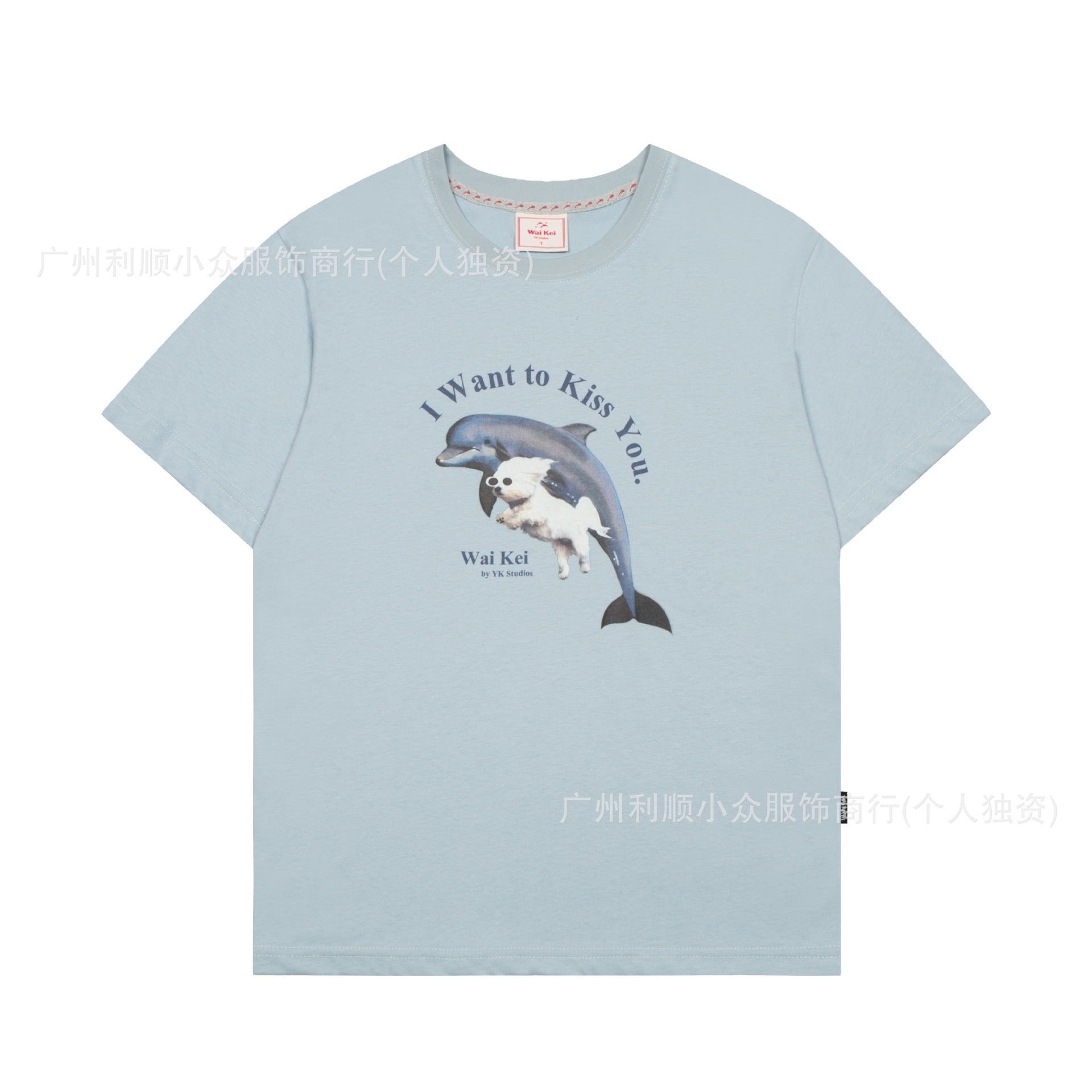 재고 한국 패션 브랜드 와이 케이 돌고래 개 반팔 티셔츠 여성면 느슨한 캐주얼 탑 여름 올매치