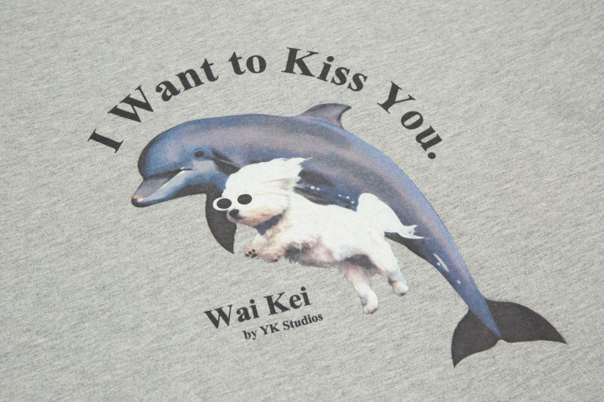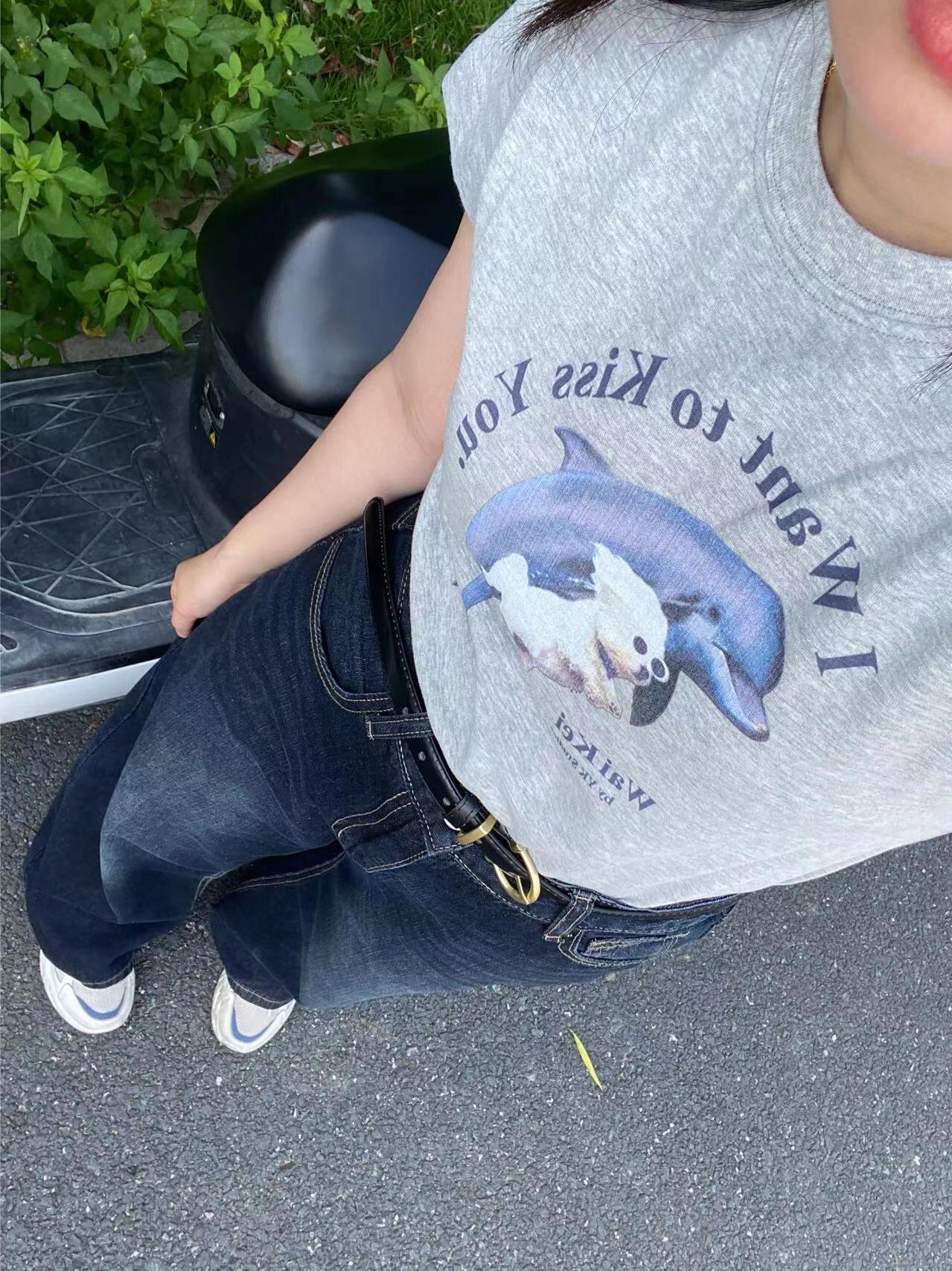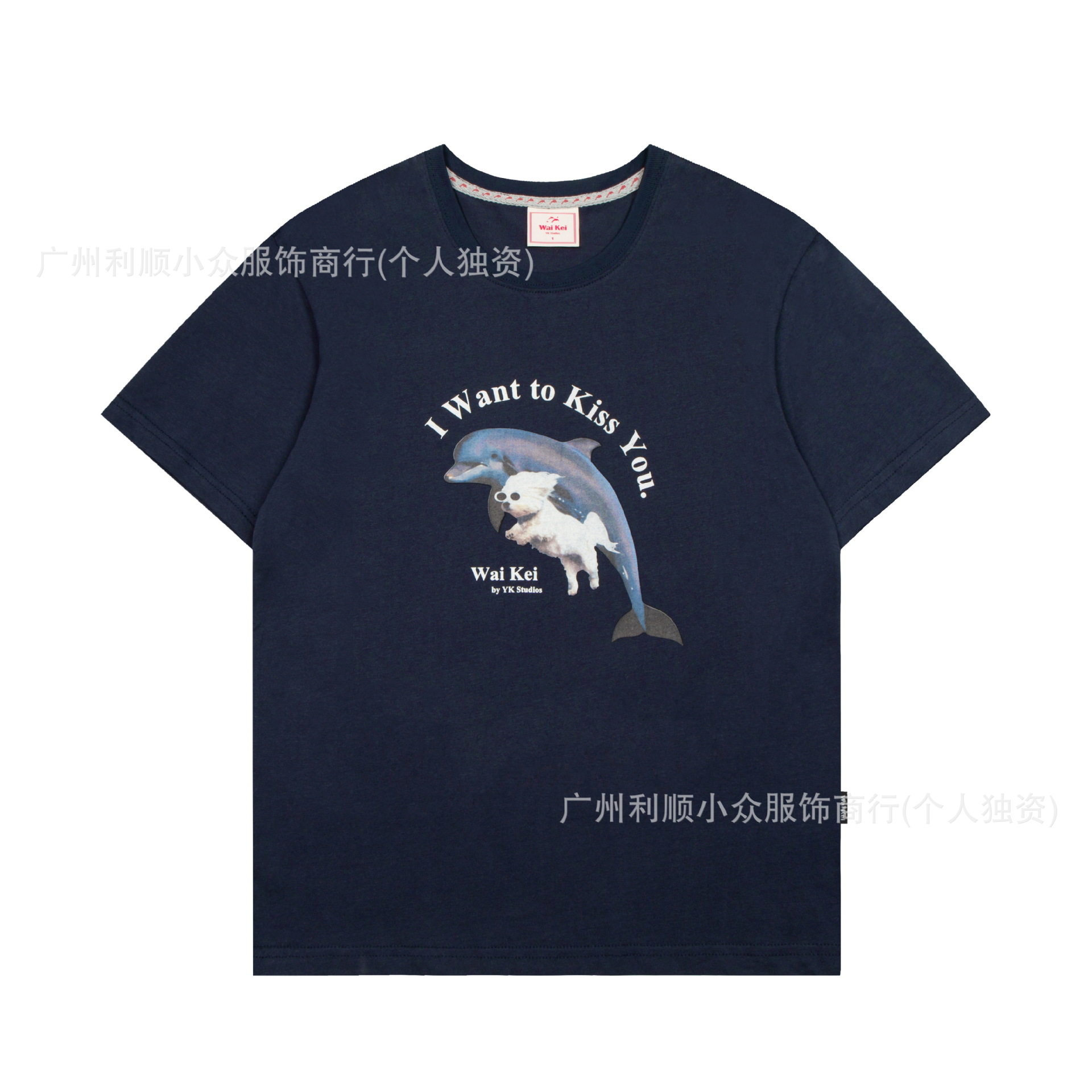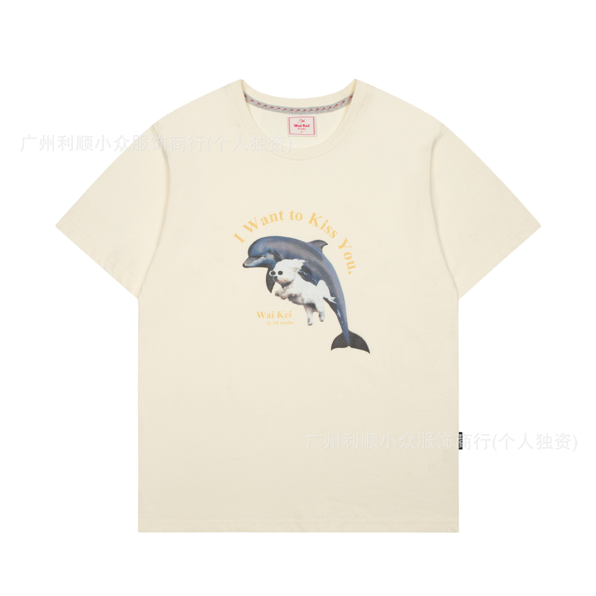 재고 한국 패션 브랜드 와이 케이 돌고래 개 반팔 티셔츠 여성면 느슨한 캐주얼 탑 여름 올매치