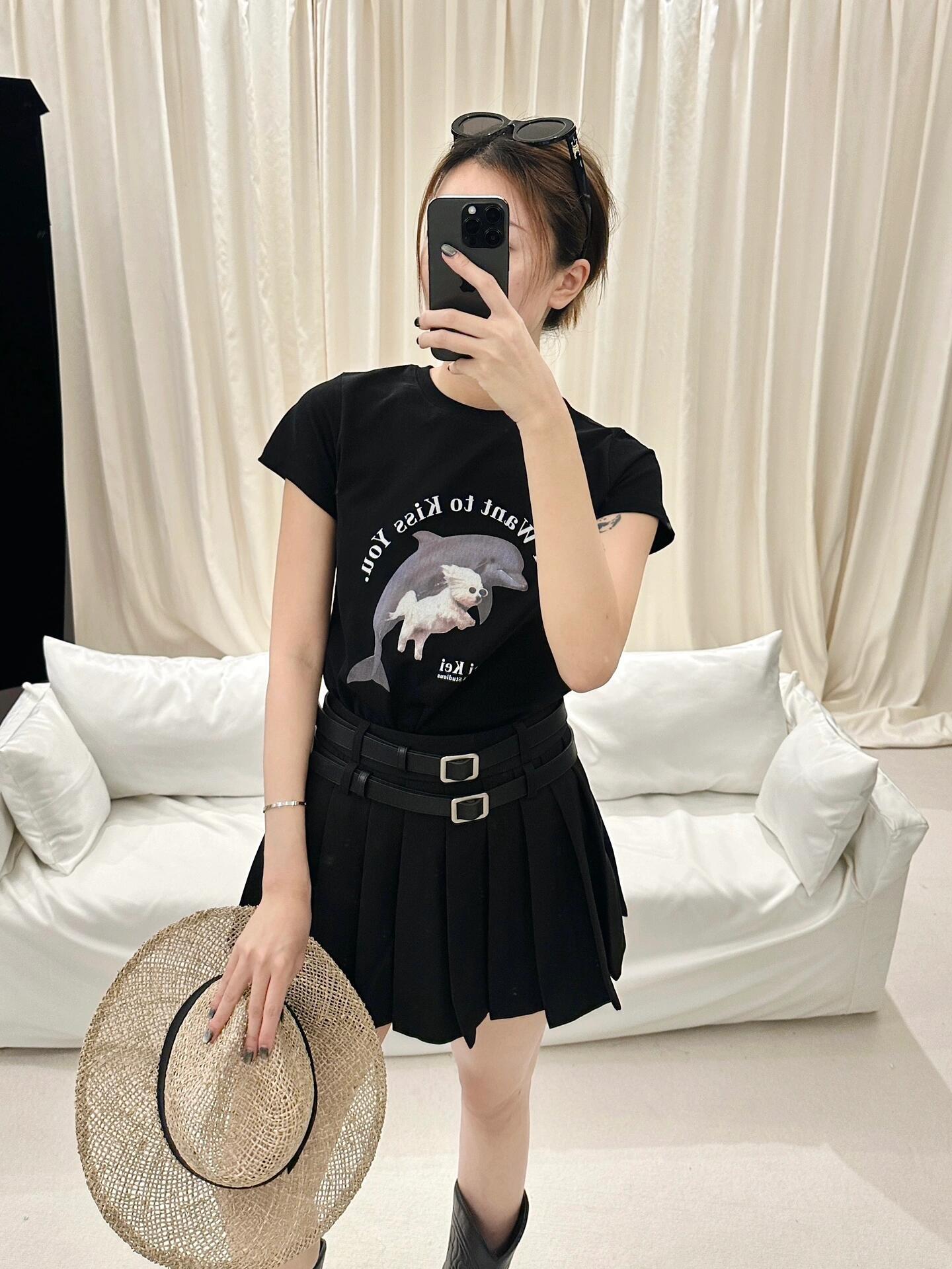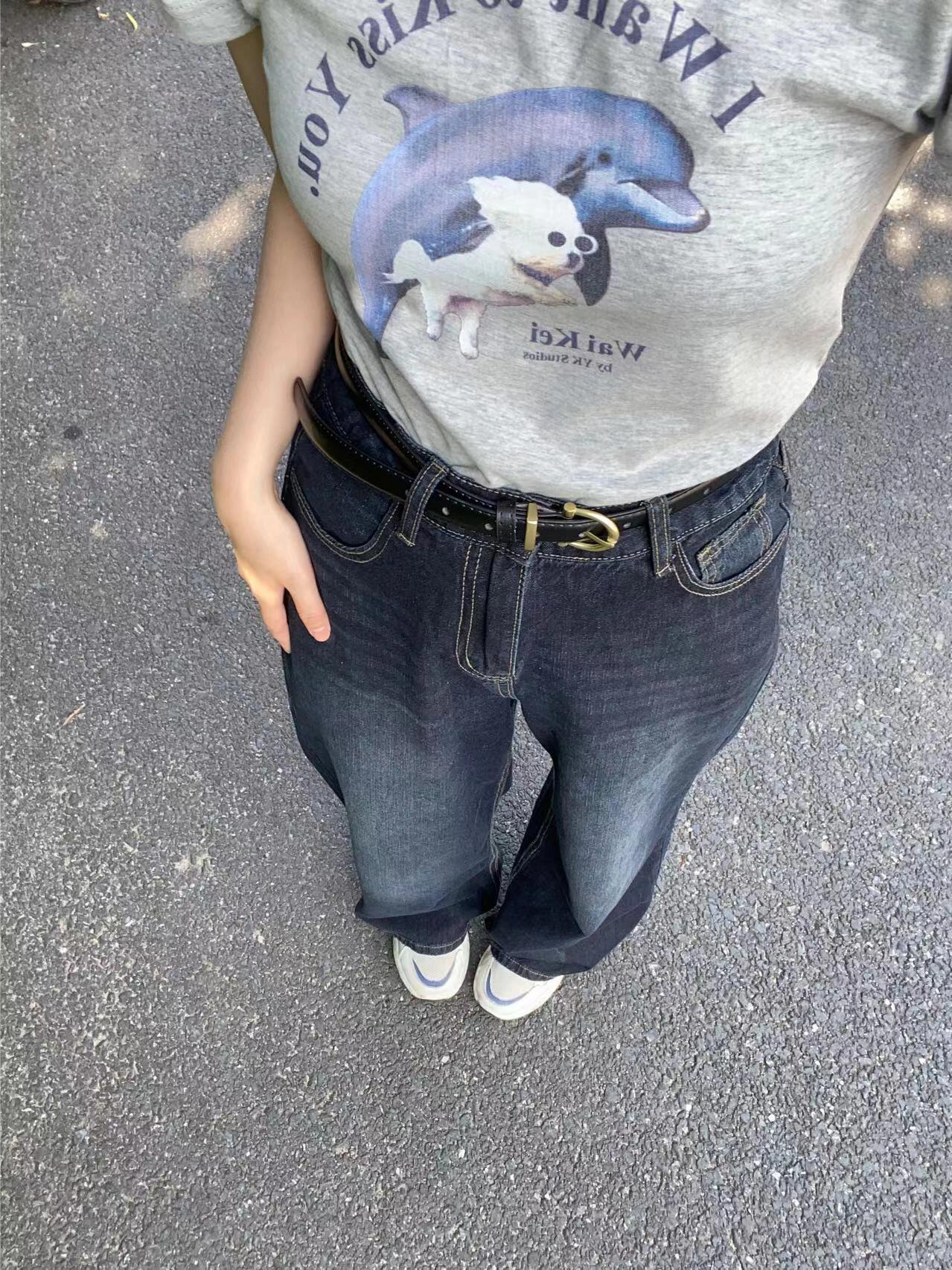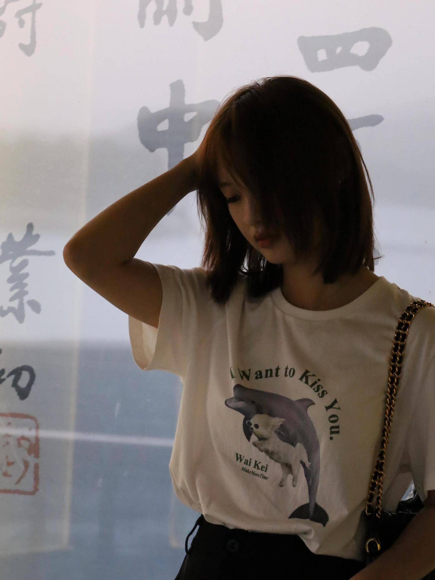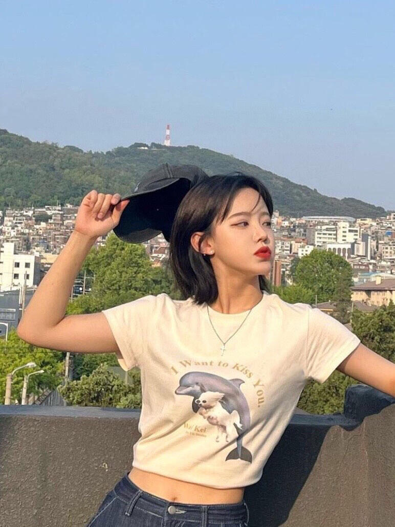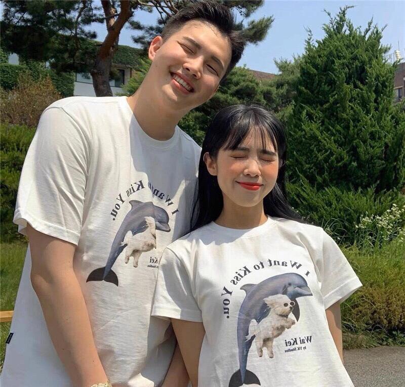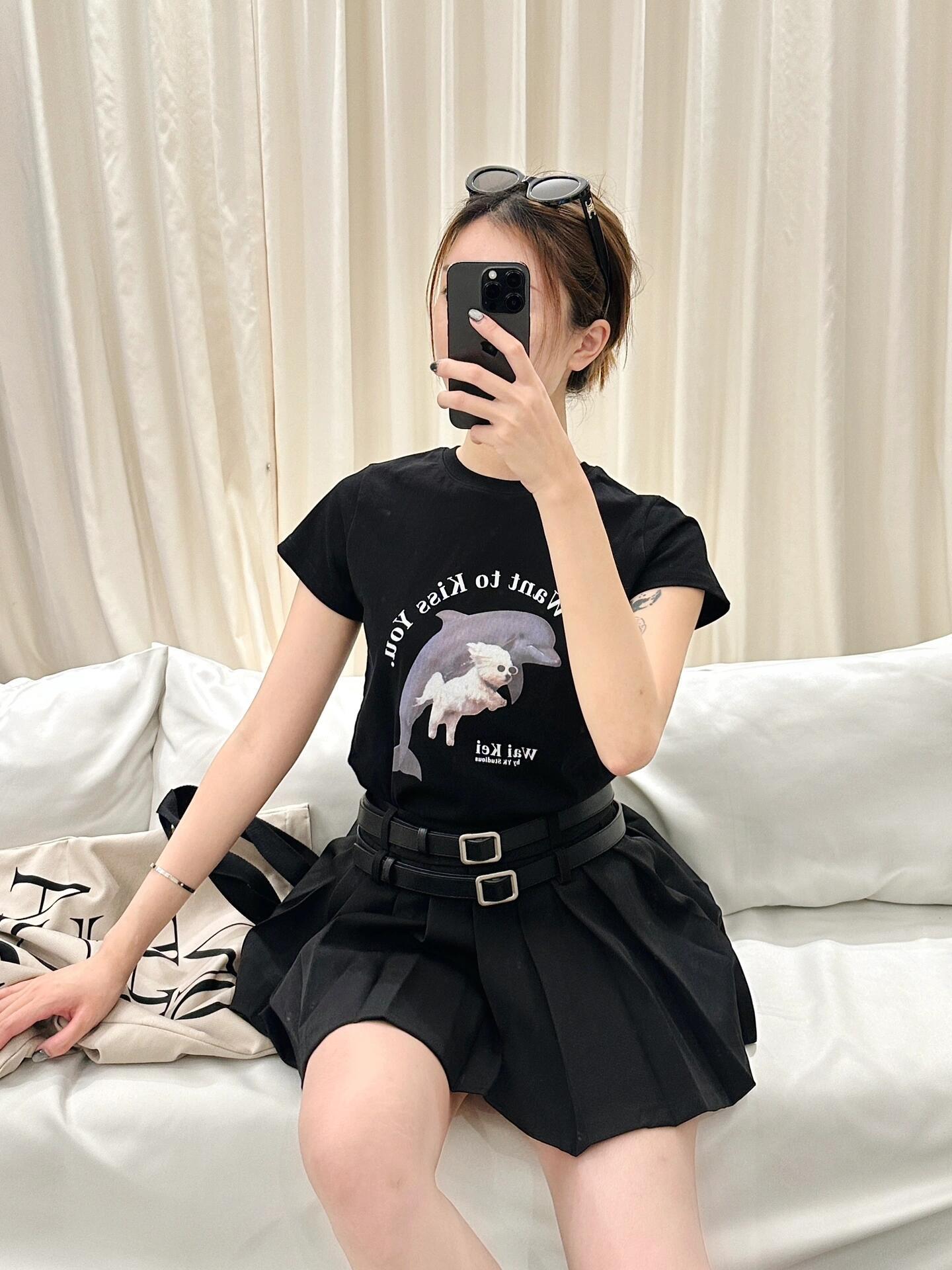 재고 한국 패션 브랜드 와이 케이 돌고래 개 반팔 티셔츠 여성면 느슨한 캐주얼 탑 여름 올매치스토어 가기