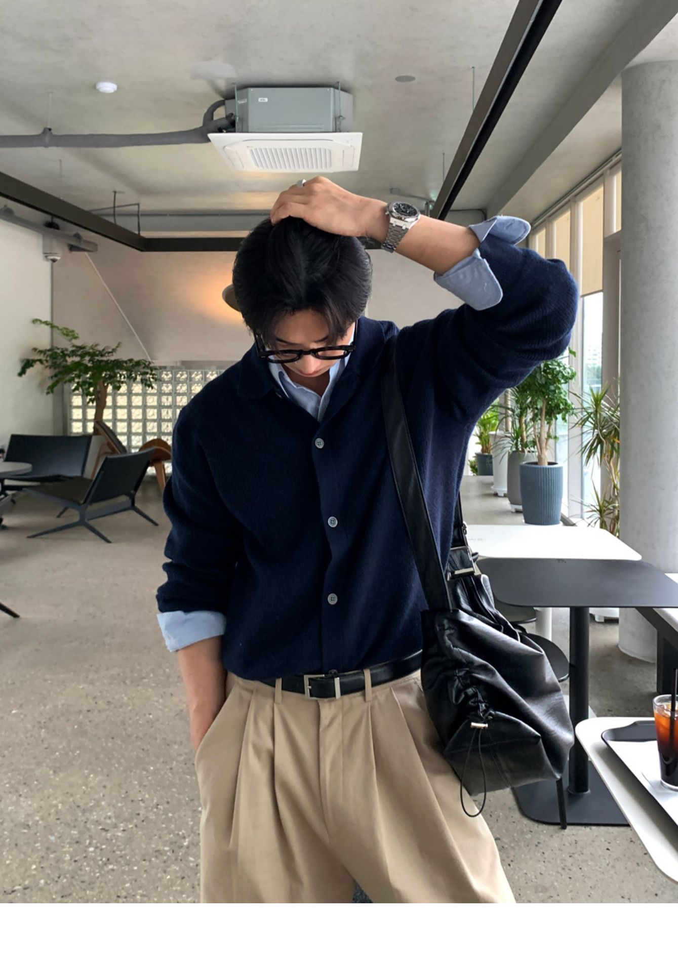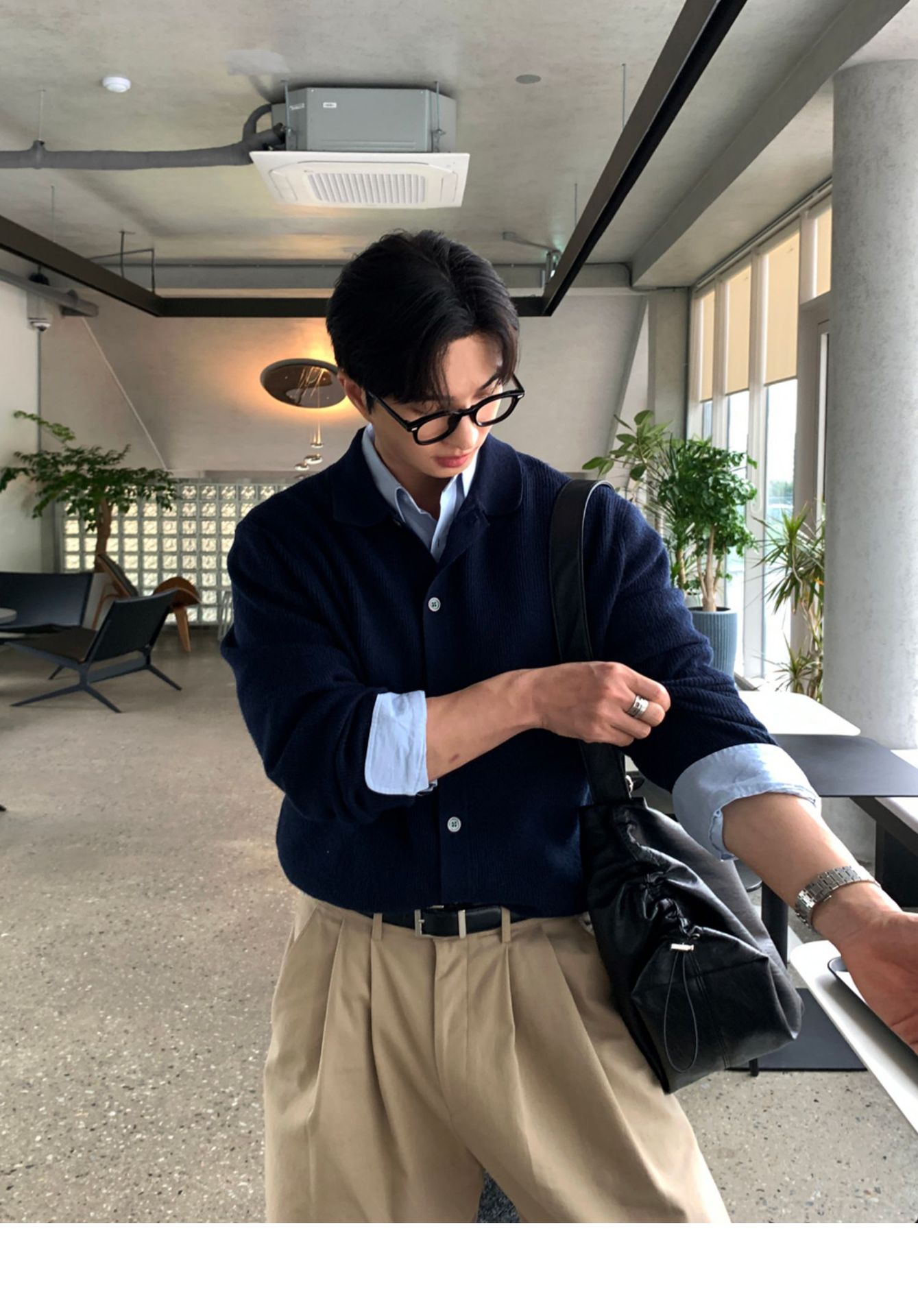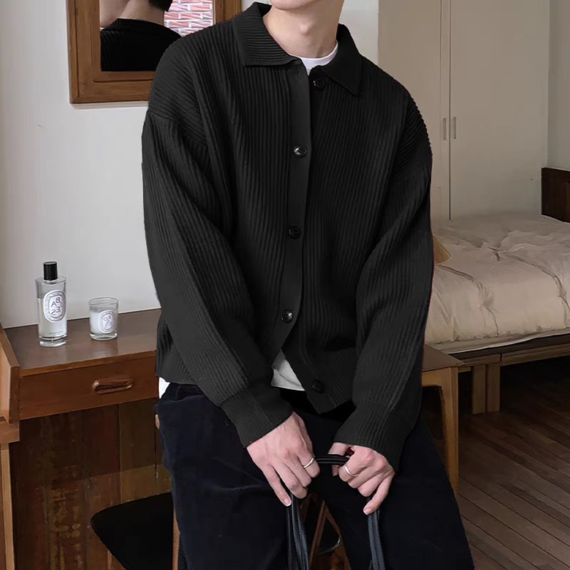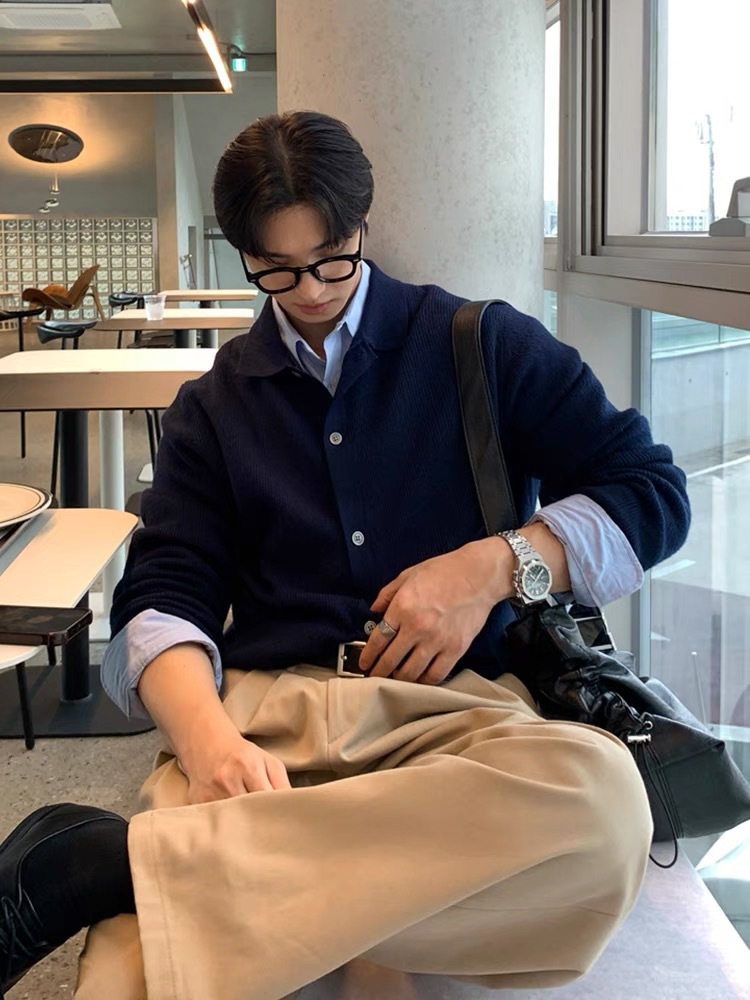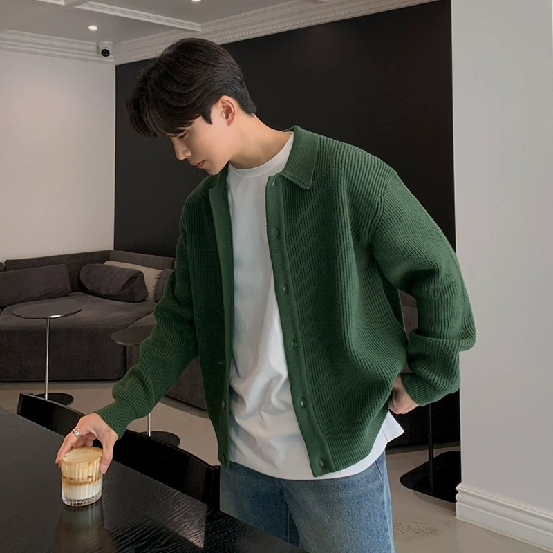 솔리드 컬러 라펠 스웨터 카디건 재킷 남성 가을 스웨터 한국 스타일 트렌디 캐주얼 레이지 스타일 탑스토어 가기