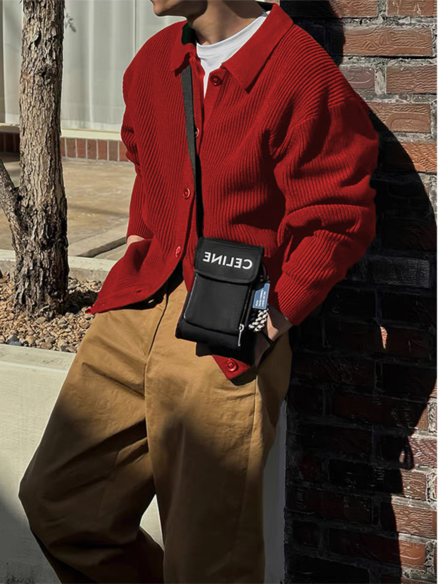 솔리드 컬러 라펠 스웨터 카디건 재킷 남성 가을 스웨터 한국 스타일 트렌디 캐주얼 레이지 스타일 탑