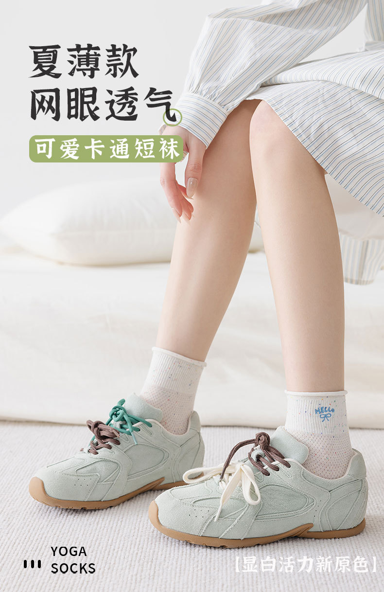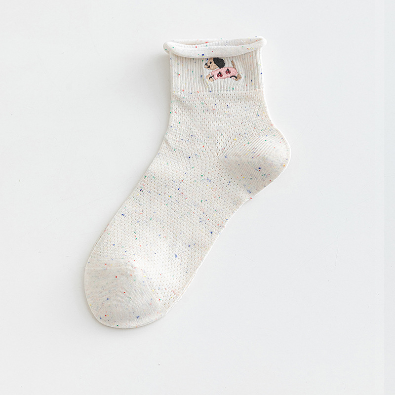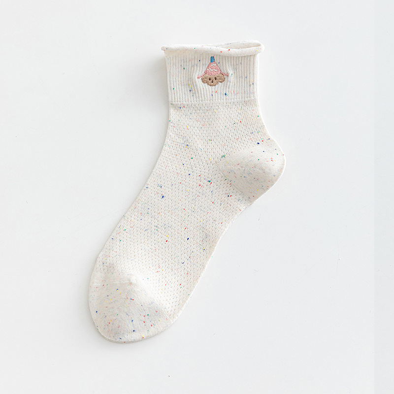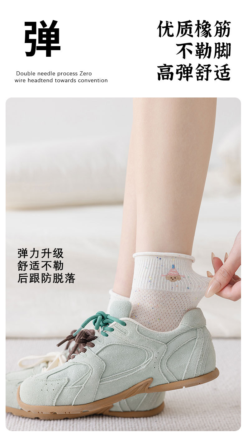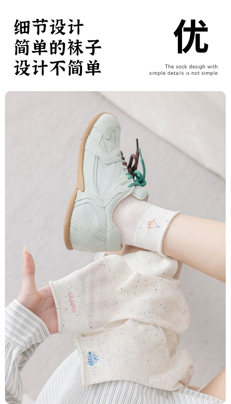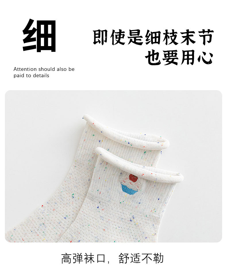 주지 양말 여성 여름 얇은 메쉬 통기성 땀 흡수 코튼 양말 귀여운 만화 올 매치 미드 실린더 컬 여성용 양말스토어 가기