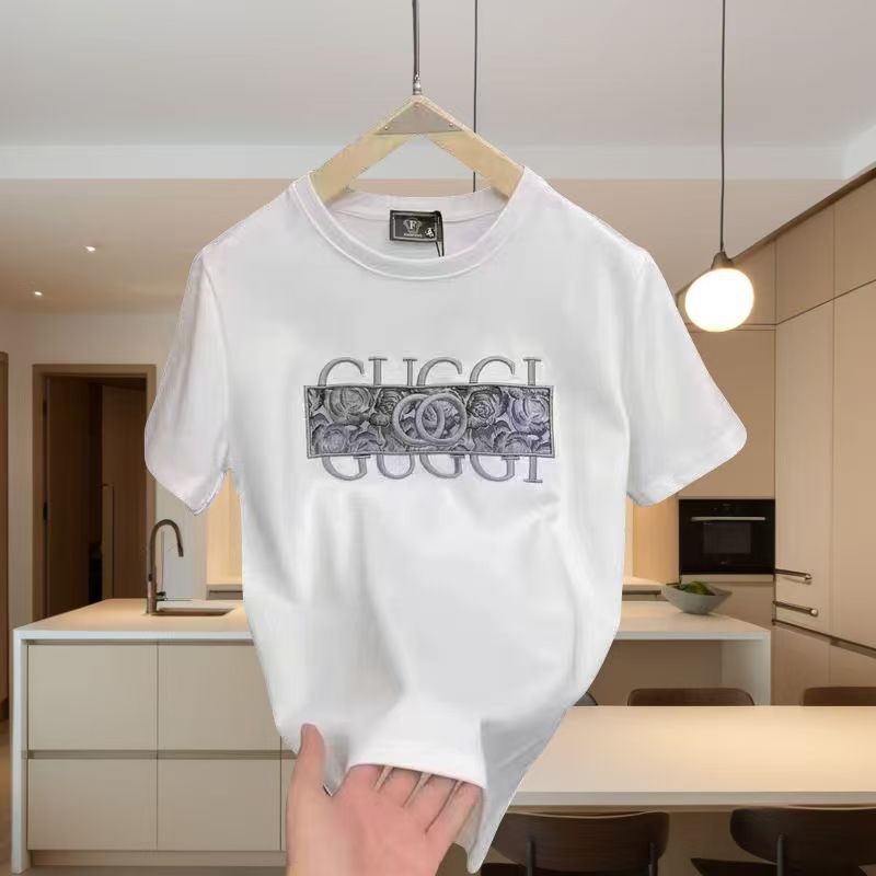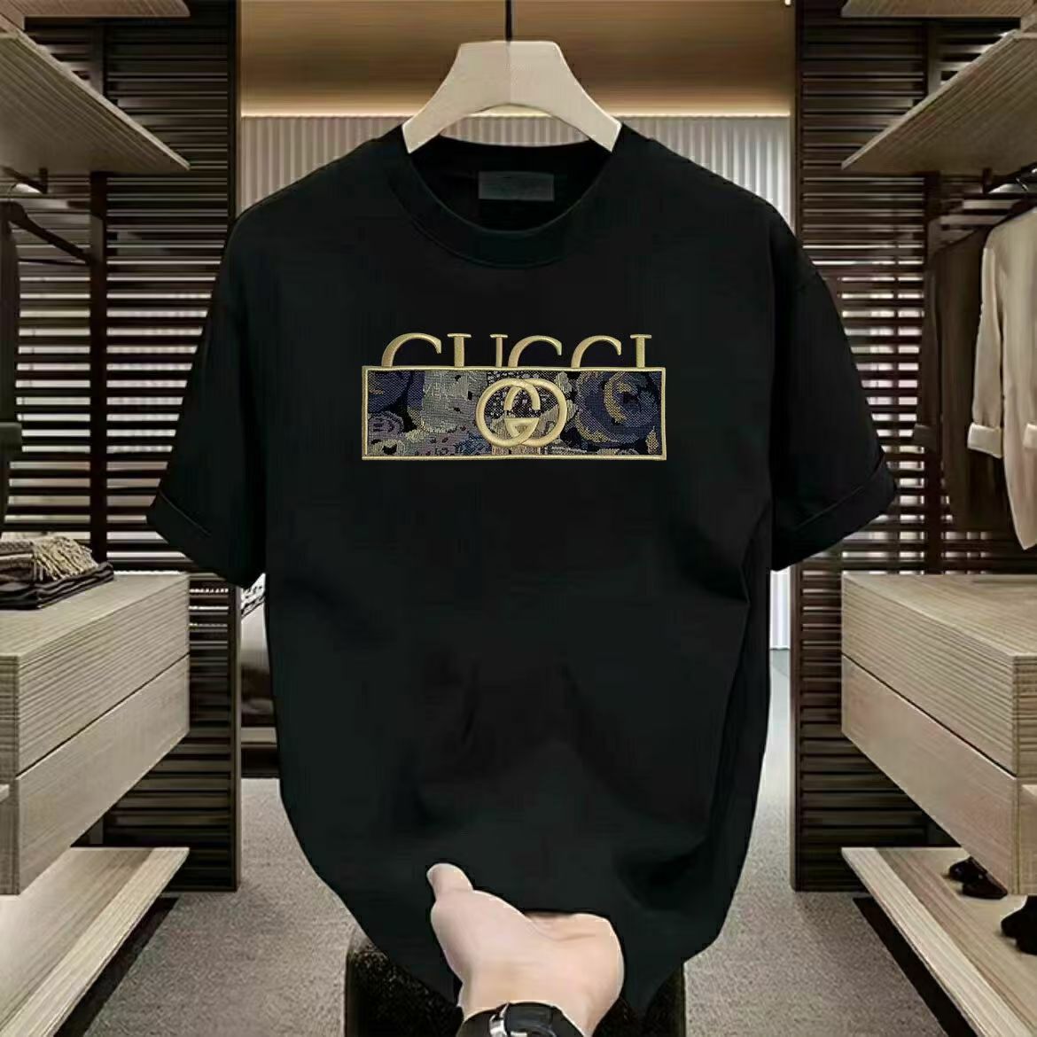 2025 년 여름 대외 무역 뉴 헤비 코튼 반팔 티셔츠 남자 라운드 넥 인쇄 트렌디 루즈 올 매치 탑스토어 가기