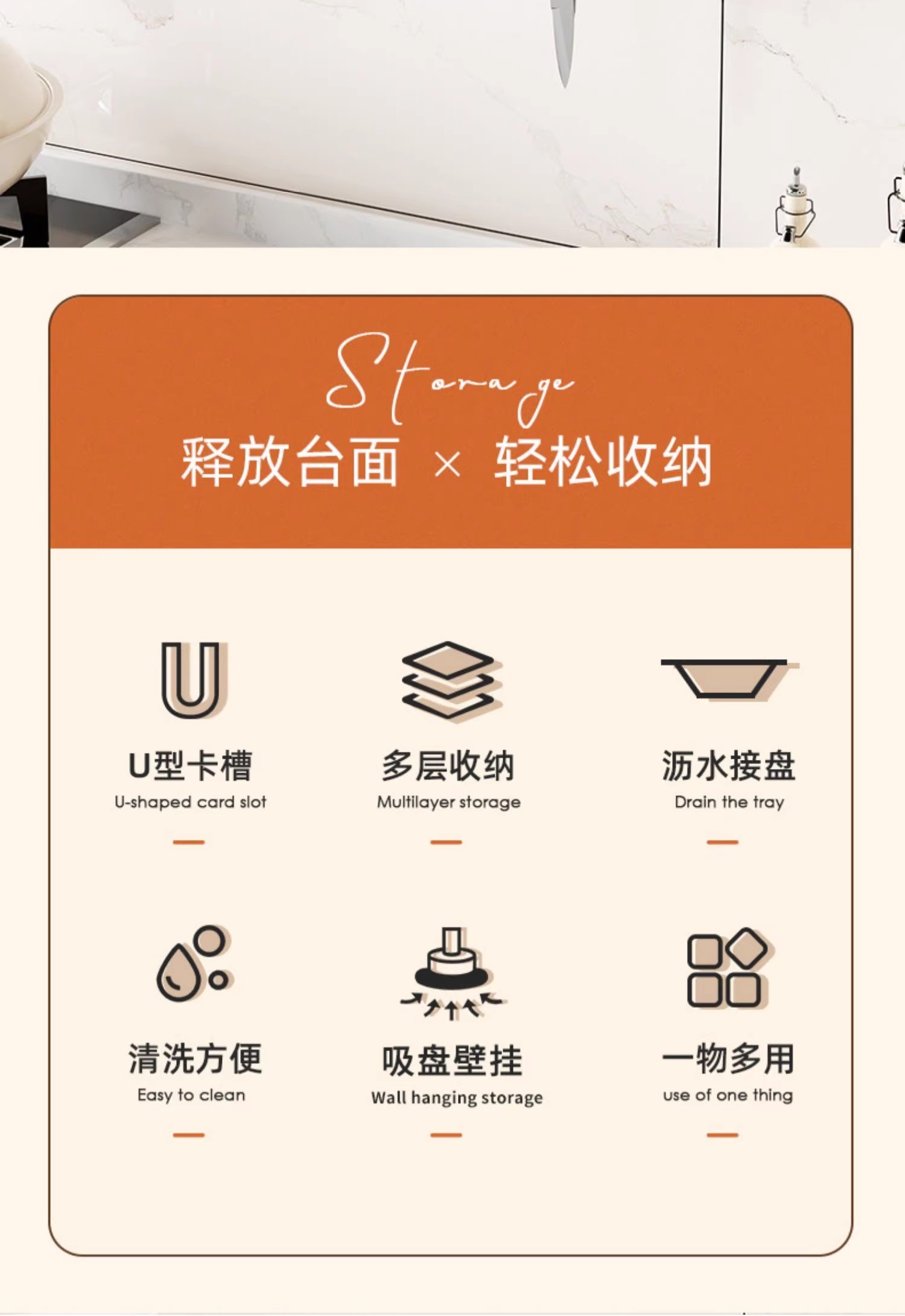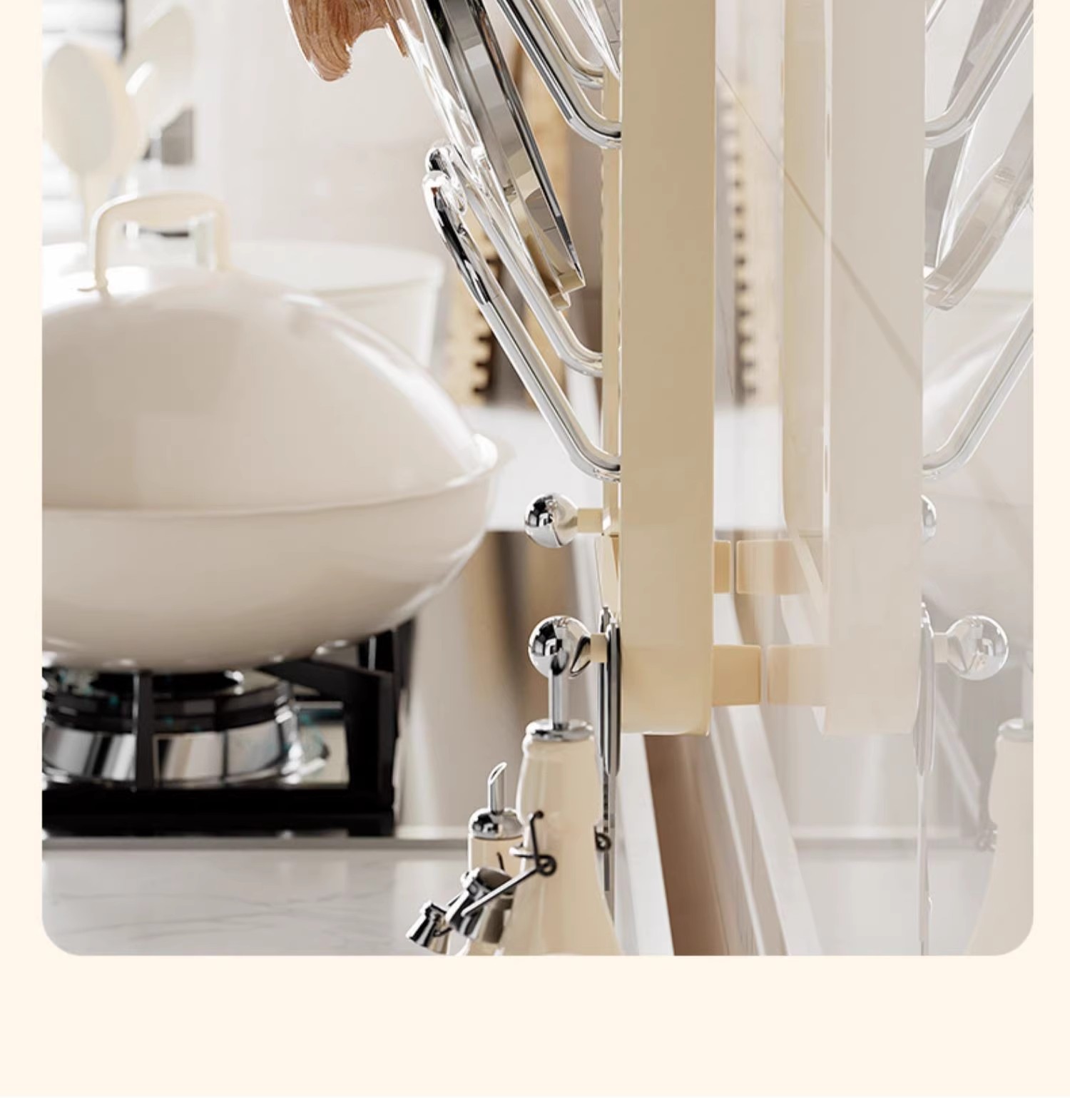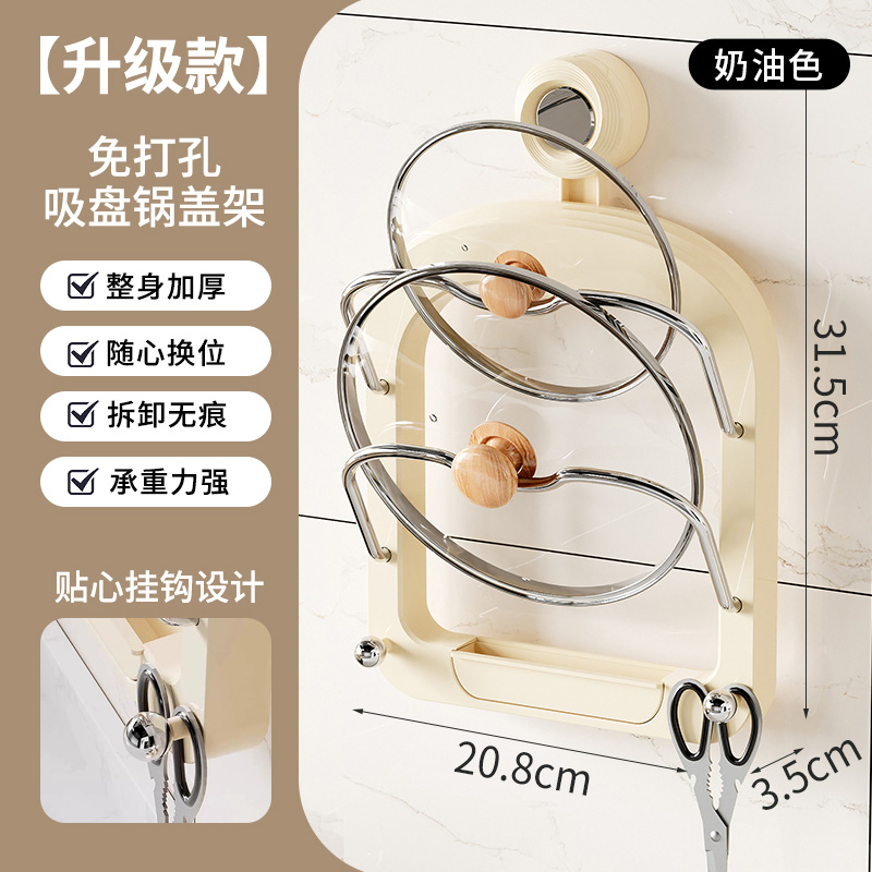 • 크림색 [1팩] 흡착판 냄비 뚜껑 홀더 핫 모델丨배수 트레이가 있는 이중 후크