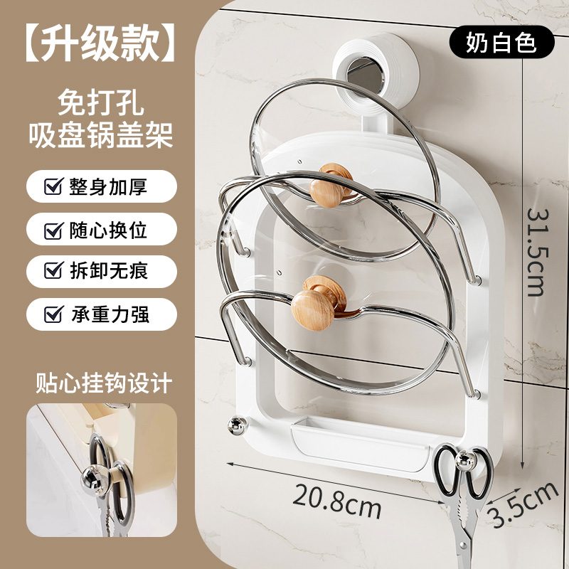 • 밀크 화이트 [1팩] 흡착판 냄비 뚜껑 홀더 핫 모델丨배수 트레이가 있는 이중 후크