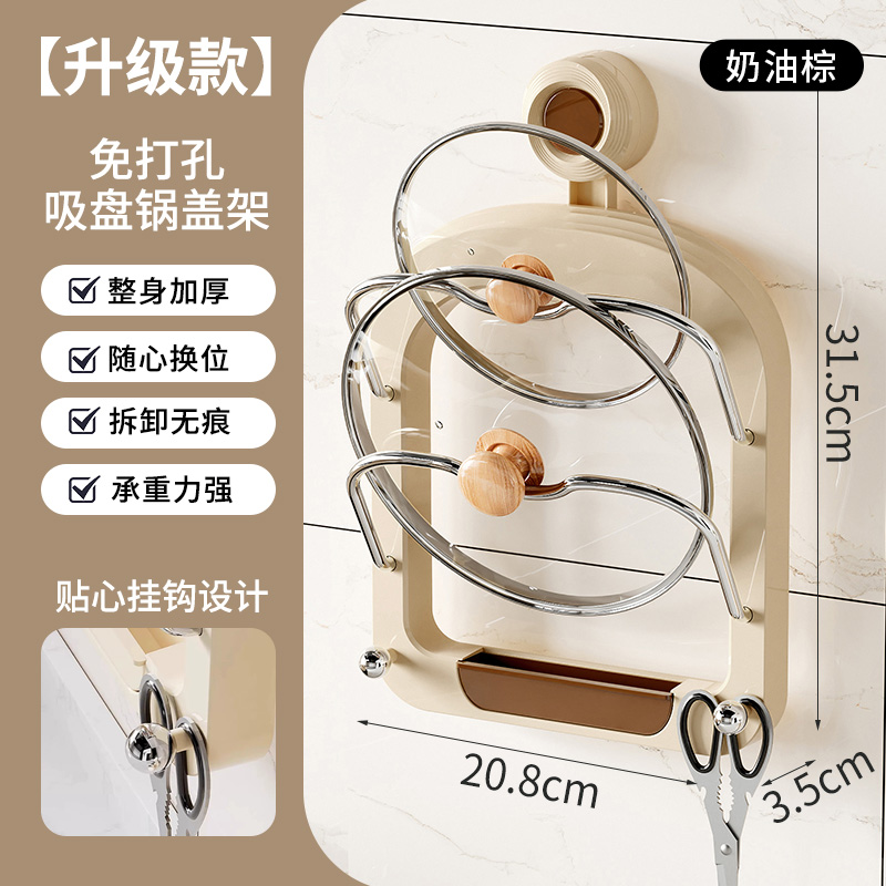 • 밀크티 브라운 [1팩] 흡착판 냄비 뚜껑 홀더 핫 모델丨배수 트레이가 있는 이중 후크