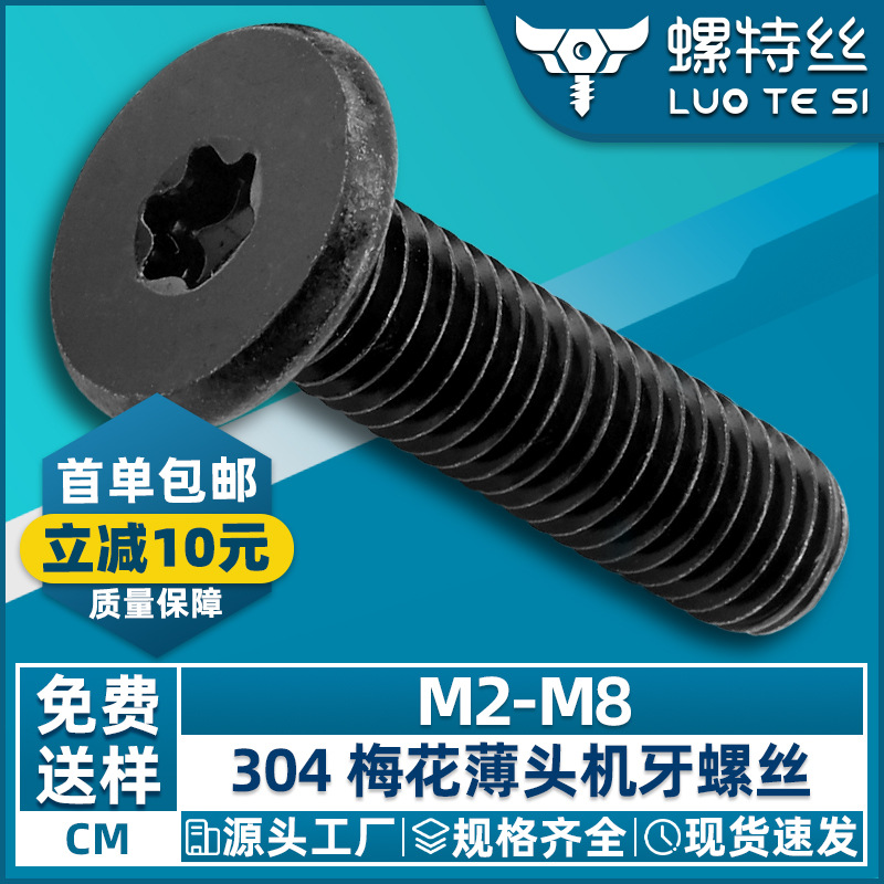304 스테인레스 스틸 CM 얇은 헤드 내부 매화 슬롯 기계 나사 검정색 도금 대형 플랫 헤드 기계 나사 M3/M4/M5/M6스토어 가기