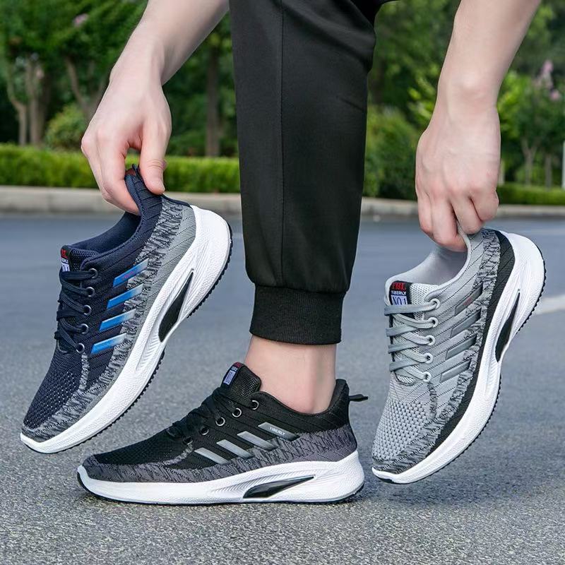 남성 캐주얼 신발, 플라이 니트 메쉬 스포츠 블랙 작업, 먼지 방지, 중년 및 노인 아빠 레이스 업 여행 신발스토어 가기