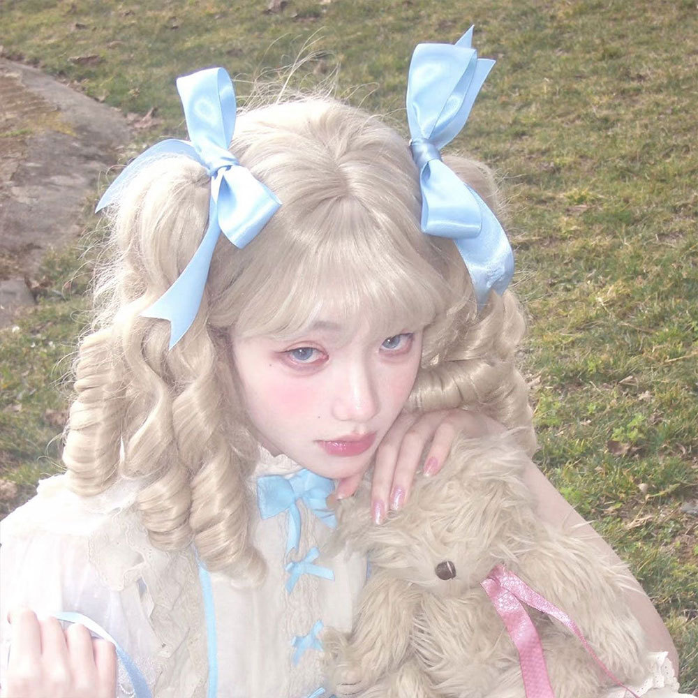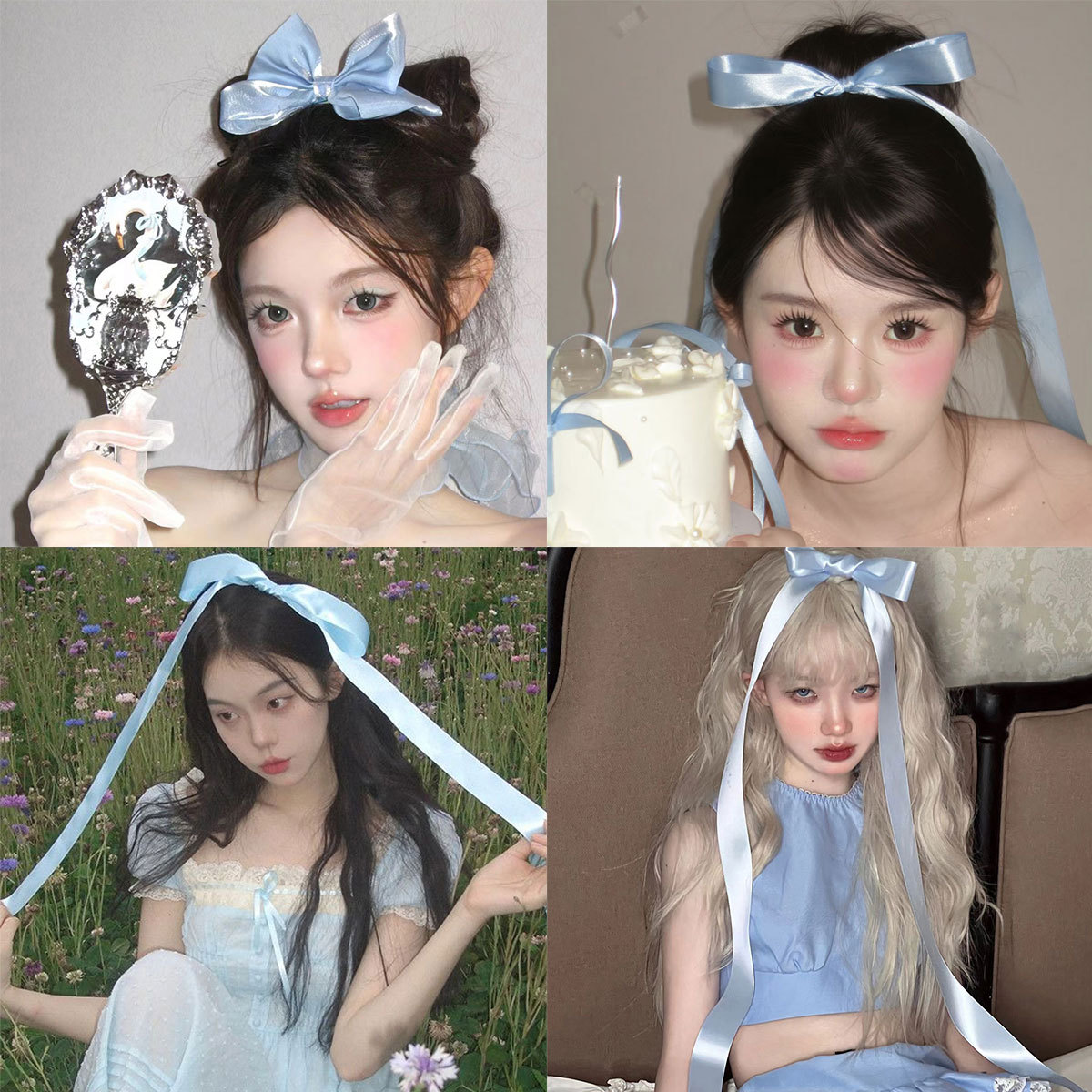 • 59#하늘색 리본 리본 머리핀 (D2442)