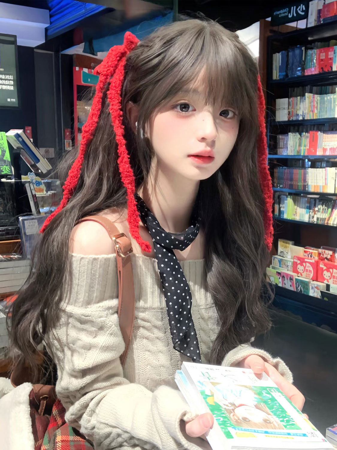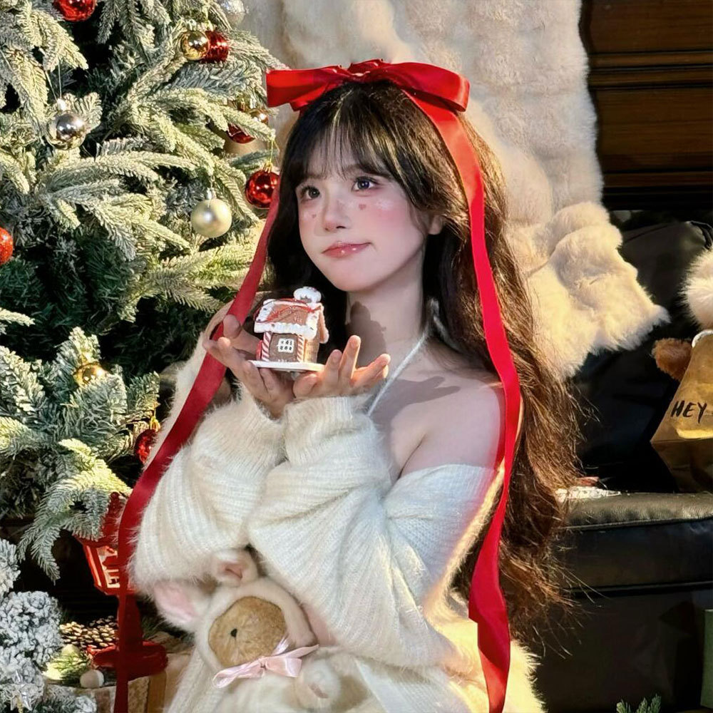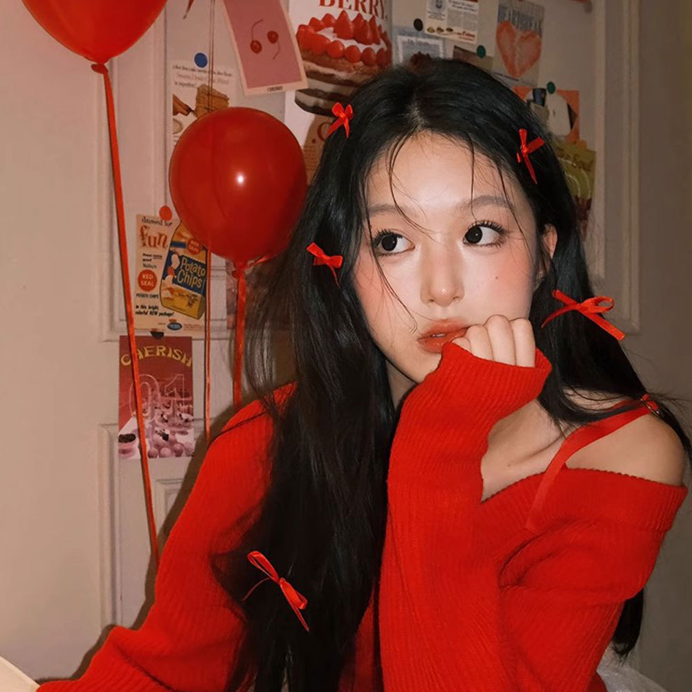 • 86#빨간색 긴 리본 머리핀 (HA0112)