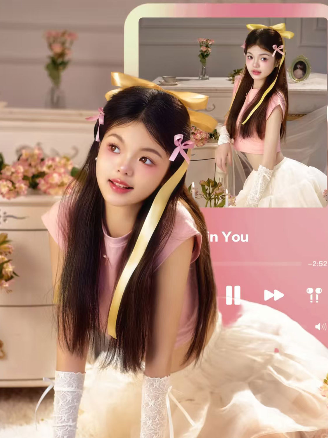 • 89#노란색 이중 리본 머리핀 (HA0328)