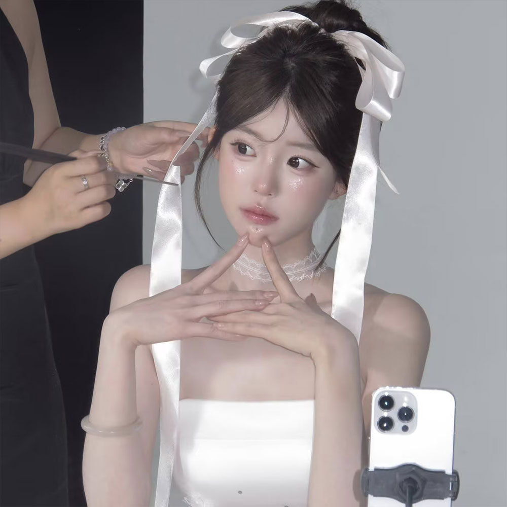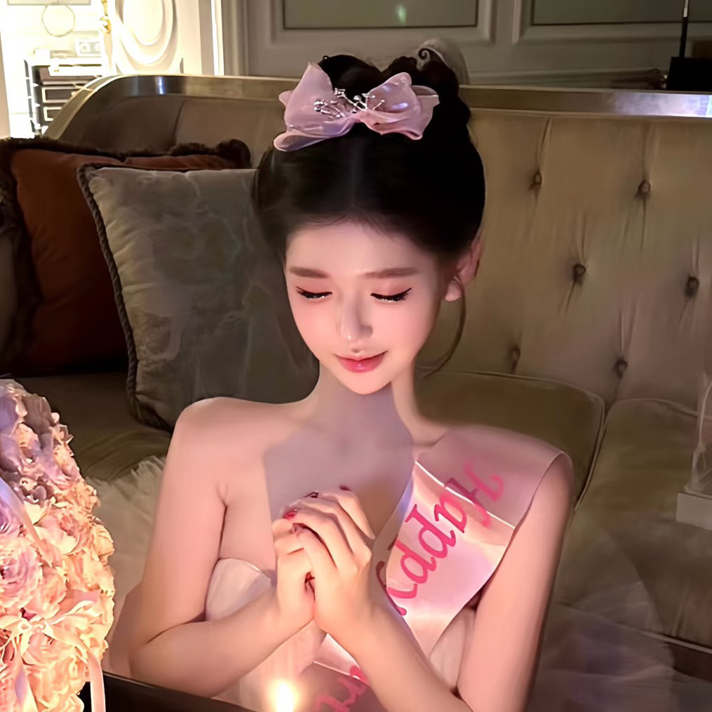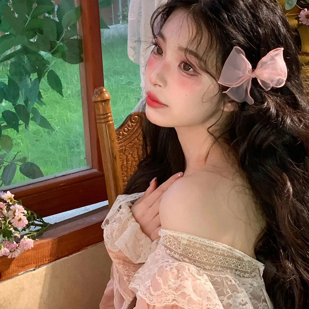 프랑스 발레 스타일 핑크 활 리본 헤어핀 달콤한 가리 리본 헤어핀 분위기 사진 헤어 액세서리