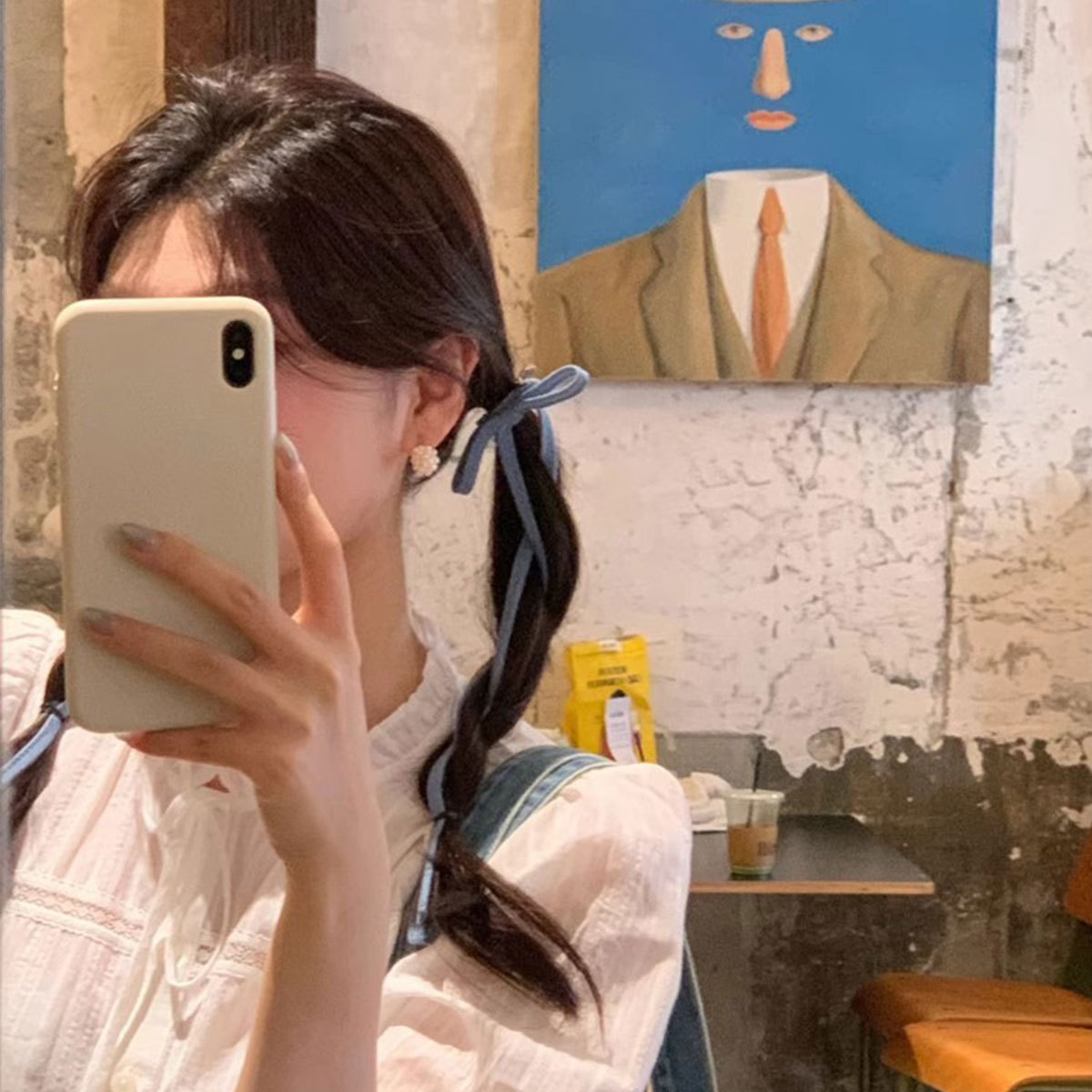 • 64#흰색 리본 리본 머리핀-1개(GA2054)