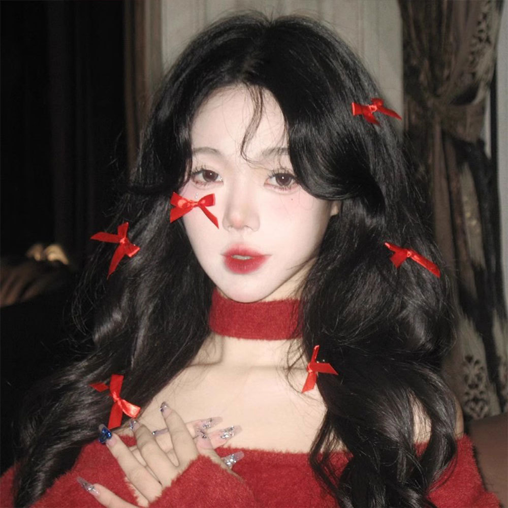 • 11#레드 새틴 리본 머리핀 (A2043)