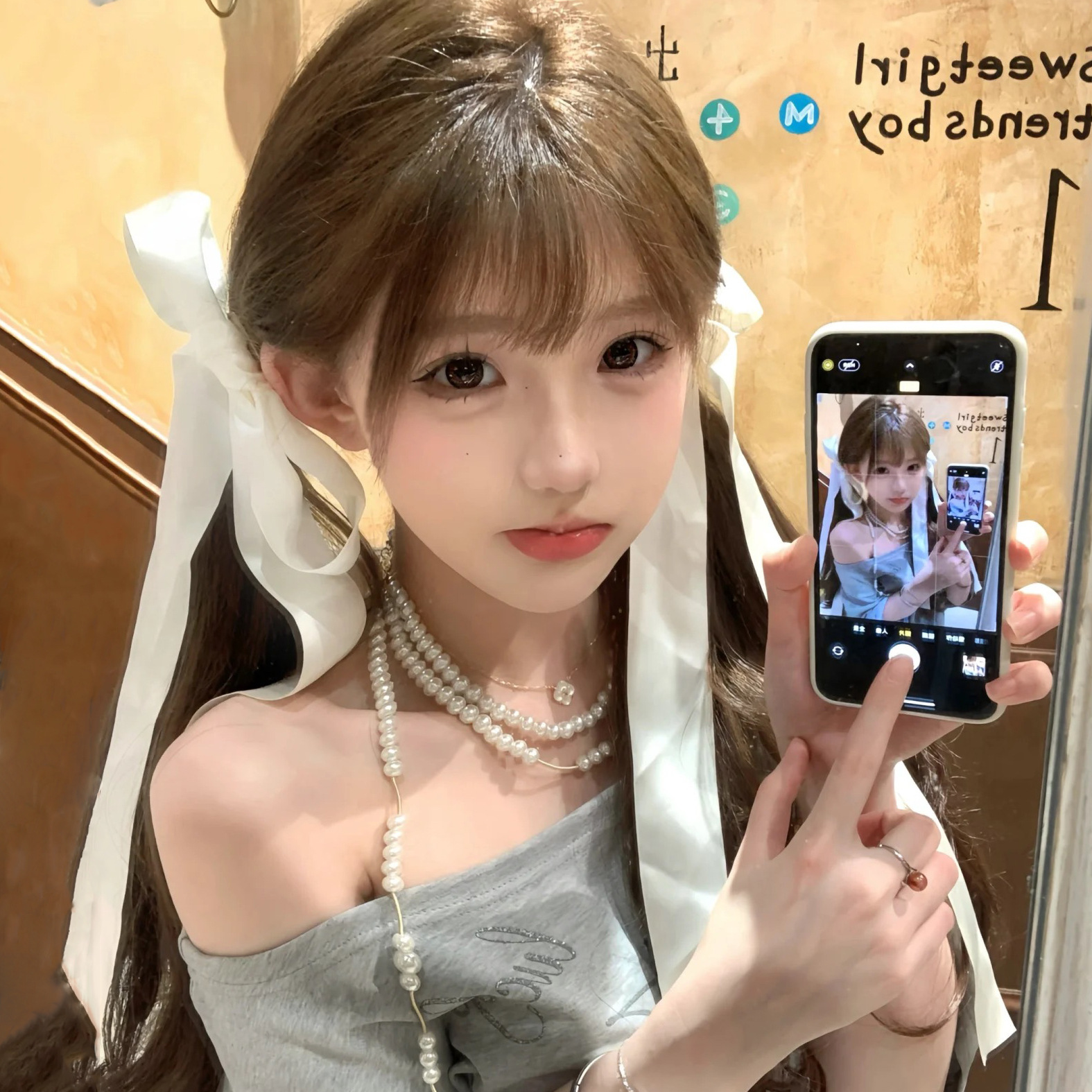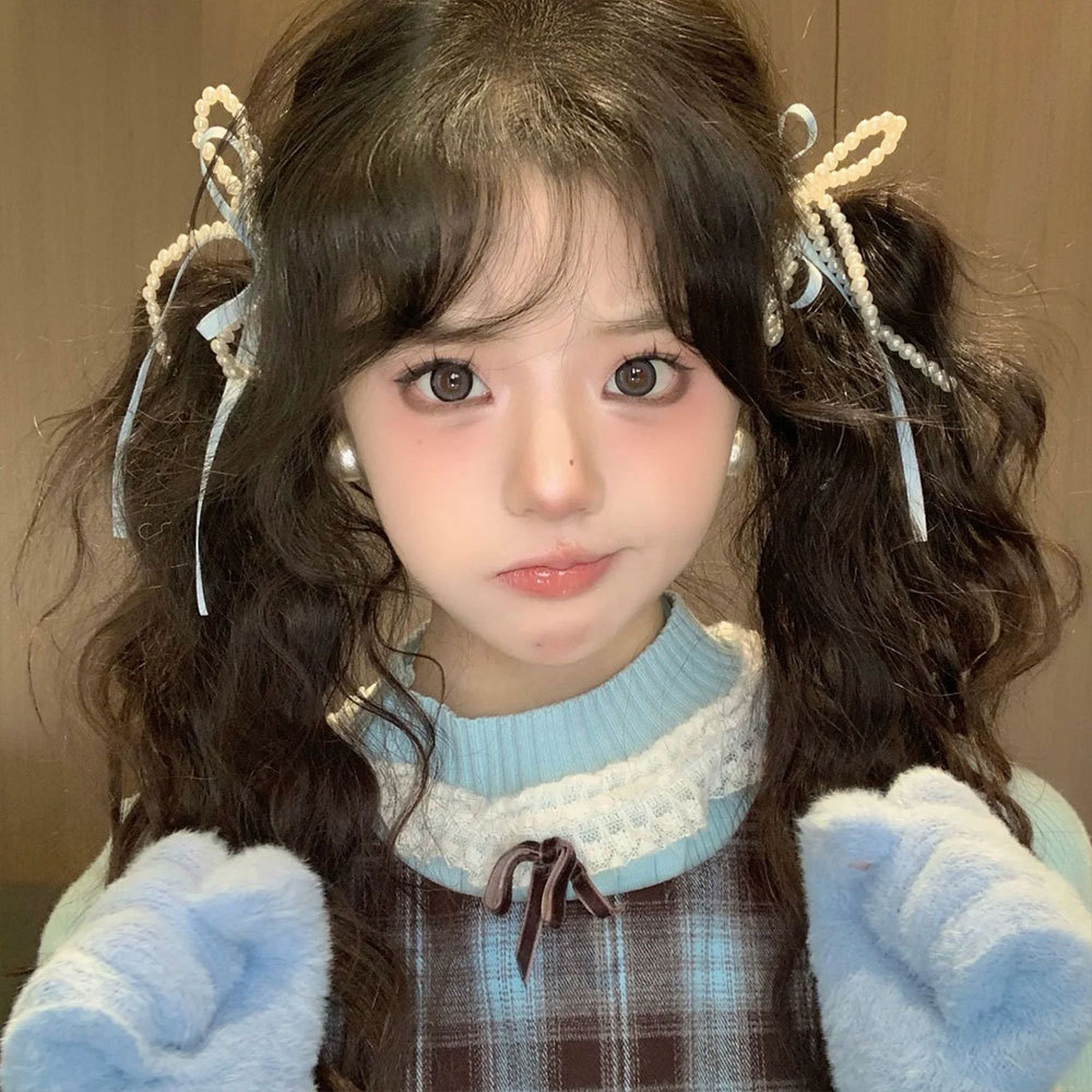 • 34#파란색 리본 진주 머리핀(GA3817)