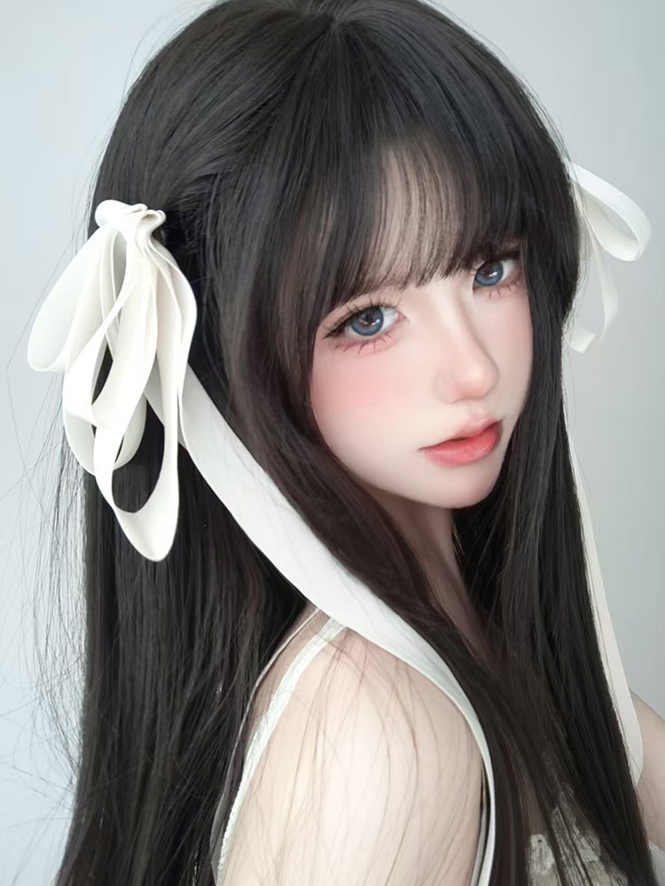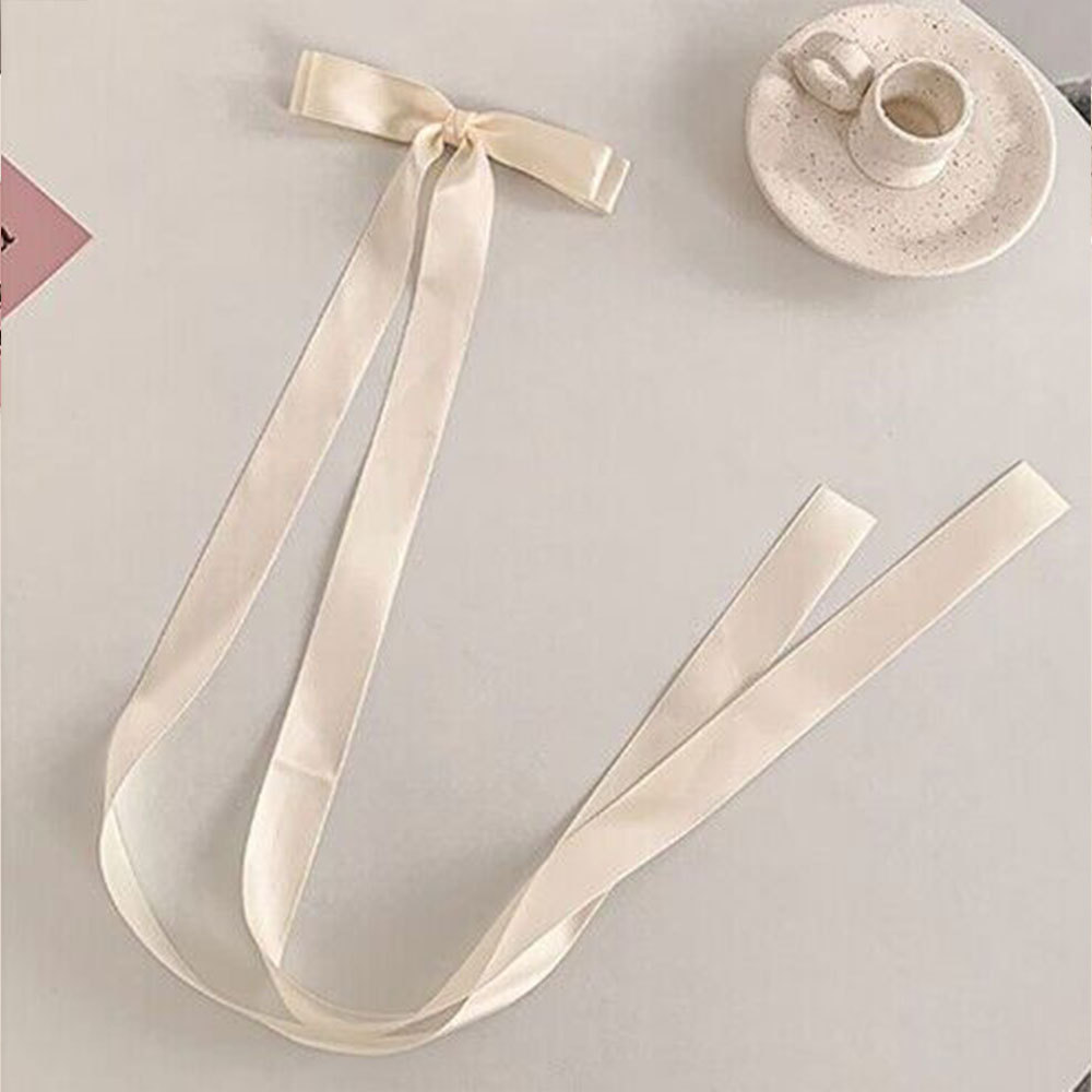 • 63#흰색 긴 리본 나비 매듭 머리핀 - 1개 (GA2047)