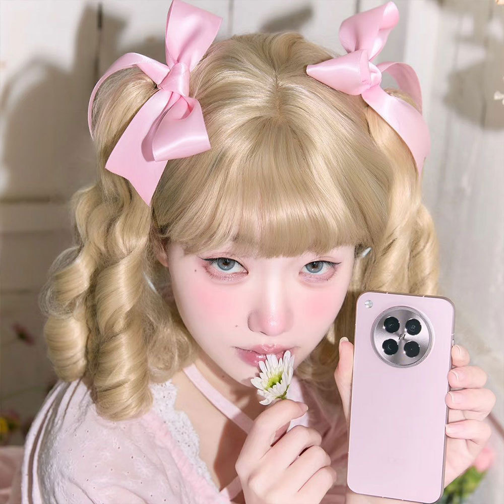 • 15#핑크 리본 옆머리핀 한 쌍 (BA1718)