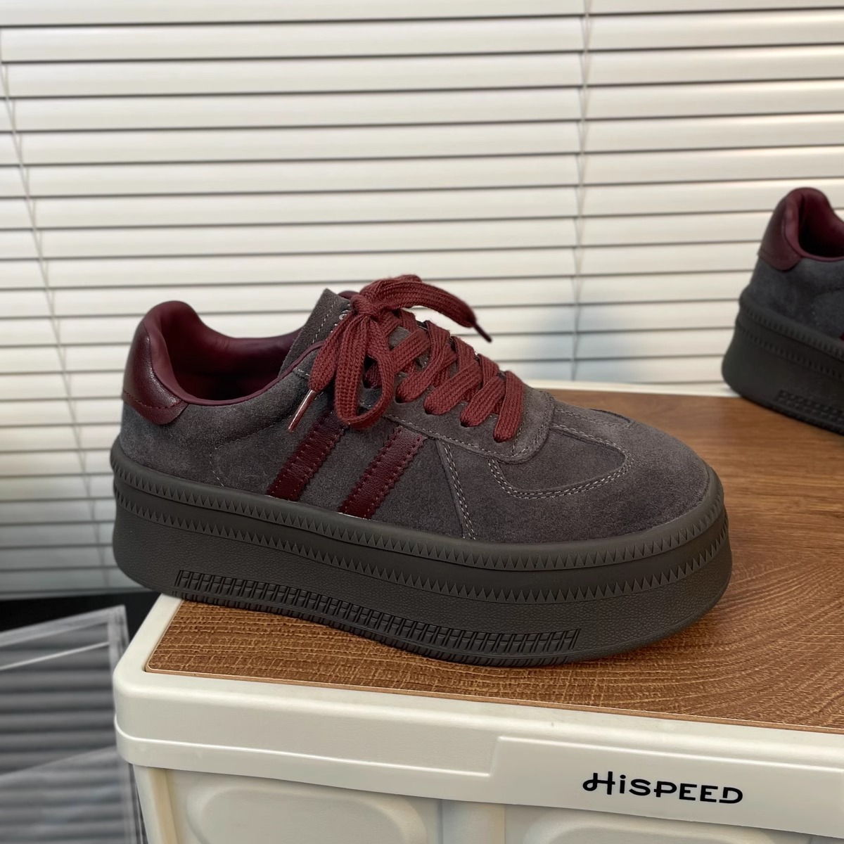 2025 봄과 가을 새로운 스타일 플랫폼 레드 빈티지 독일 훈련 신발 프로스트 정품 가죽 컬러 블록 캐주얼 스포츠 플랫폼 신발스토어 가기
