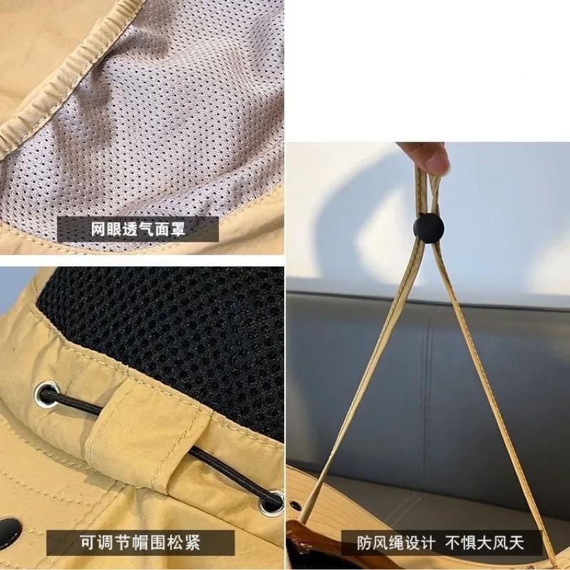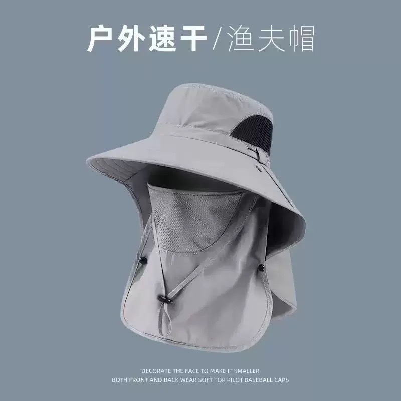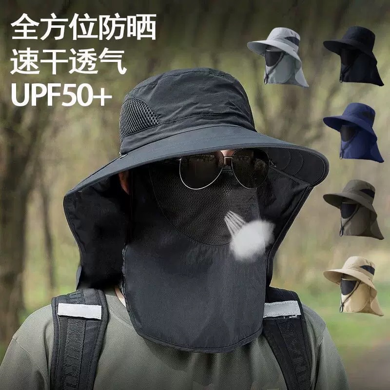 어부 모자 여름 태양 보호 태양 모자 남자 야외 등산 모자 낚시 얼굴 덮은 목 보호 통합 모자 대형 콘형 태양 모자