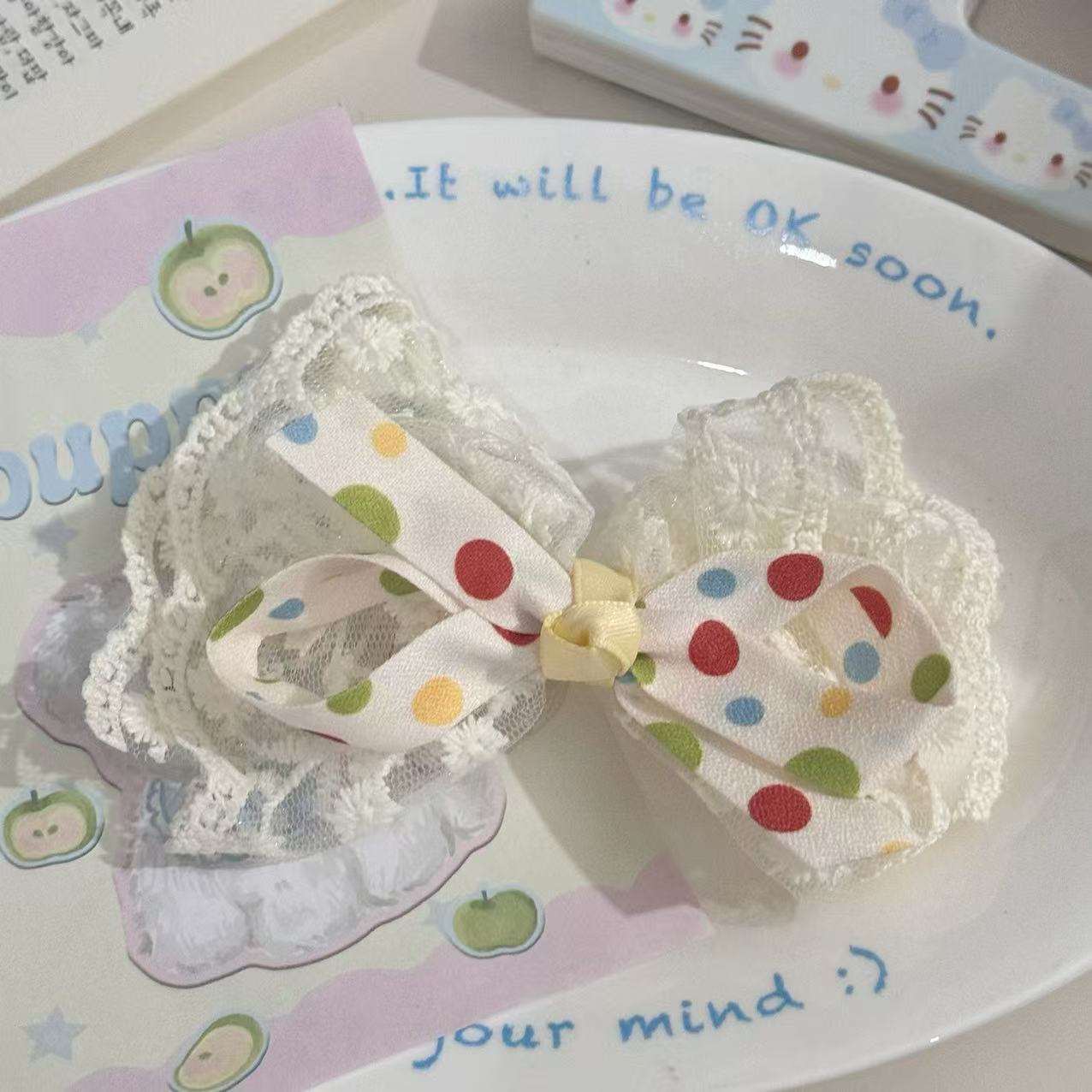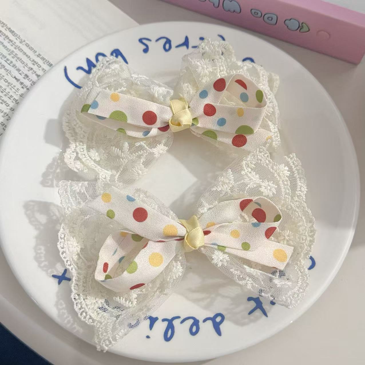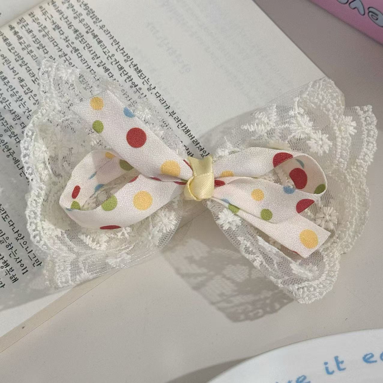 달콤한 소녀 폴카 도트 레이스 활 헤어핀 모리 스타일 귀여운 헤어핀 여름 레트로 클립 헤드웨어 헤어 액세서리
