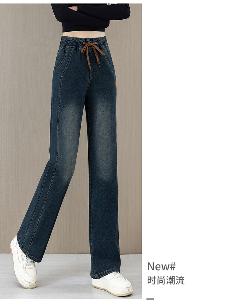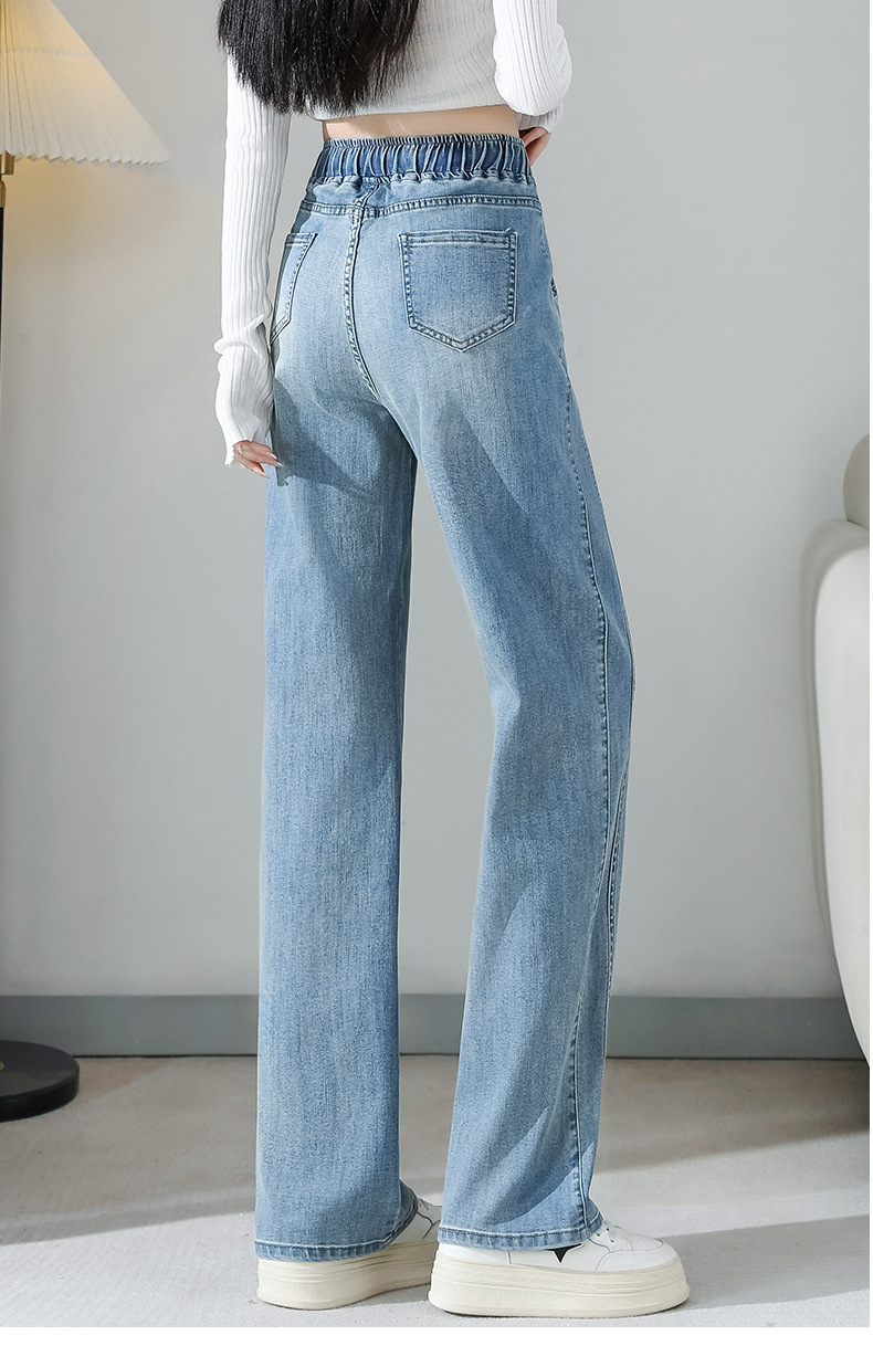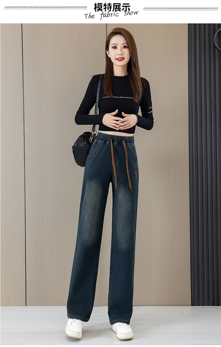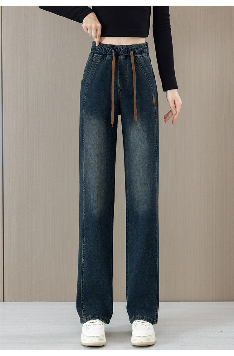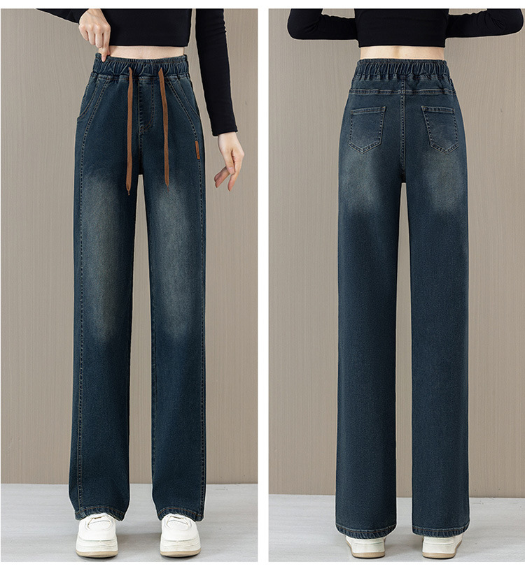여성용 연한 색상의 일자 청바지 2025년 가을 신상품 신축성 있는 허리밴드 루즈핏 대형 사이즈 하이웨이스트 슬림핏 와이드 팬츠 겨울용스토어 가기