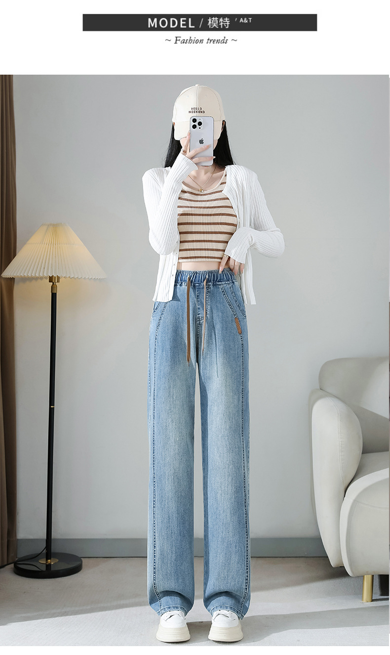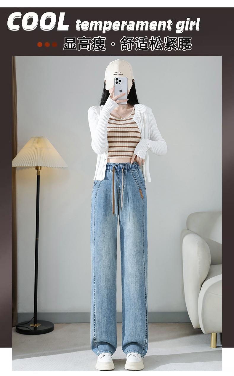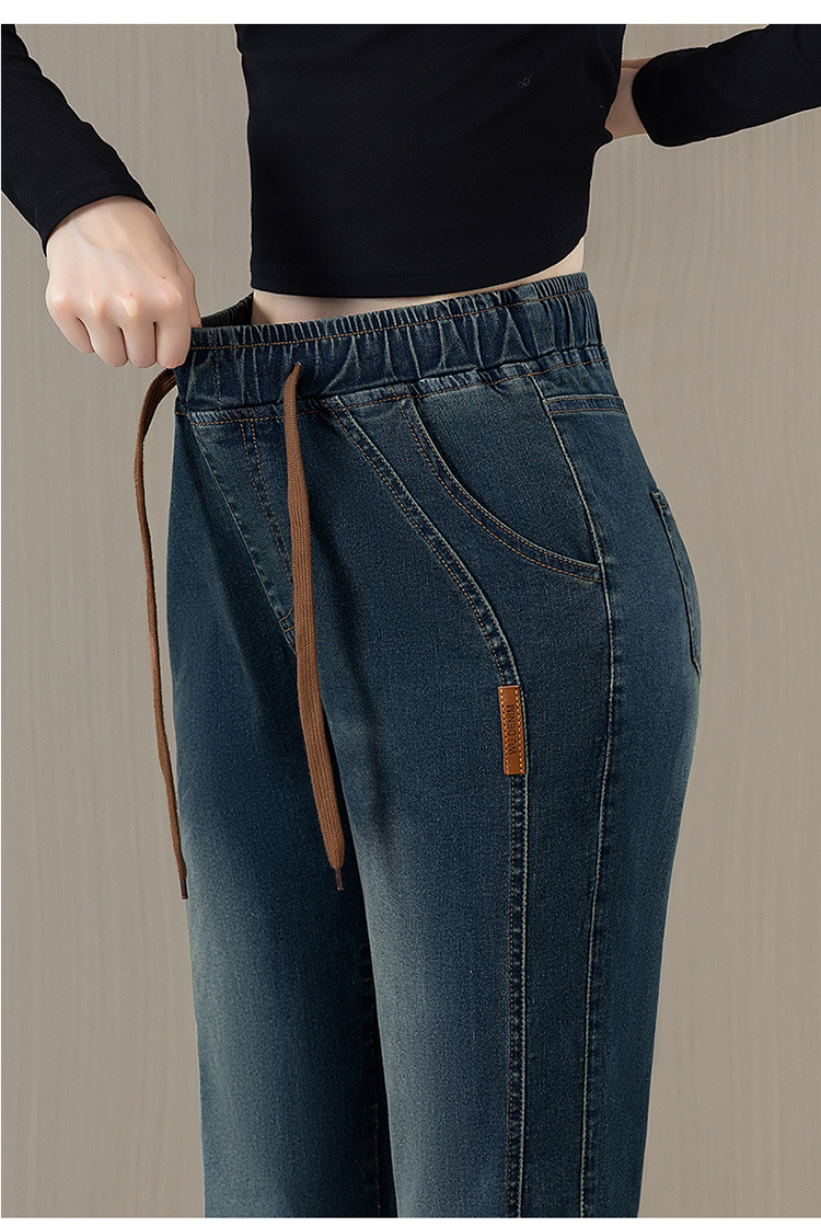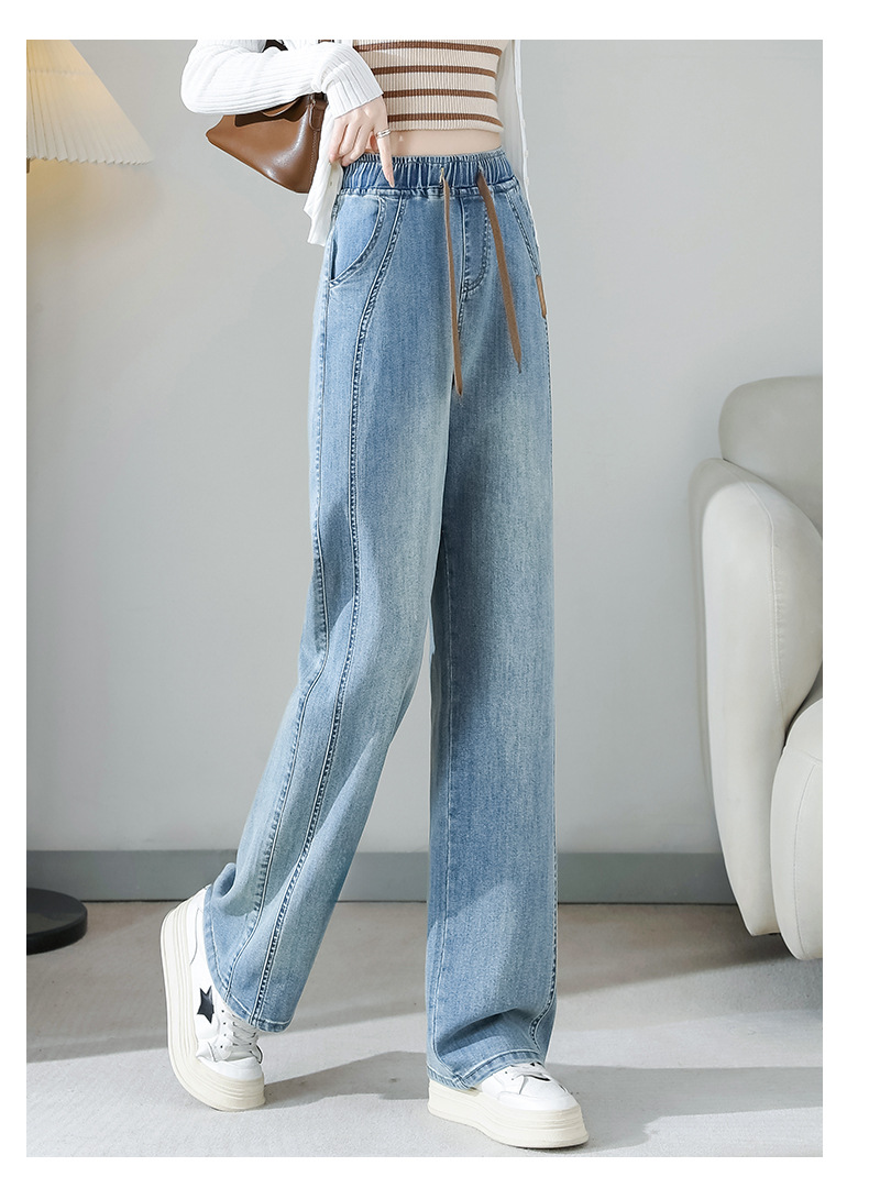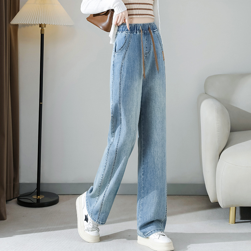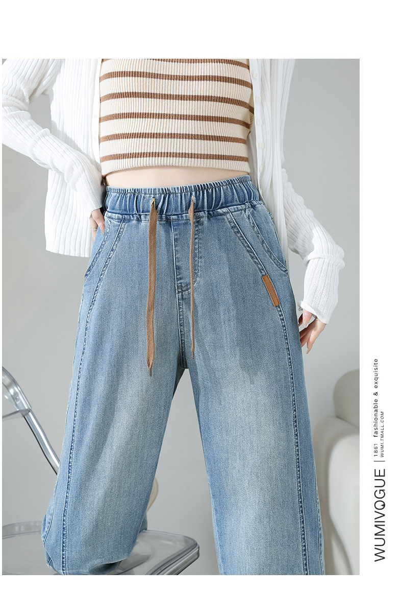 여성용 연한 색상의 일자 청바지 2025년 가을 신상품 신축성 있는 허리밴드 루즈핏 대형 사이즈 하이웨이스트 슬림핏 와이드 팬츠 겨울용스토어 가기