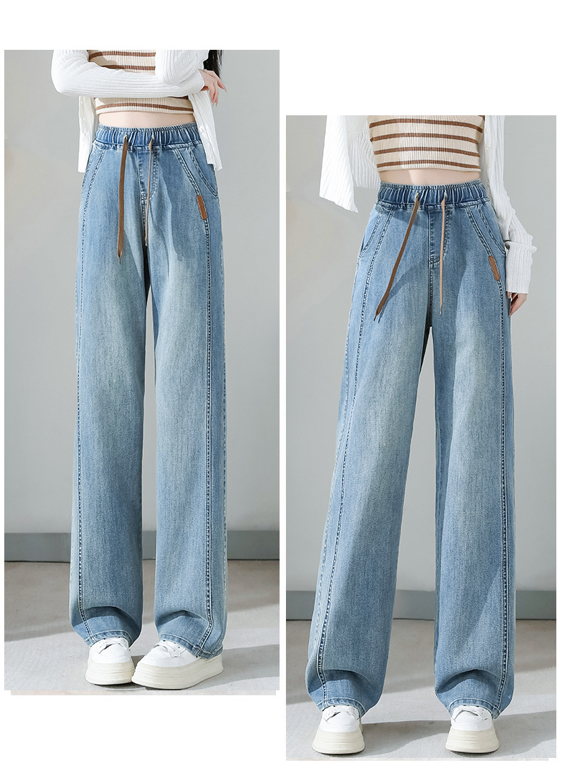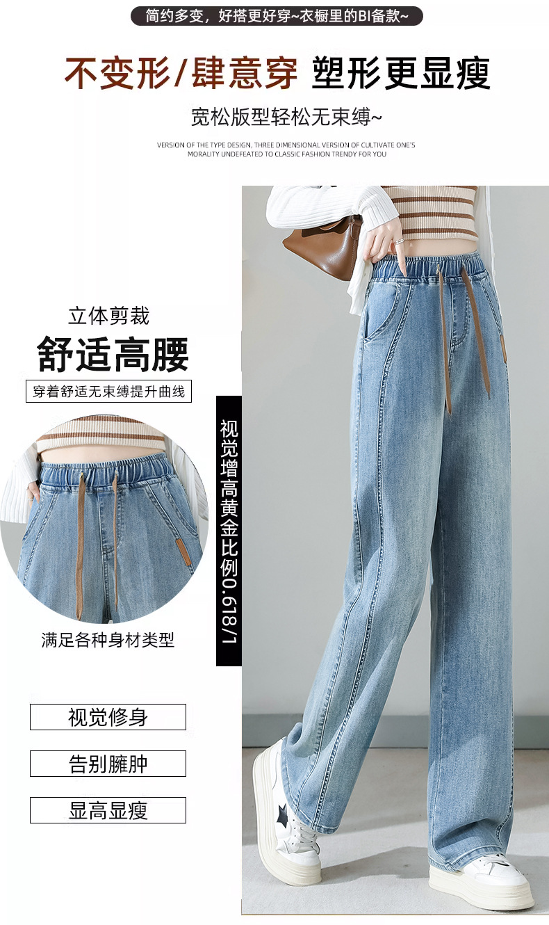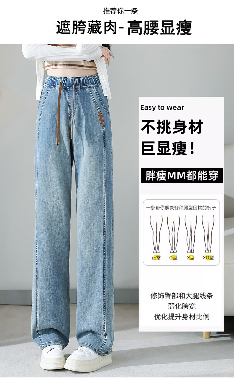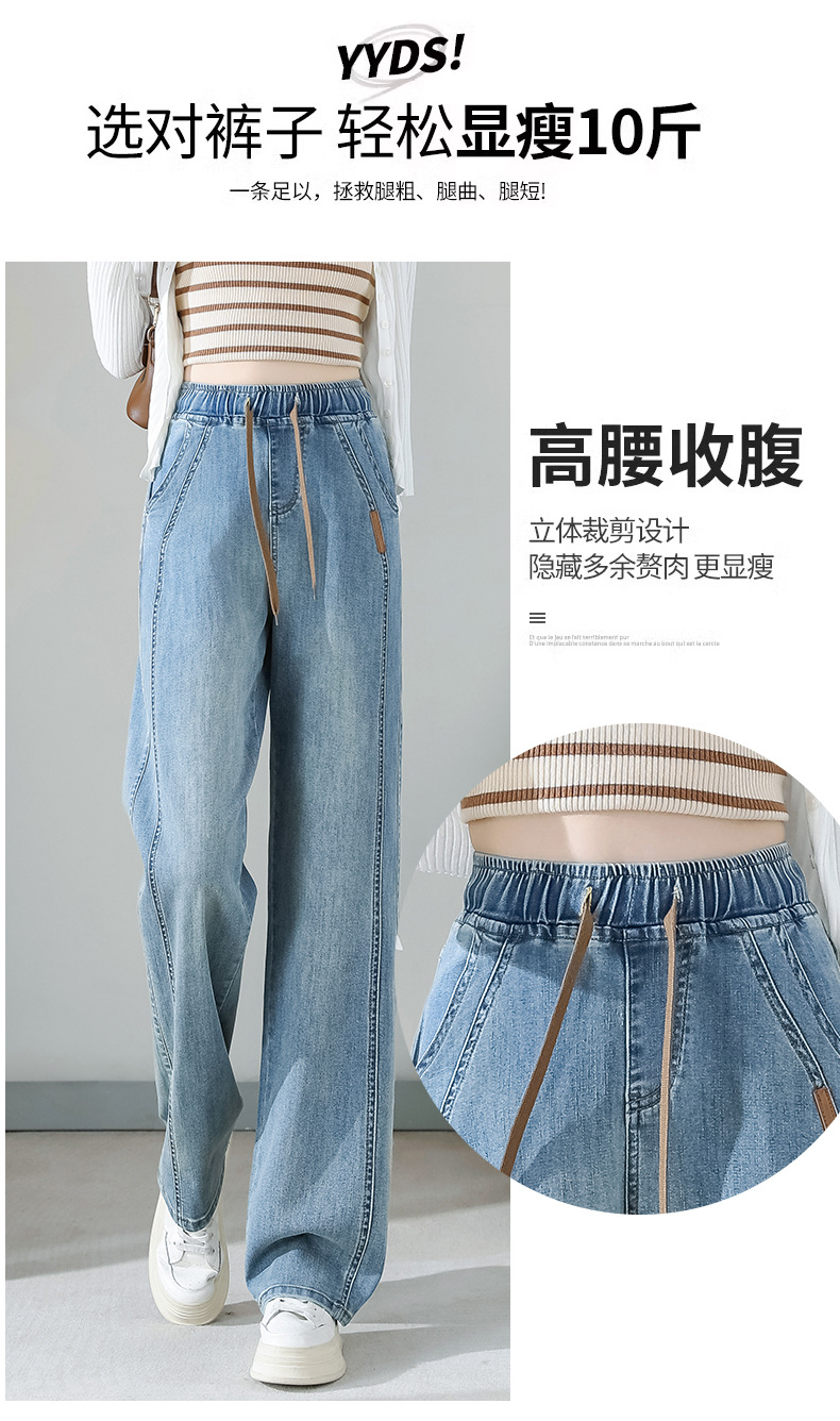 여성용 연한 색상의 일자 청바지 2025년 가을 신상품 신축성 있는 허리밴드 루즈핏 대형 사이즈 하이웨이스트 슬림핏 와이드 팬츠 겨울용스토어 가기