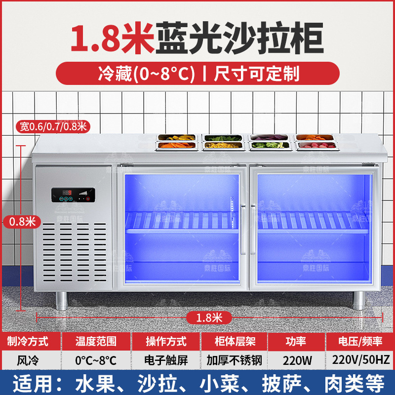 • 1.8m 냉장 샐러드 냉각기(청색광 유리문) 6/1 부분 세면대 10개 무료
