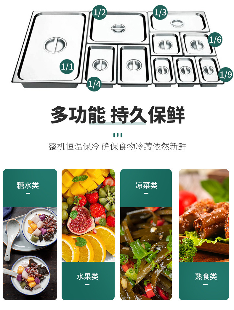 공냉식 샐러드 테이블, 상업용 냉동고, 과일 냉장 디스플레이 캐비닛, 주방 다기능 슬롯형 신선 유지 냉장고