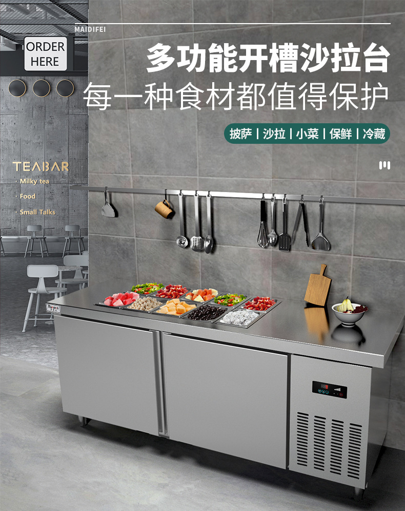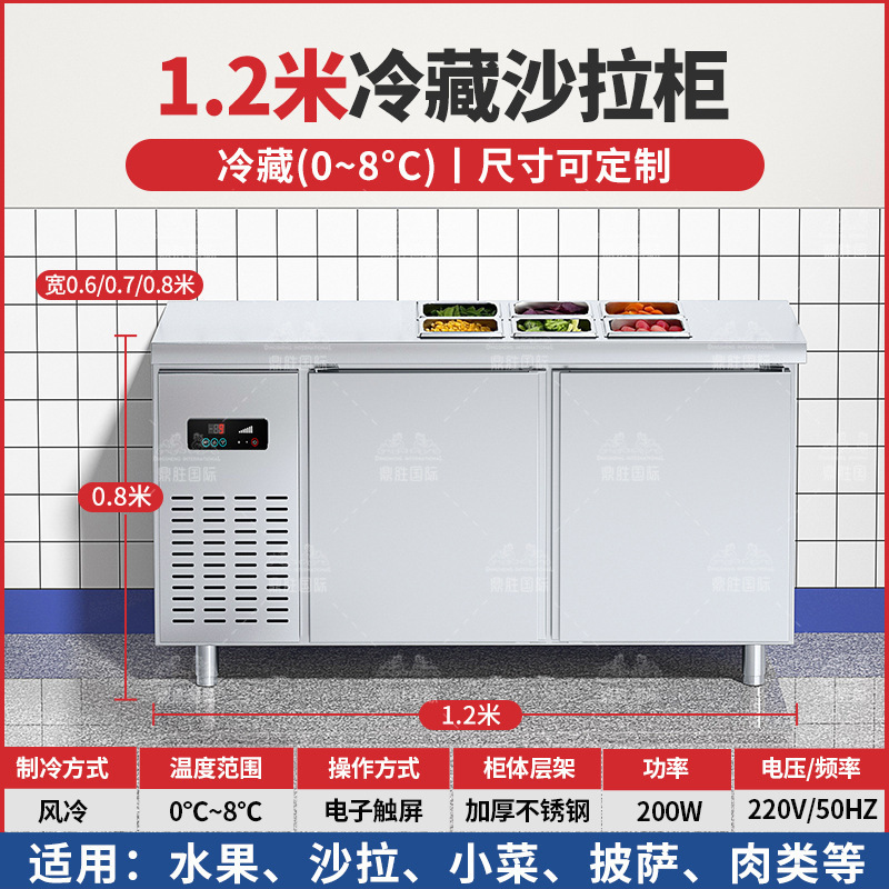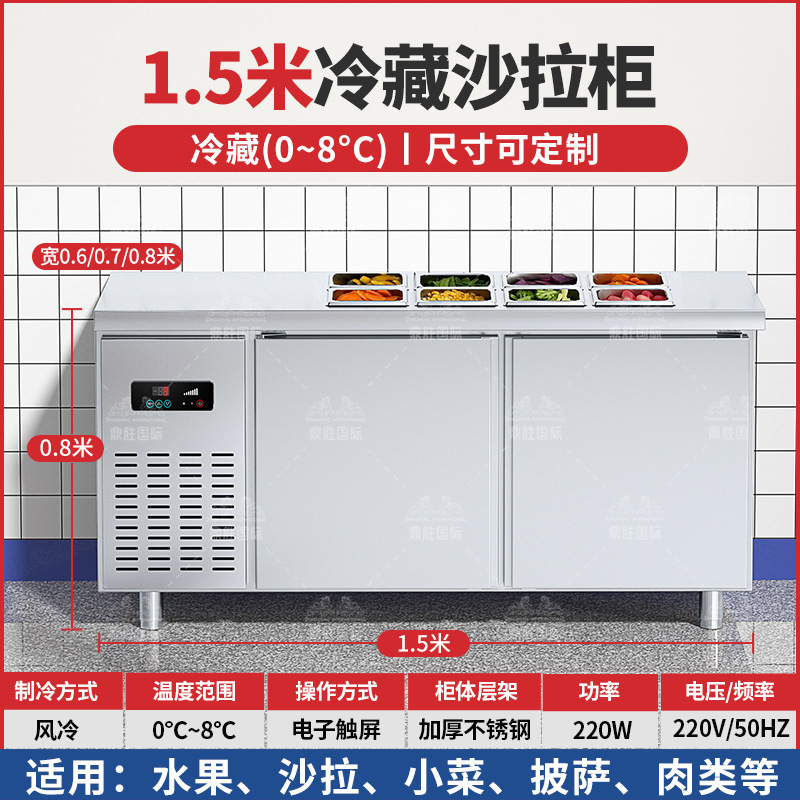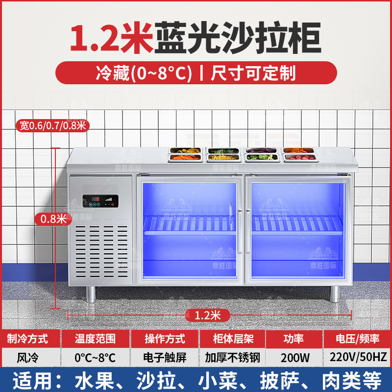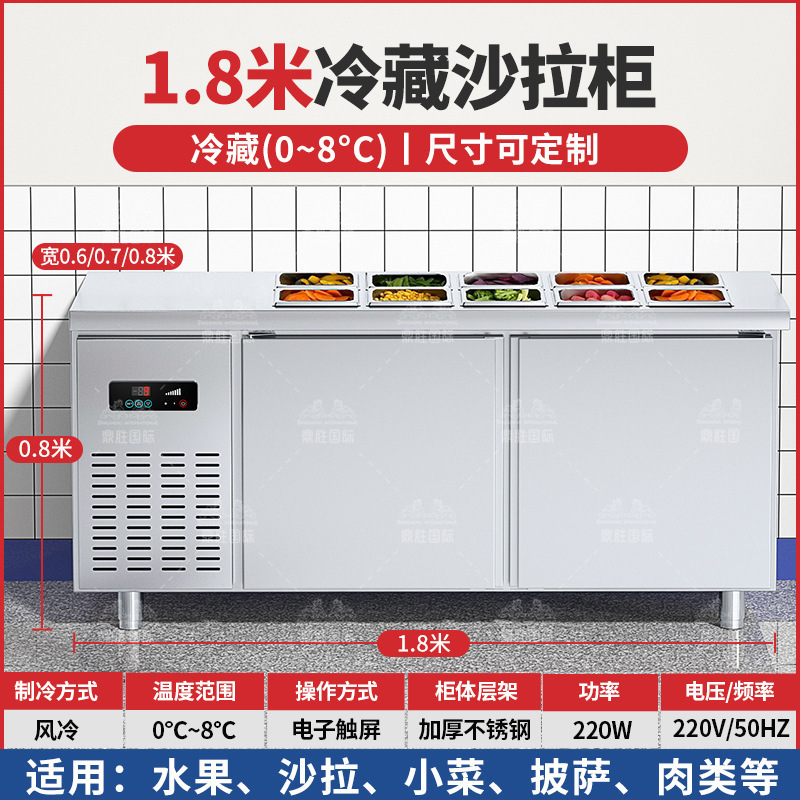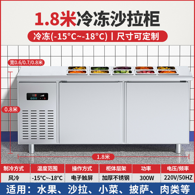공냉식 샐러드 테이블, 상업용 냉동고, 과일 냉장 디스플레이 캐비닛, 주방 다기능 슬롯형 신선 유지 냉장고스토어 가기
