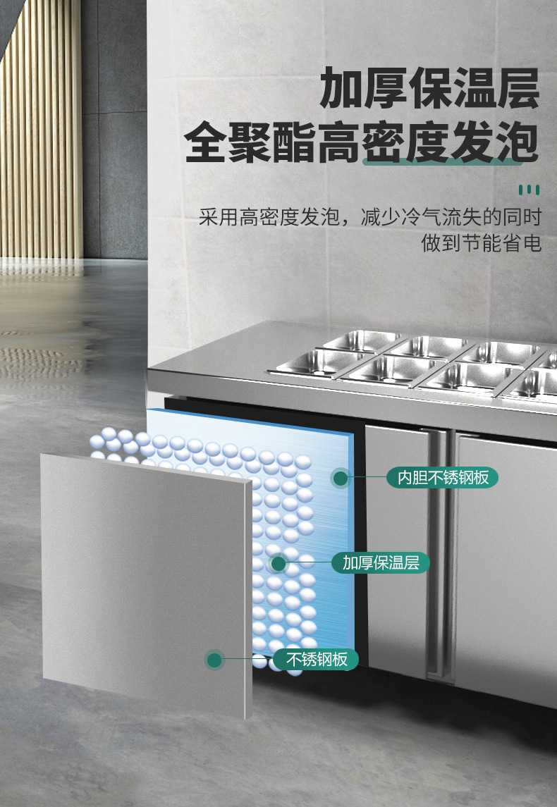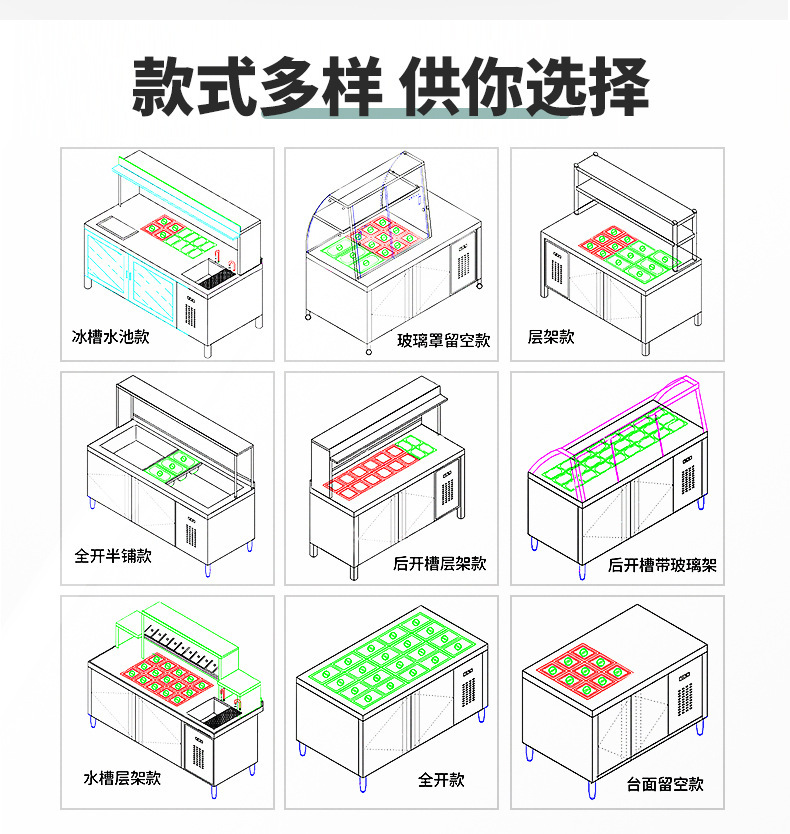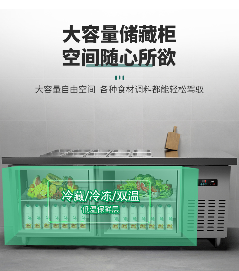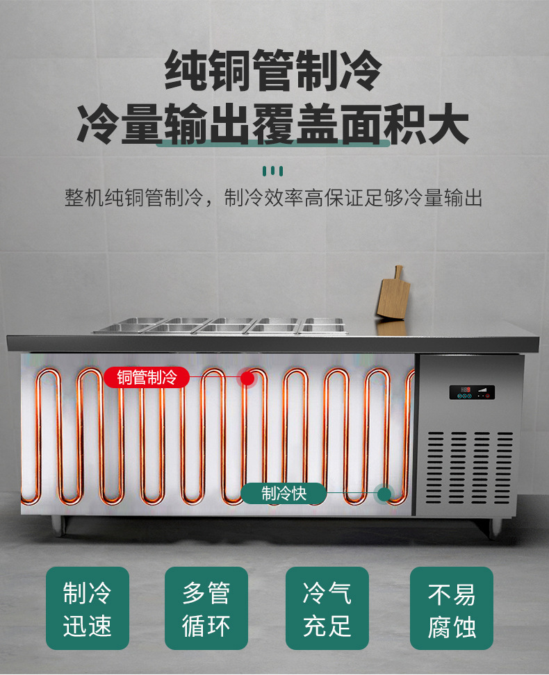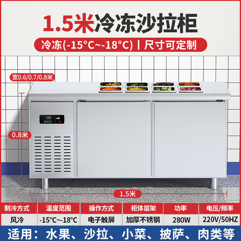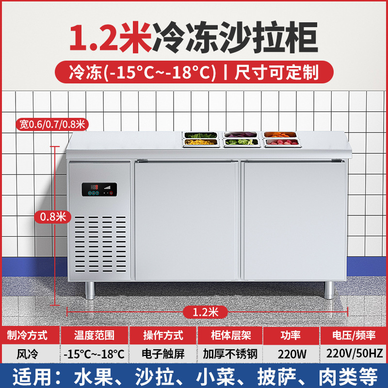 공냉식 샐러드 테이블, 상업용 냉동고, 과일 냉장 디스플레이 캐비닛, 주방 다기능 슬롯형 신선 유지 냉장고스토어 가기