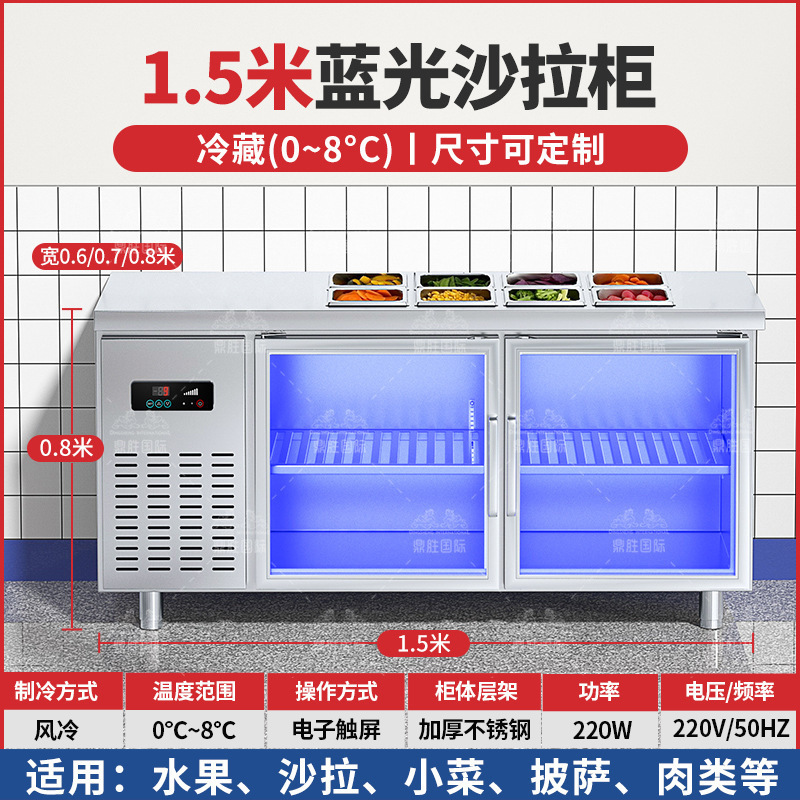 • 1.5m 냉장 샐러드 냉각기(청색광 유리문) 6/1 분량 냄비 8개 무료
