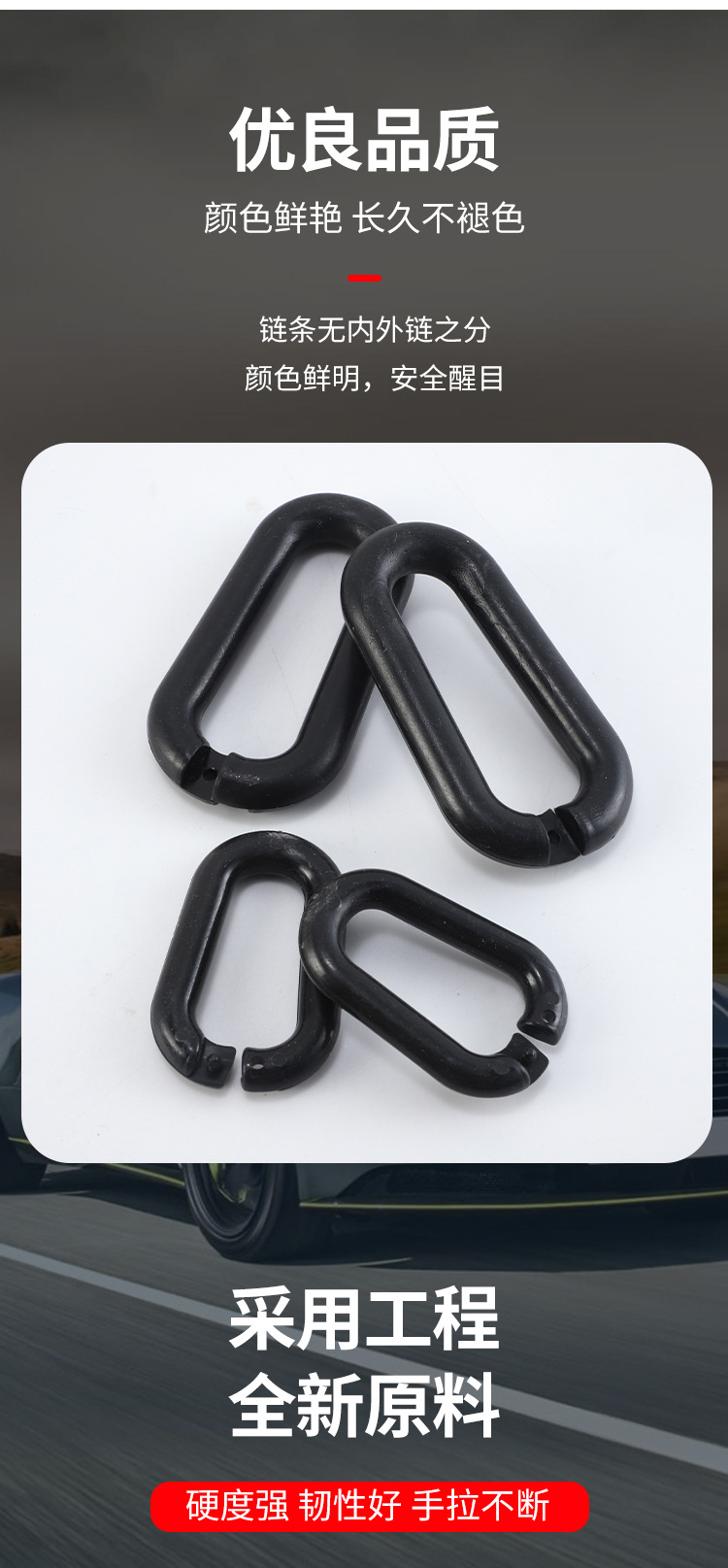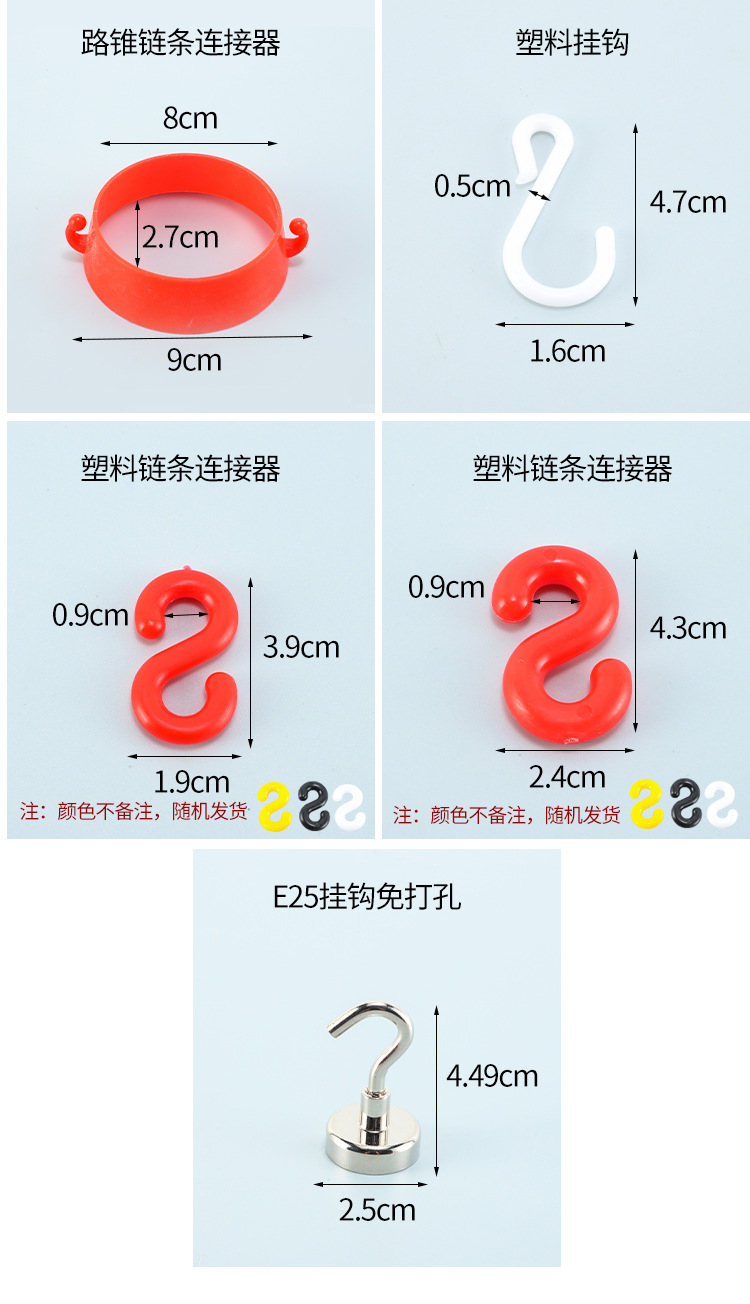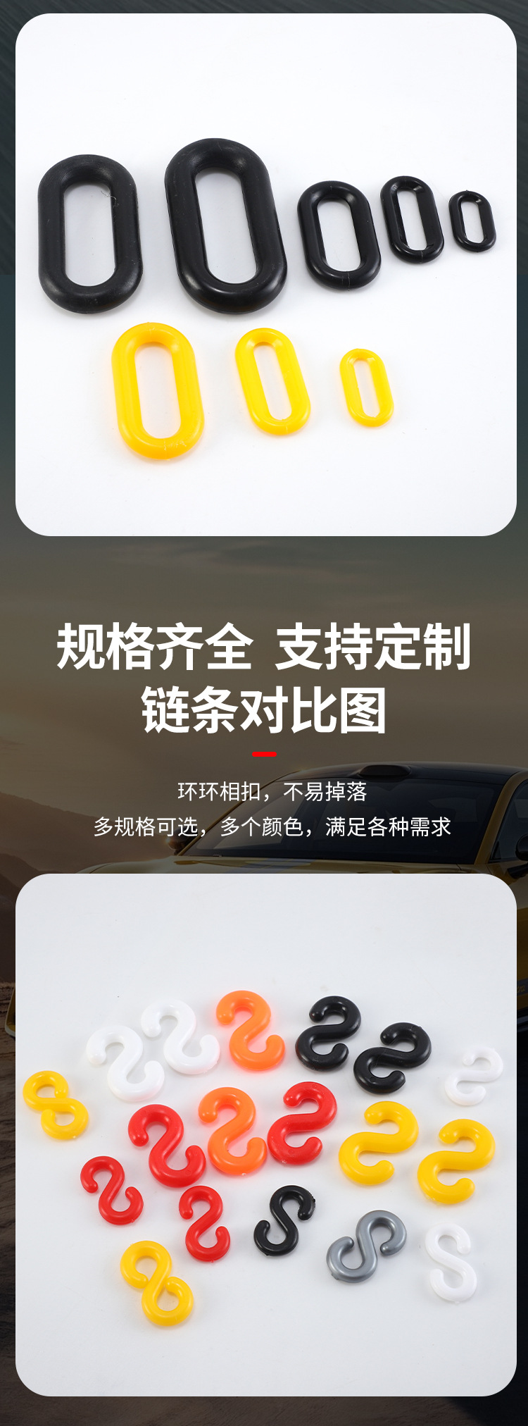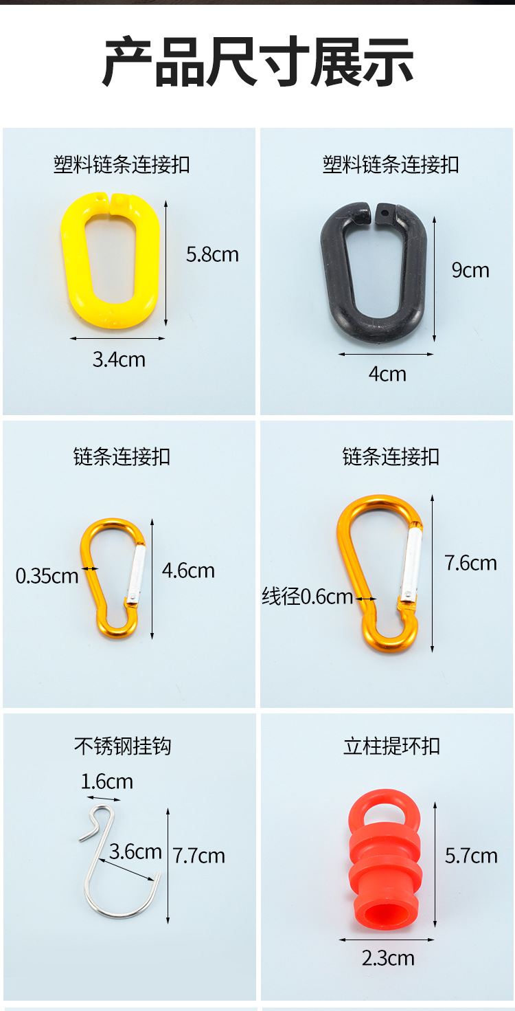 빨간색과 흰색 플라스틱 체인 S 버클 바리케이드 액세서리 안전 경고 체인 격리 보호 체인 검정색과 노란색 체인