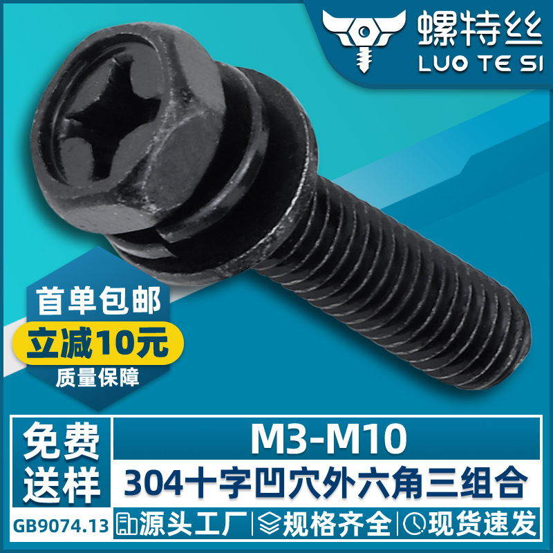 304 블랙 스테인레스 스틸 크로스 리세스 외부 육각 3 조합 스크류 플랫 패드 볼트 M3M4M5M6M8M10스토어 가기
