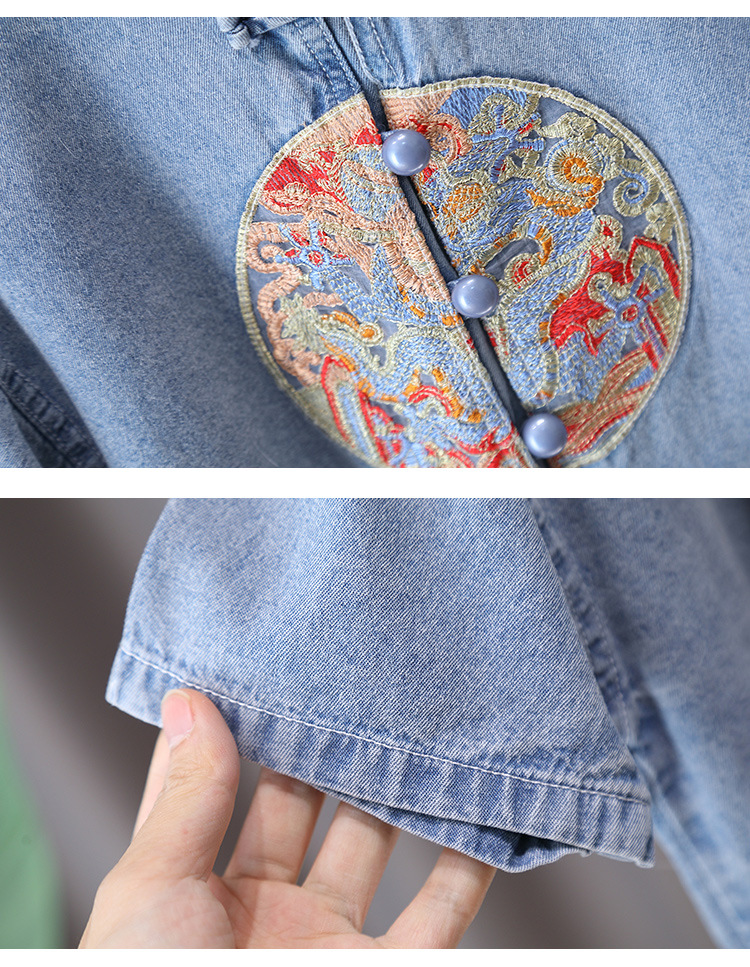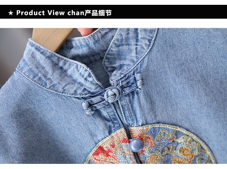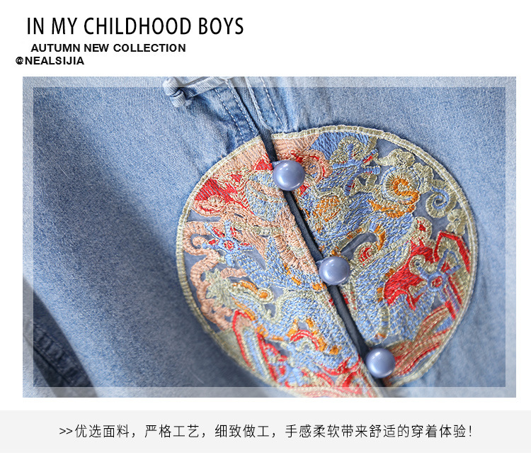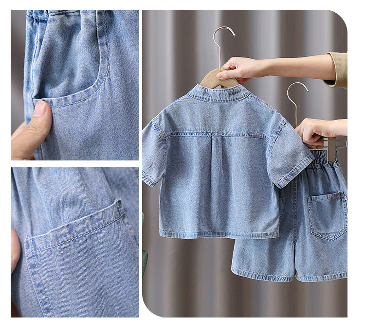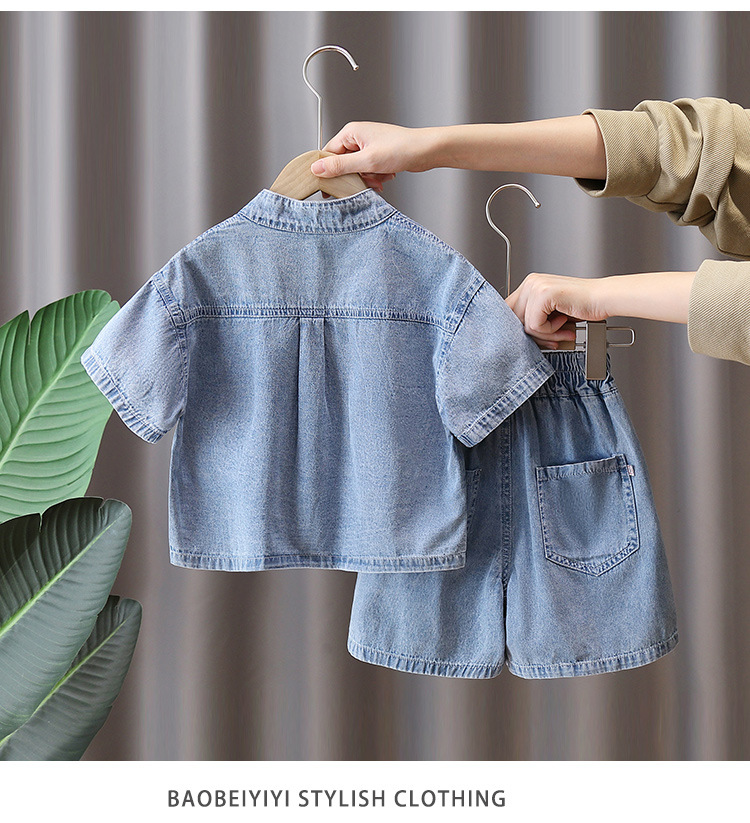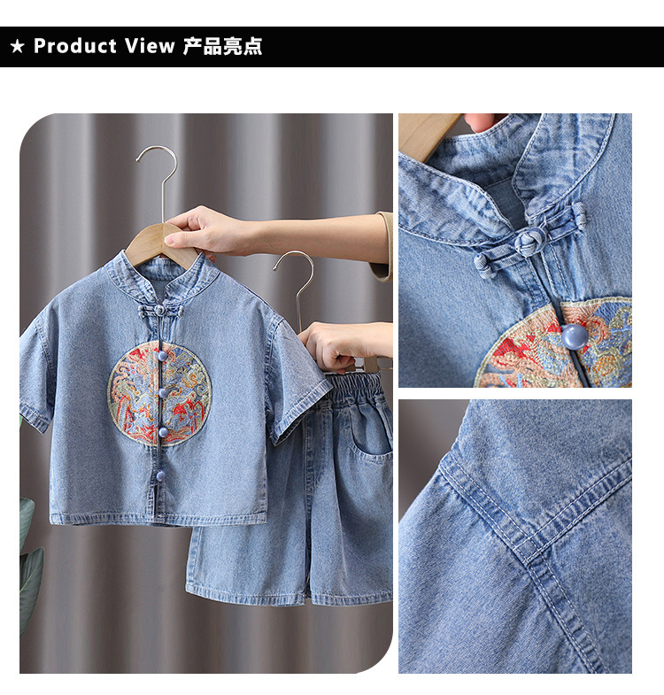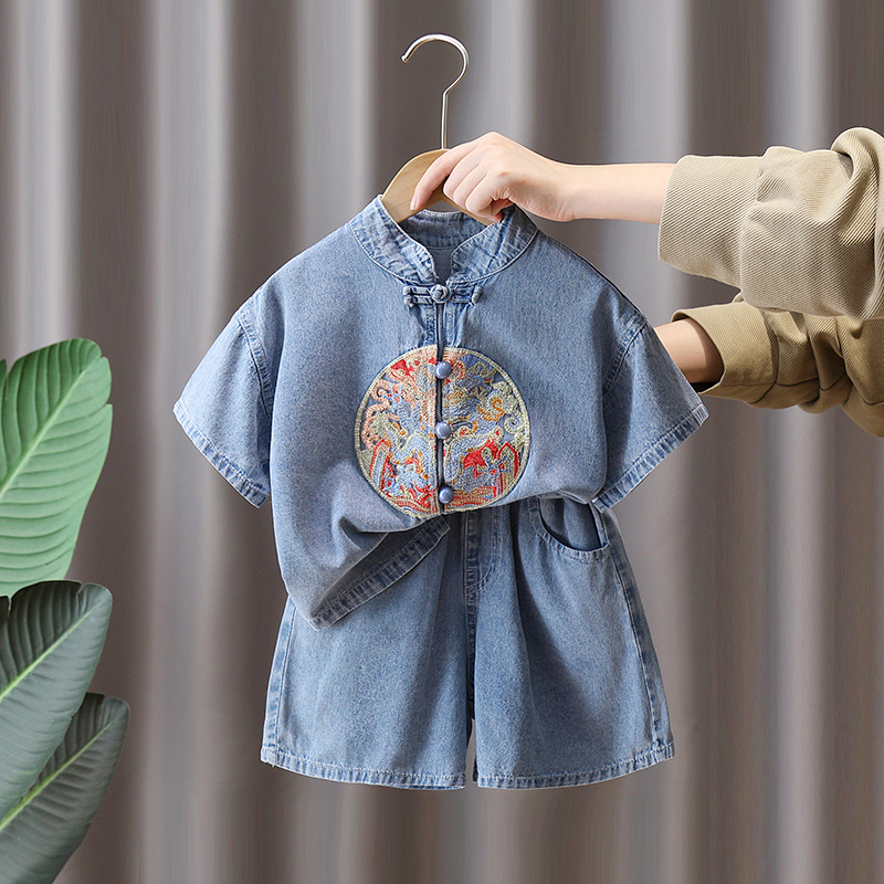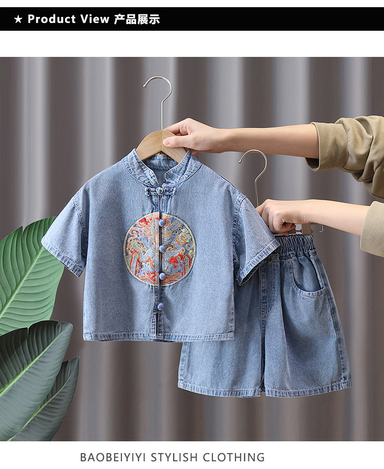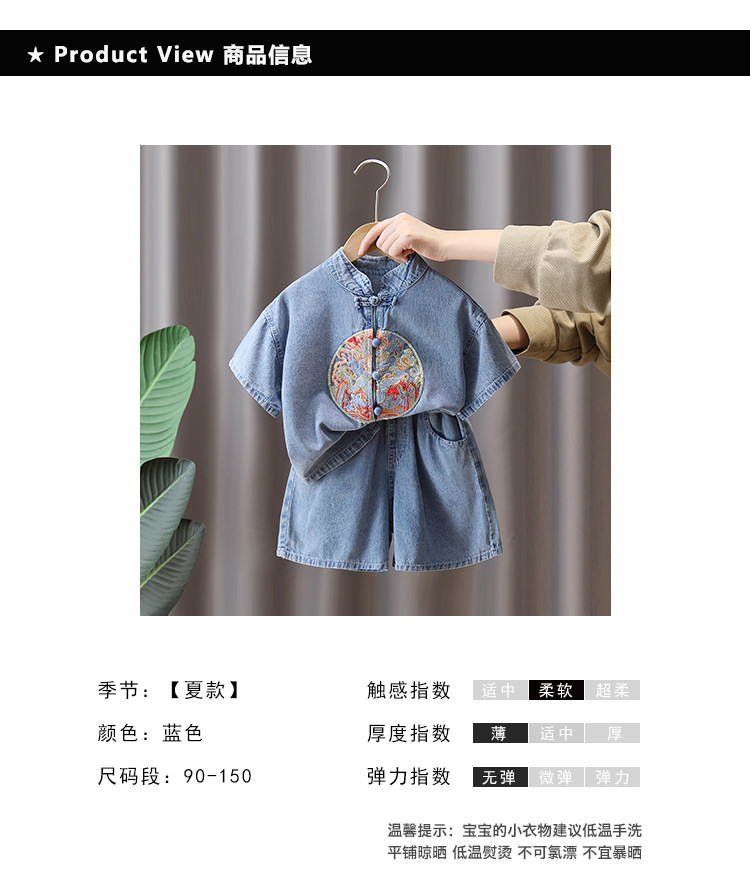 7231 소년 중국식 세트 서양식 어린이 여름 반팔 데님 투피스 여름 유행 얇은 한푸