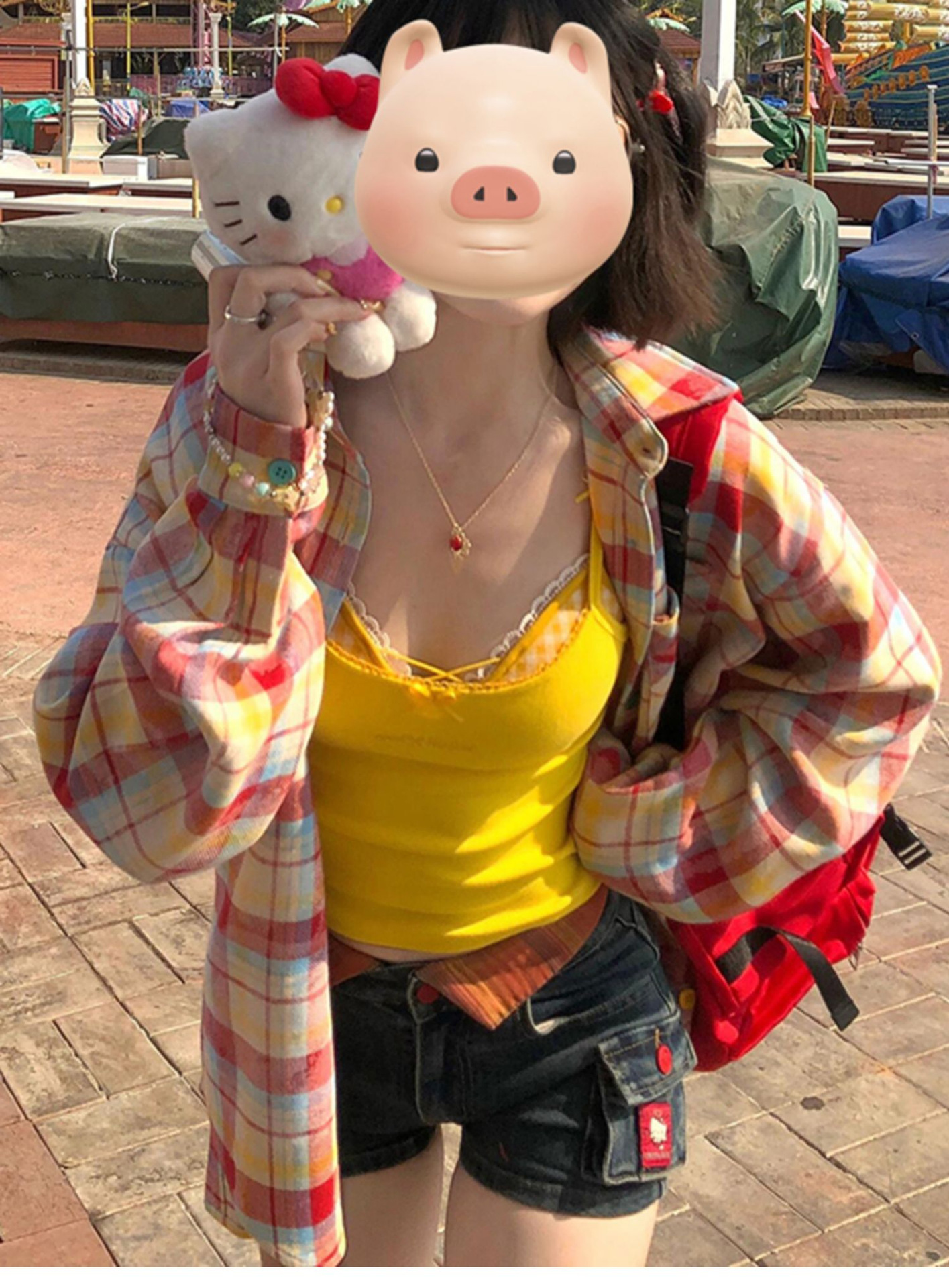 투피스 코르셋 레이스 카미솔 여자 여름 새 의상 태국 도파민 해변 핫 걸 탑 세트스토어 가기