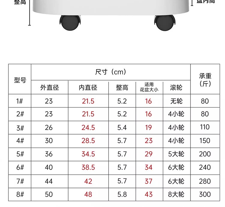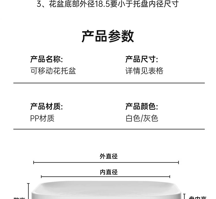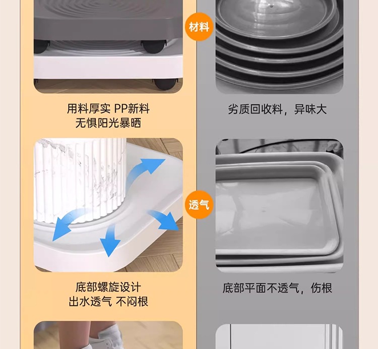 바퀴와 꽃 냄비 쟁반 움직일 수 있는 광장 기초 보편적인 바퀴 롤러 냄비 쟁반 광장 물 접시 플라스틱