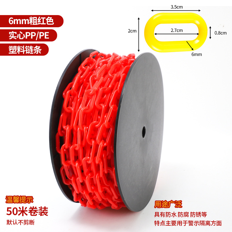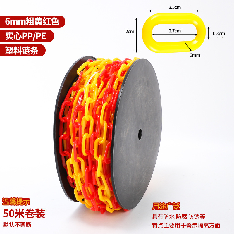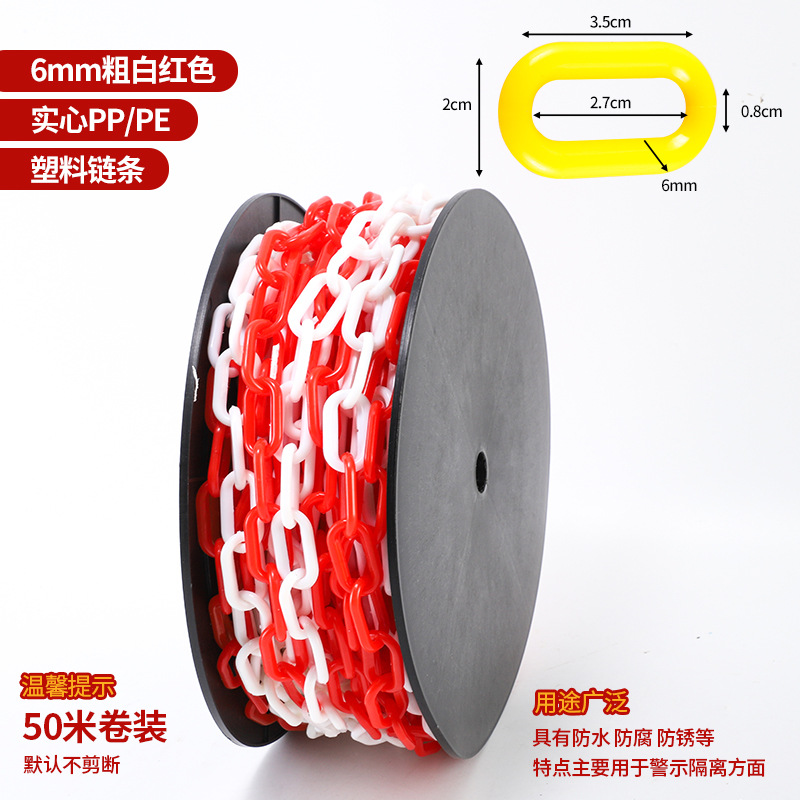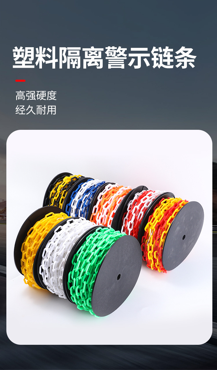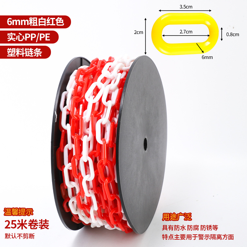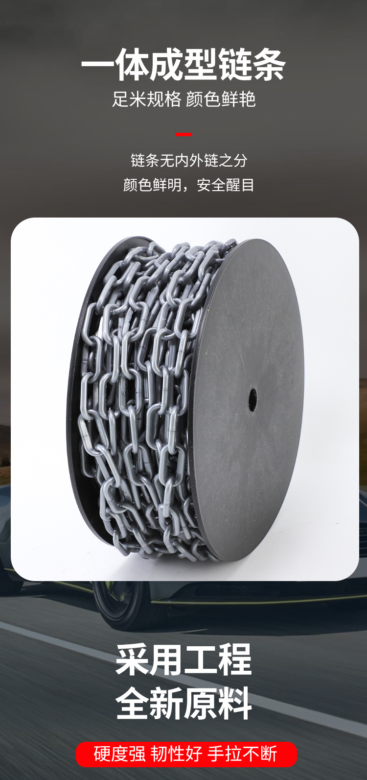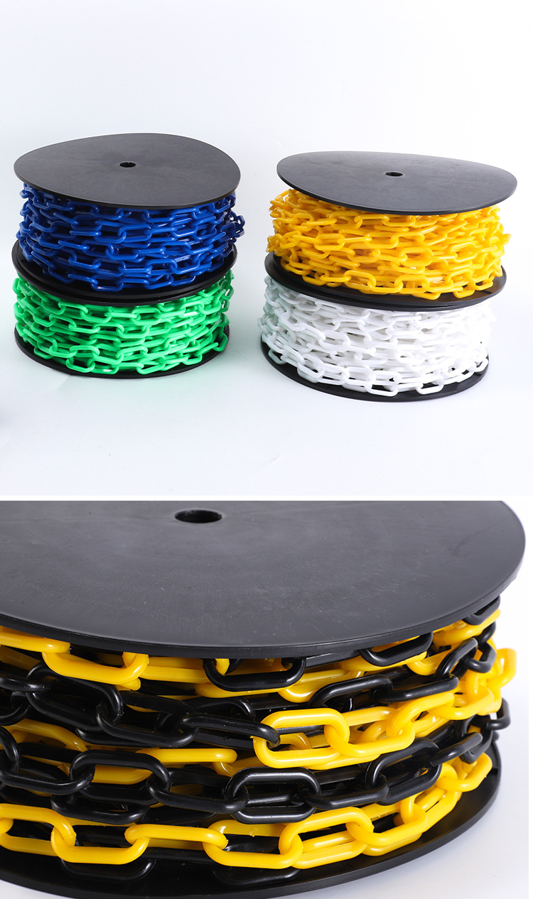 롤형 플라스틱 경고 체인, 검정색, 노란색, 빨간색 및 흰색 보호 레일 체인, 안전 격리, 견고한 주차 격리 체인