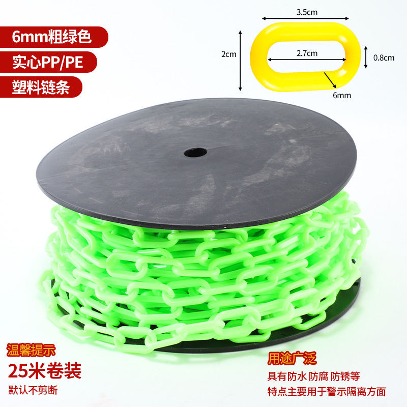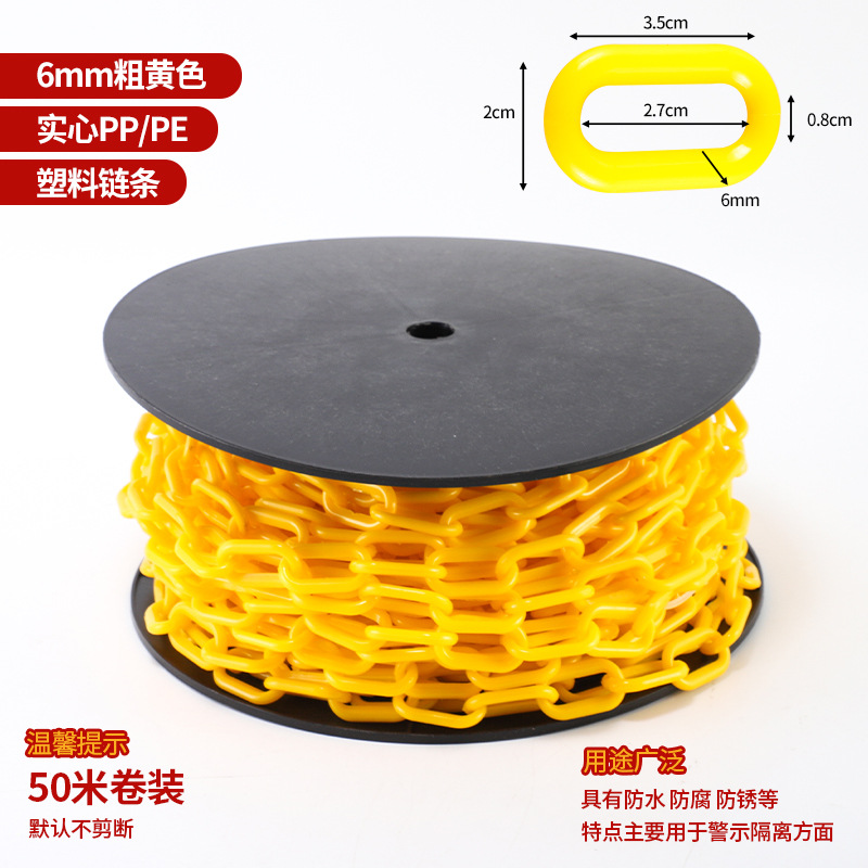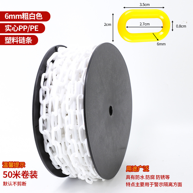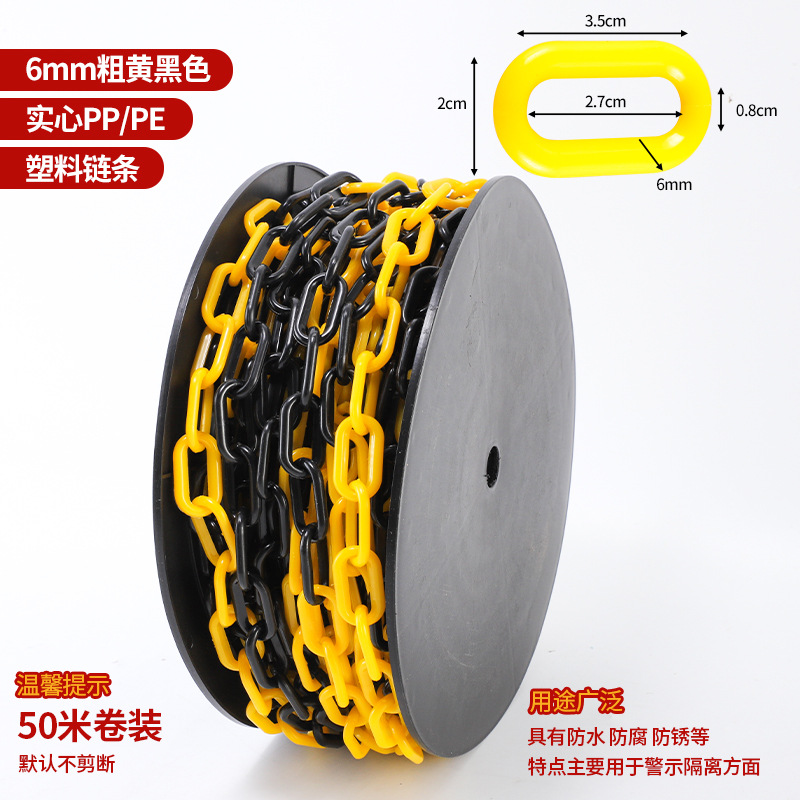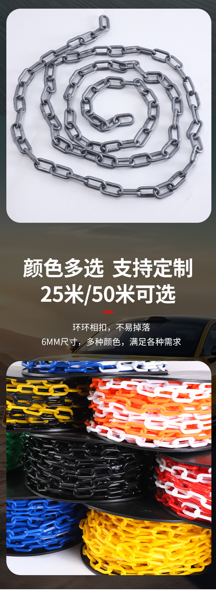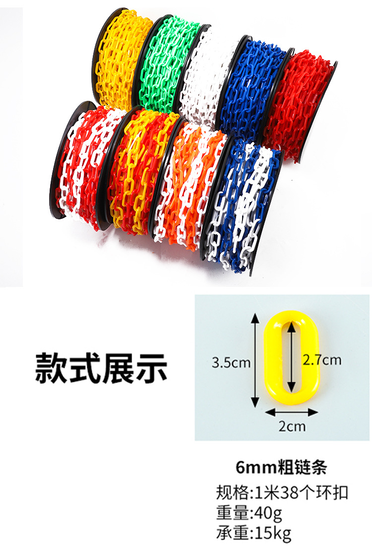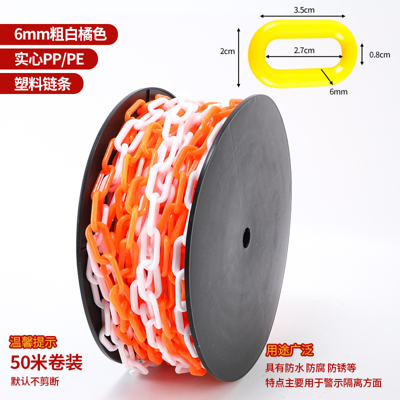 롤형 플라스틱 경고 체인, 검정색, 노란색, 빨간색 및 흰색 보호 레일 체인, 안전 격리, 견고한 주차 격리 체인