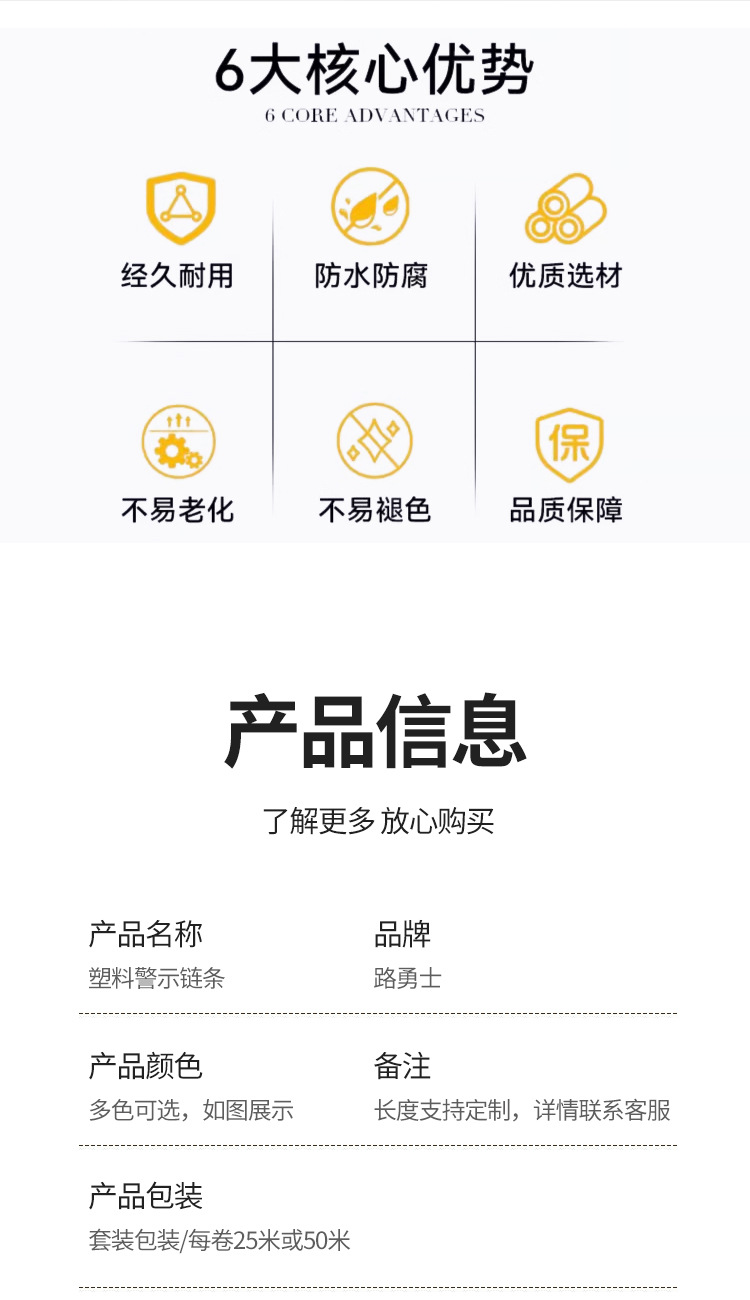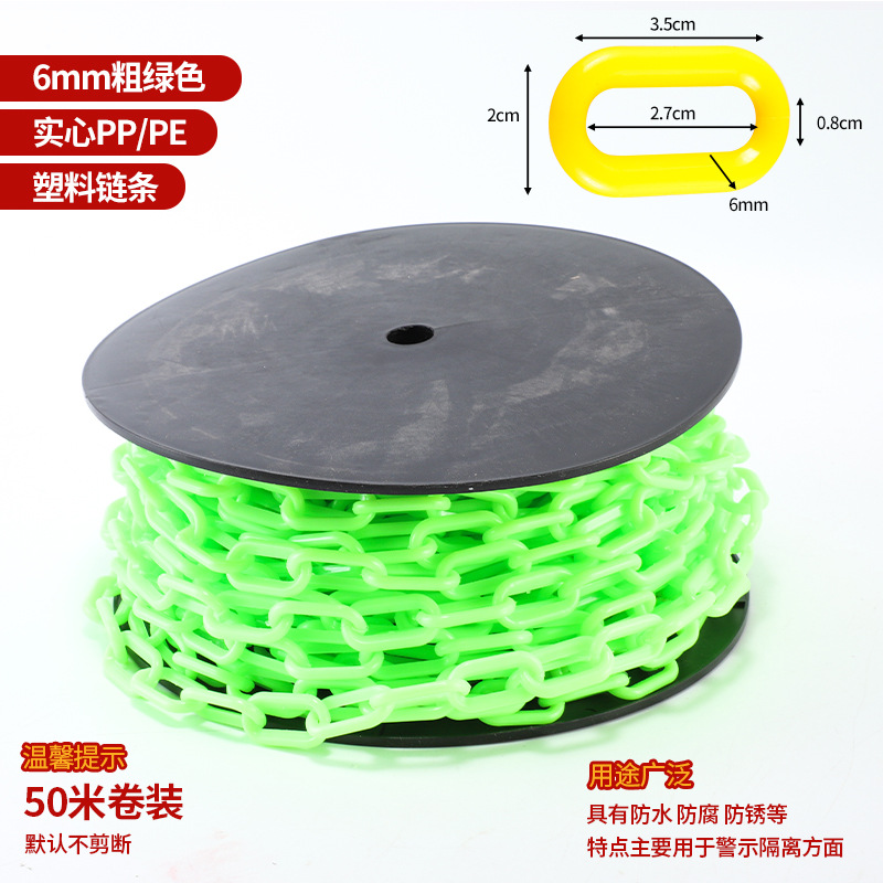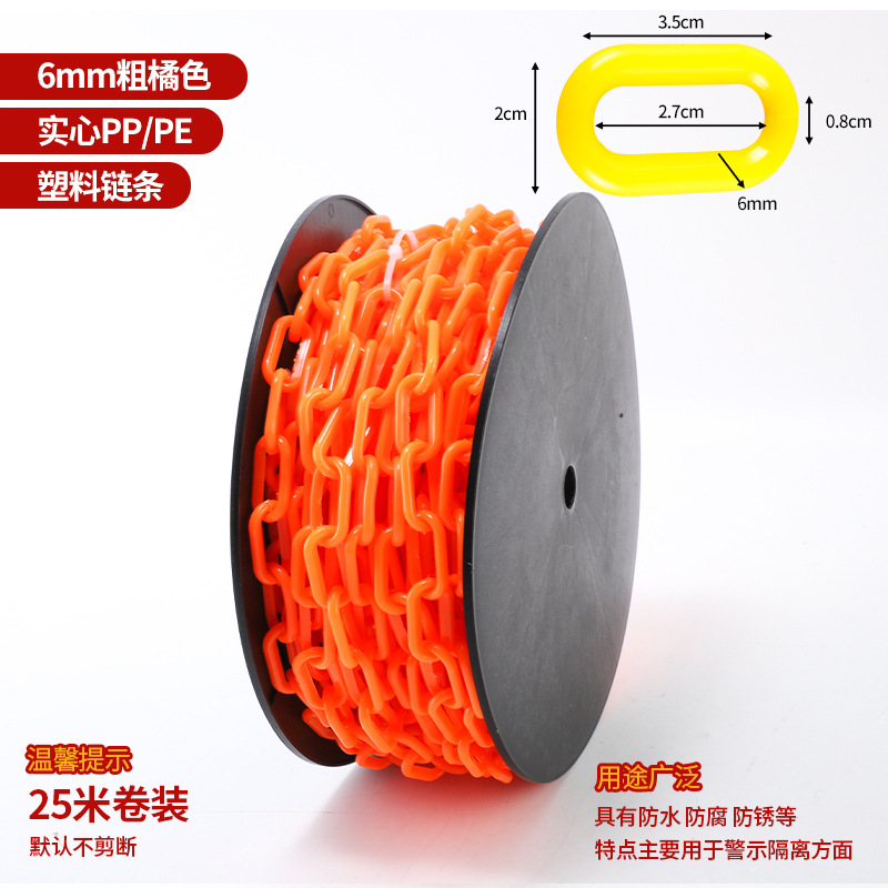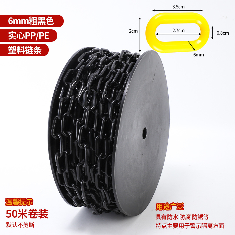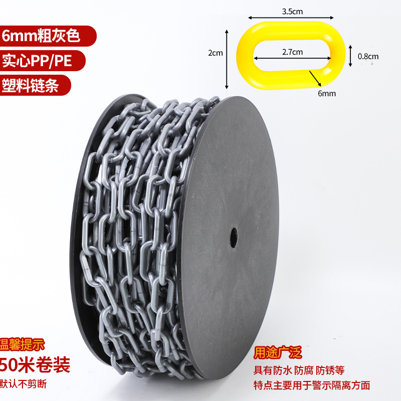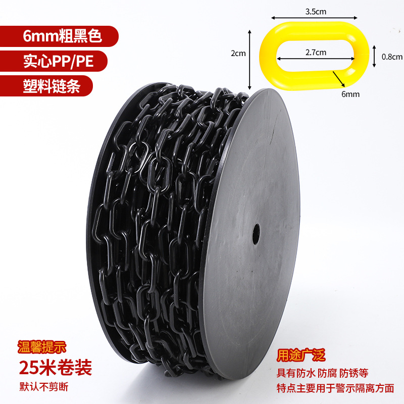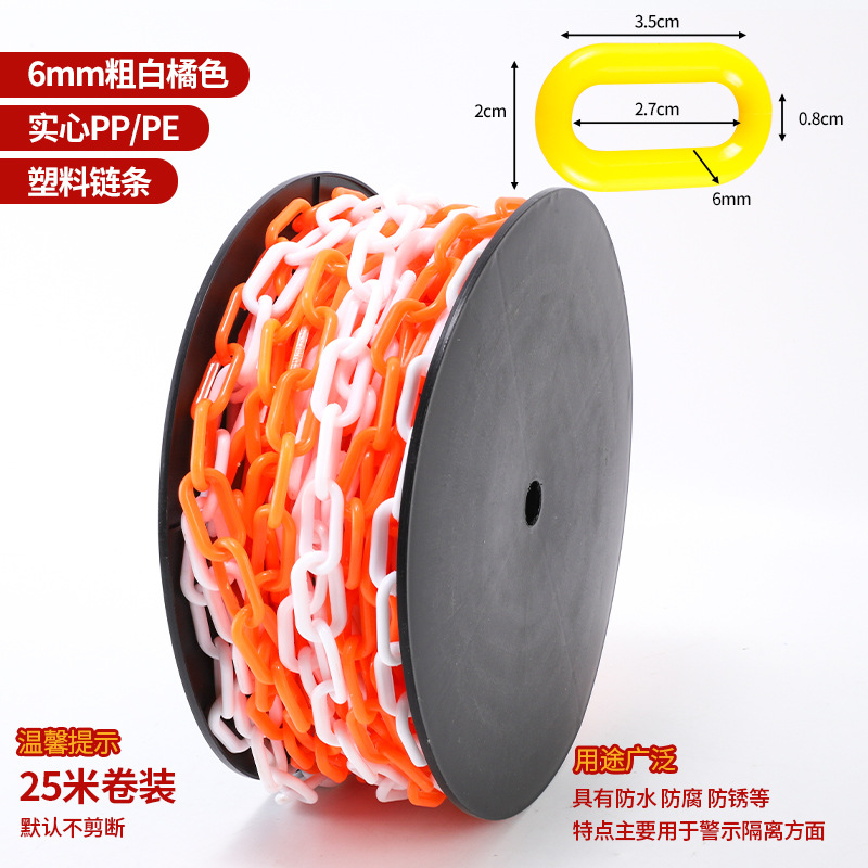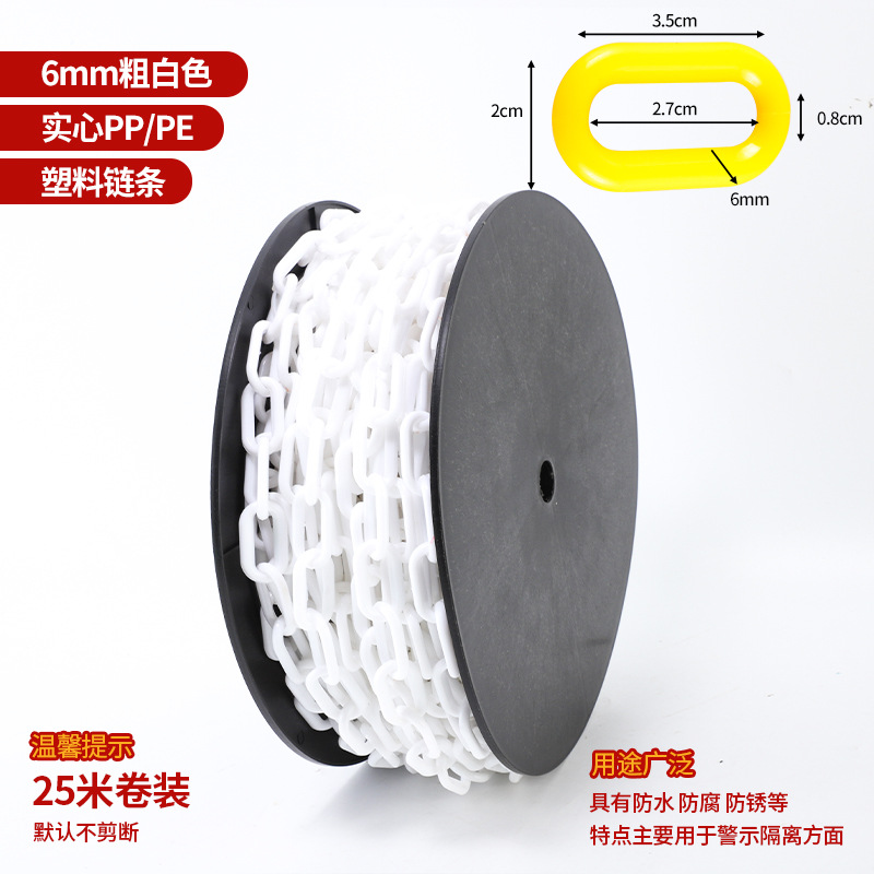 롤형 플라스틱 경고 체인, 검정색, 노란색, 빨간색 및 흰색 보호 레일 체인, 안전 격리, 견고한 주차 격리 체인