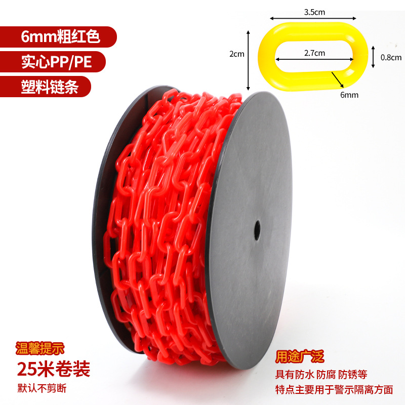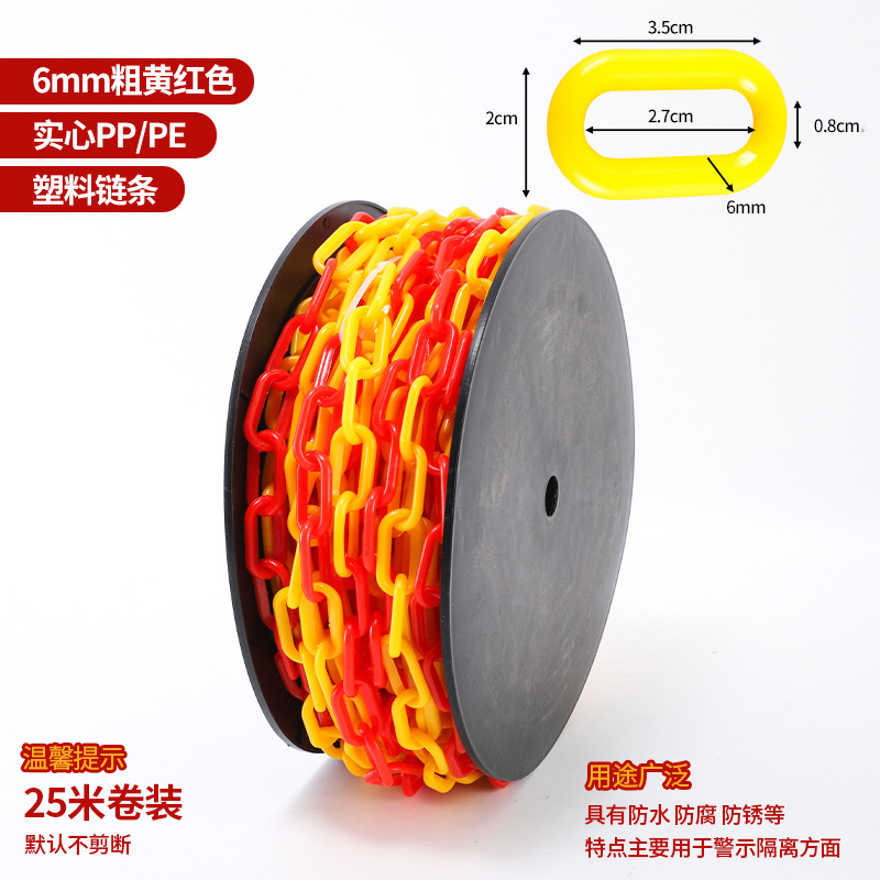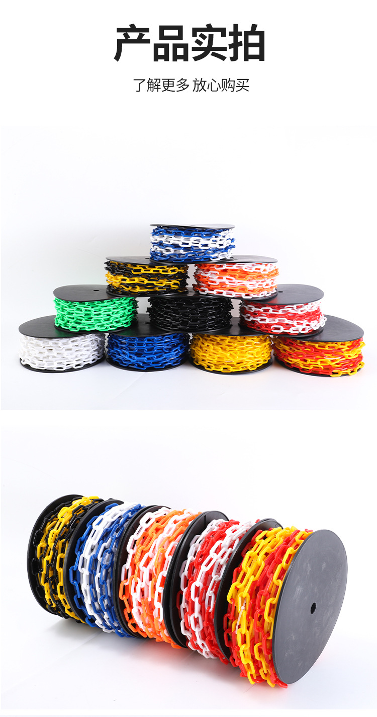 롤형 플라스틱 경고 체인, 검정색, 노란색, 빨간색 및 흰색 보호 레일 체인, 안전 격리, 견고한 주차 격리 체인스토어 가기