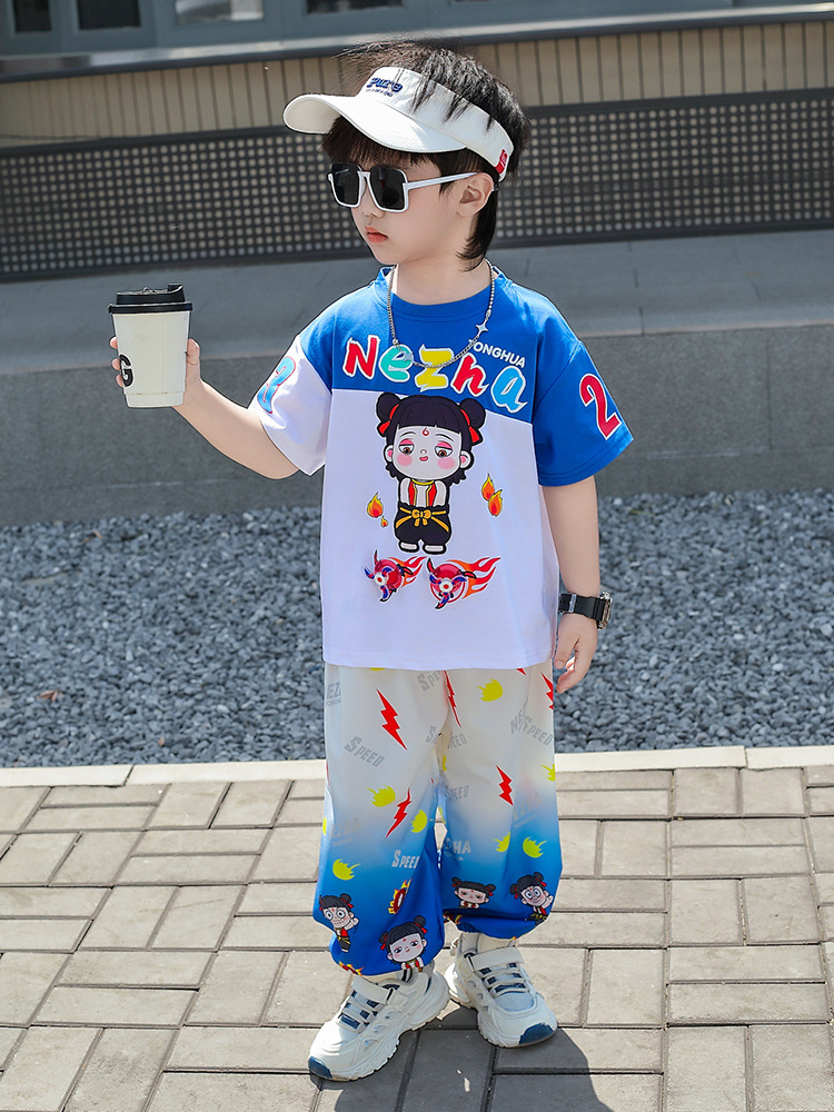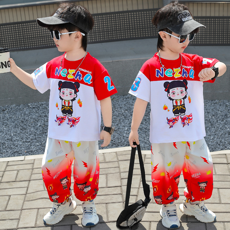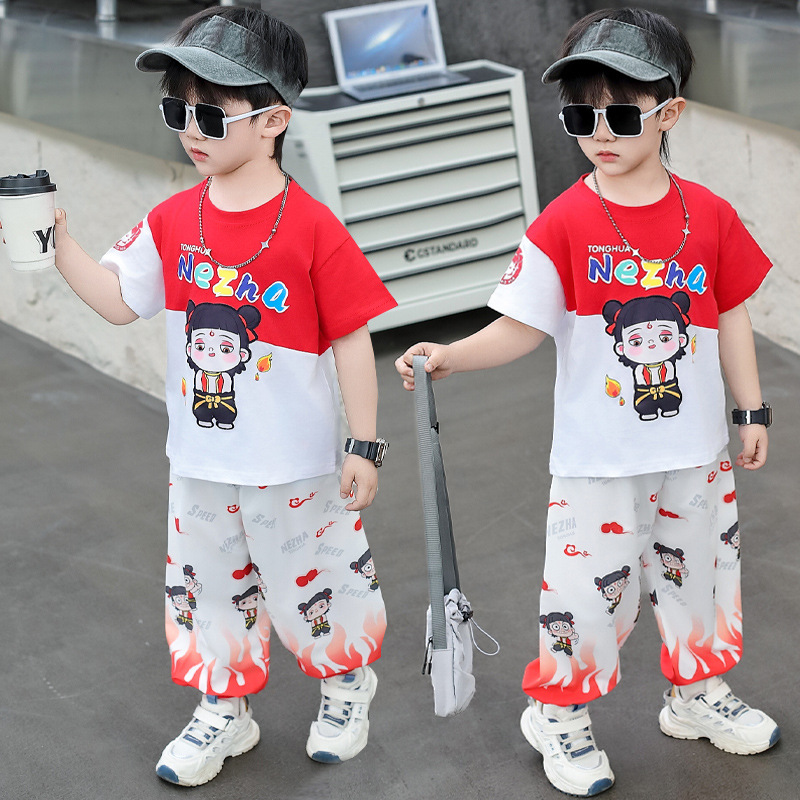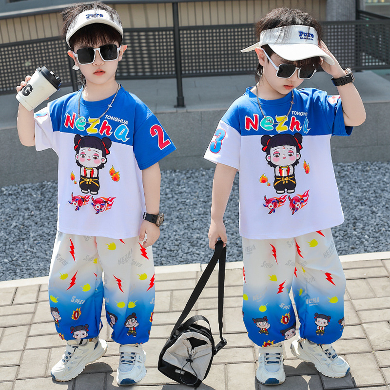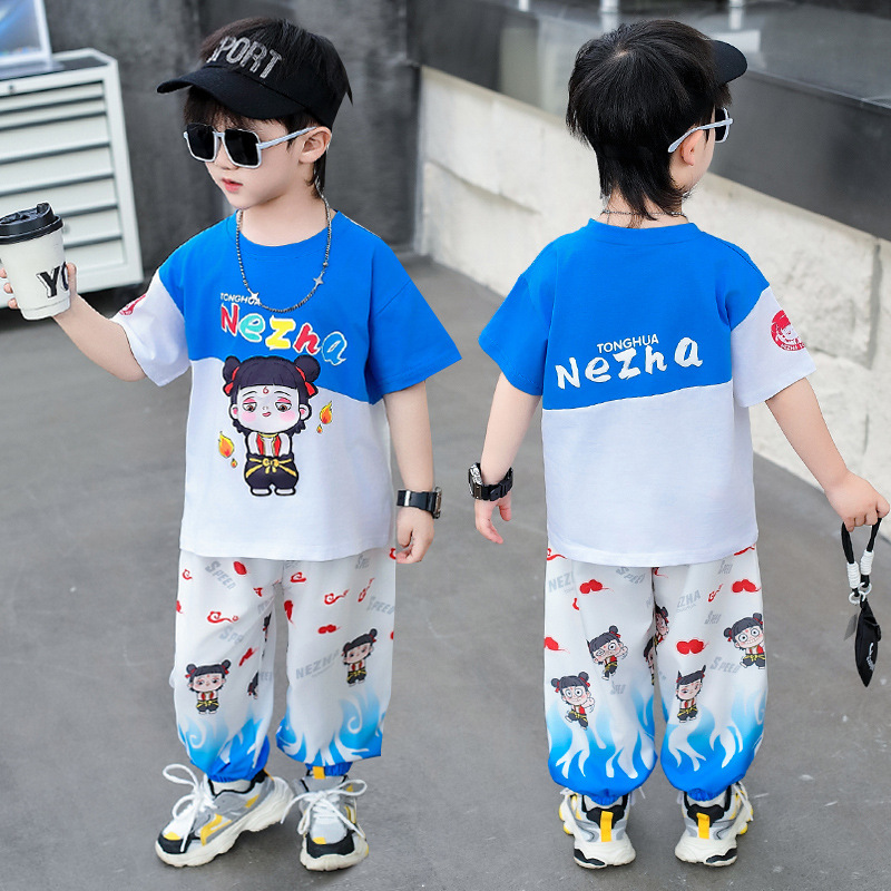 어린이 옷 소년 반팔 세트 어린이 2025 새 티셔츠 안티 모기 바지 투피스 아기 여름 옷스토어 가기