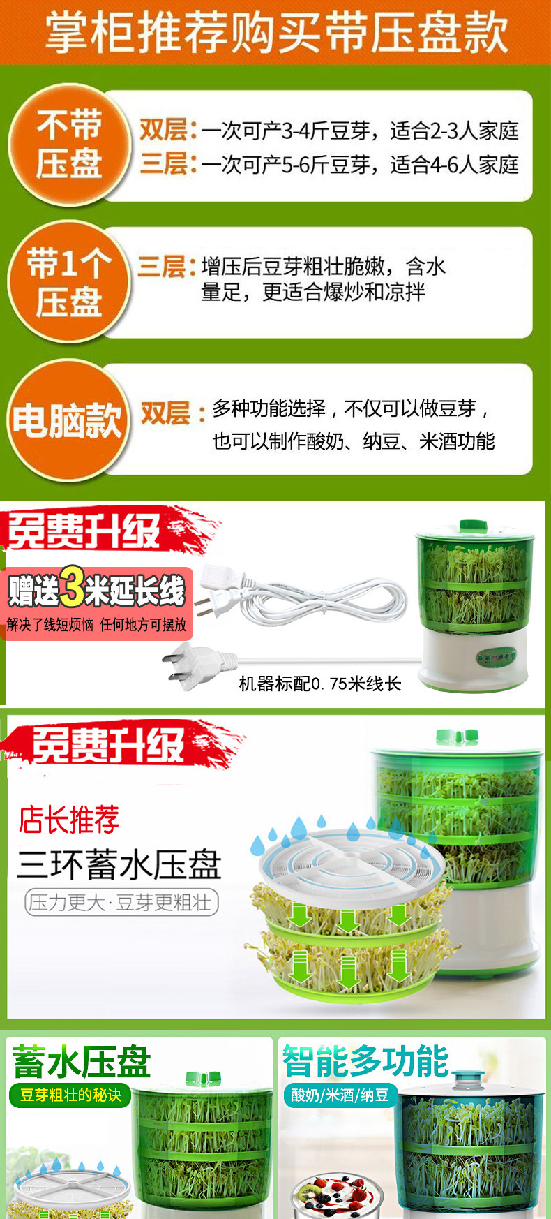 콩나물 기계, 가정용 자동 대용량 콩나물 양동이, 생 녹두나물 항아리, 소형 묘목 화분스토어 가기